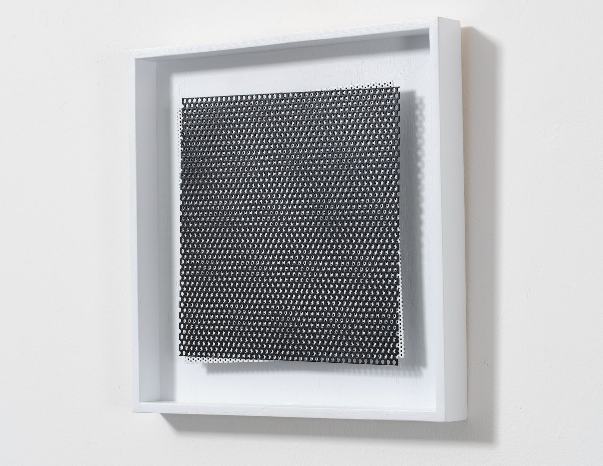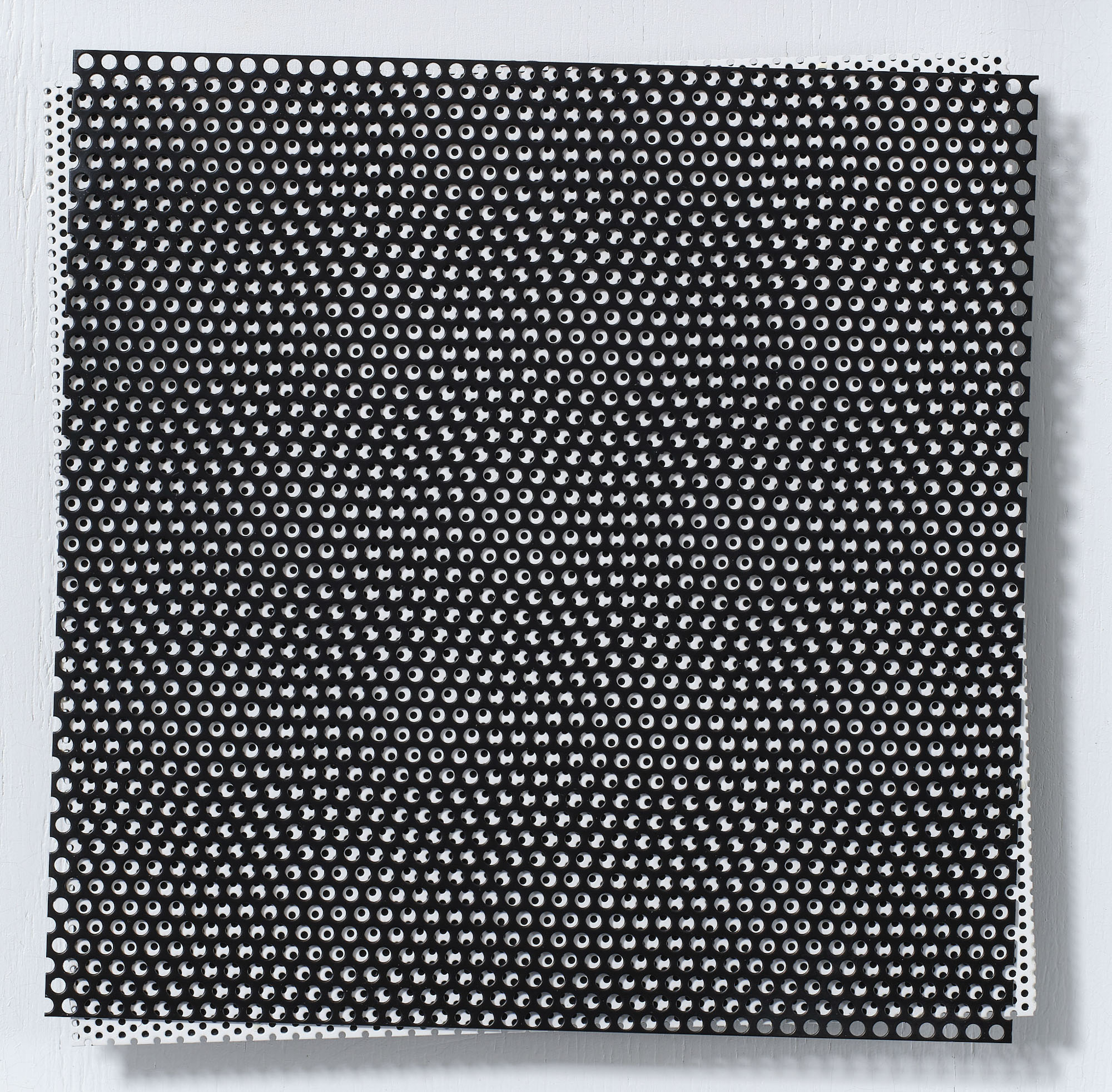 2 lastre in ferro laccato sovrapposte su tavola, cm. 35 x 35