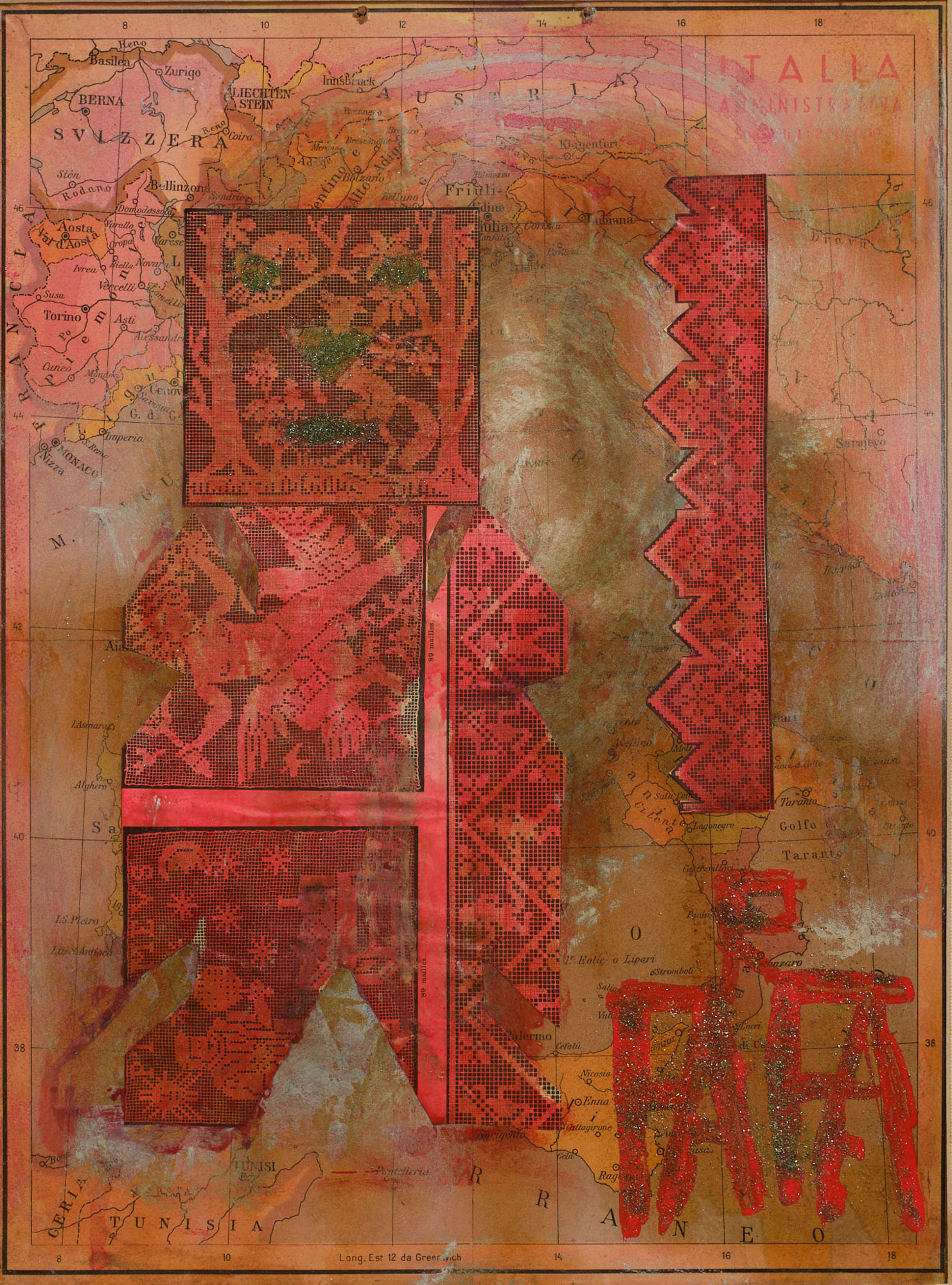 Tecnica mista e collage su cartone, cm. 55 x 40