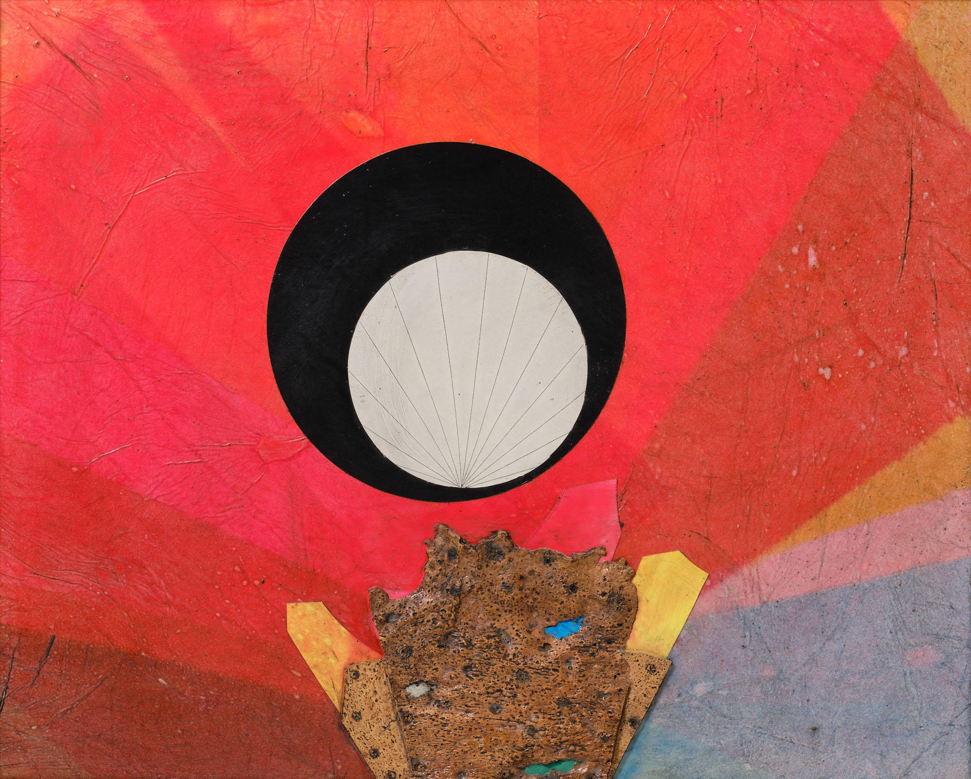 Tecnica mista, collage e sughero su tavola, cm. 65 x 81