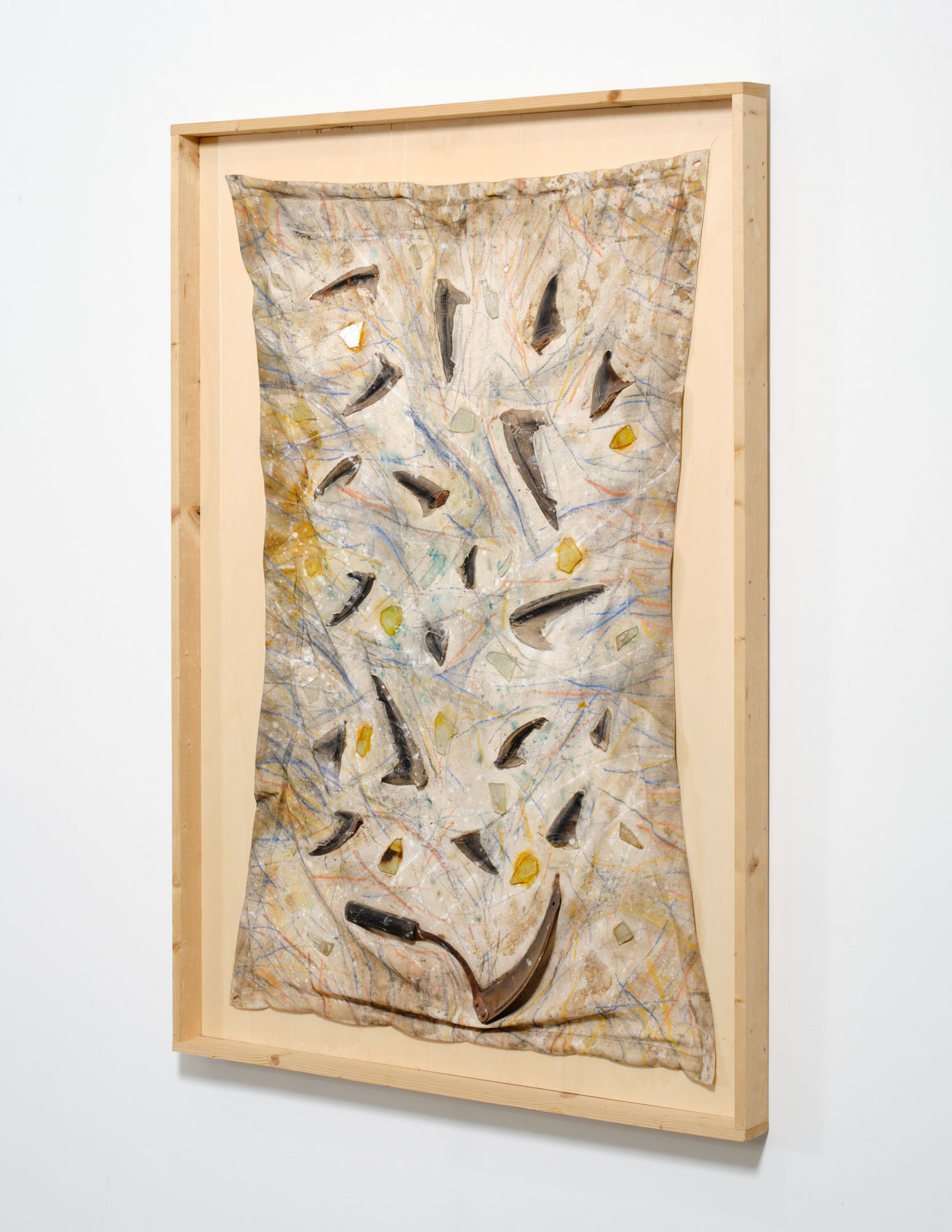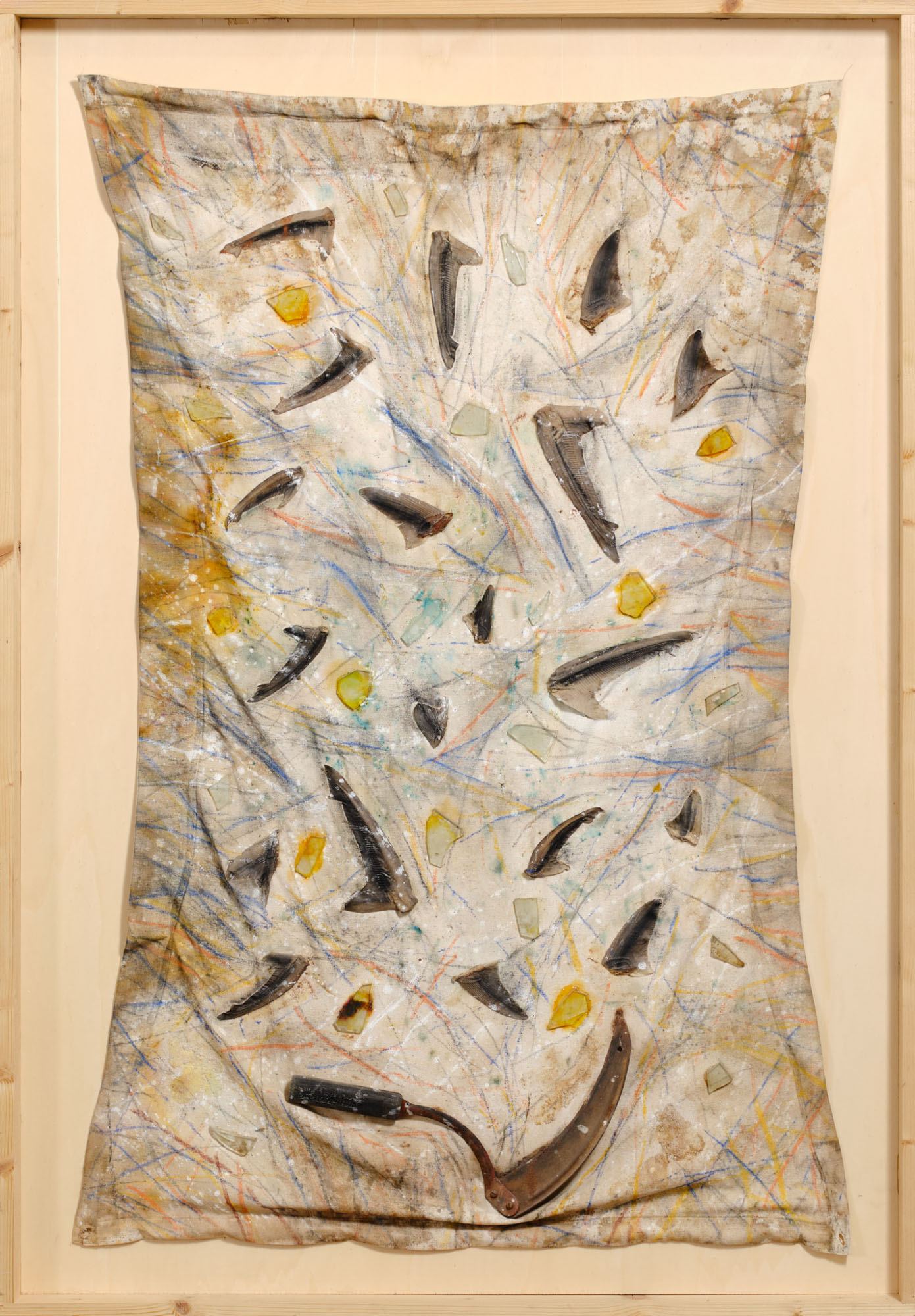 Tecnica mista e applicazioni su tela, cm. 147 x 96 circa