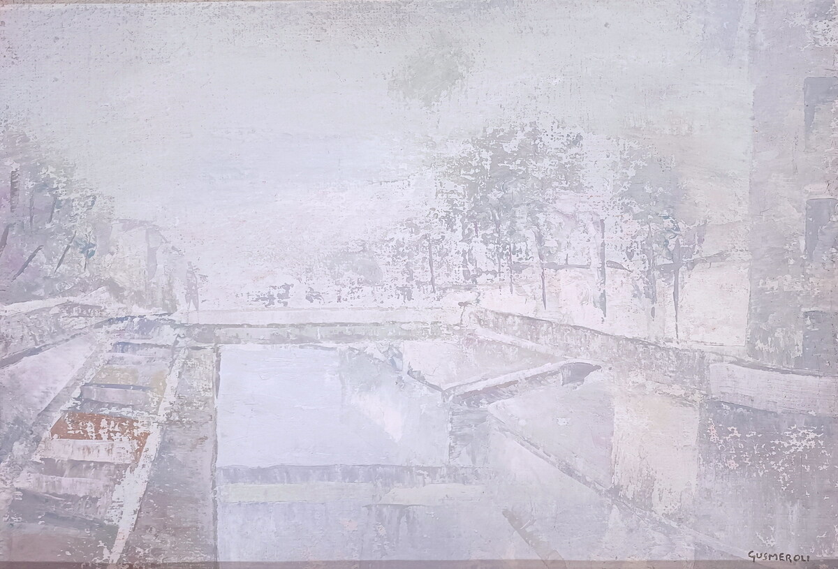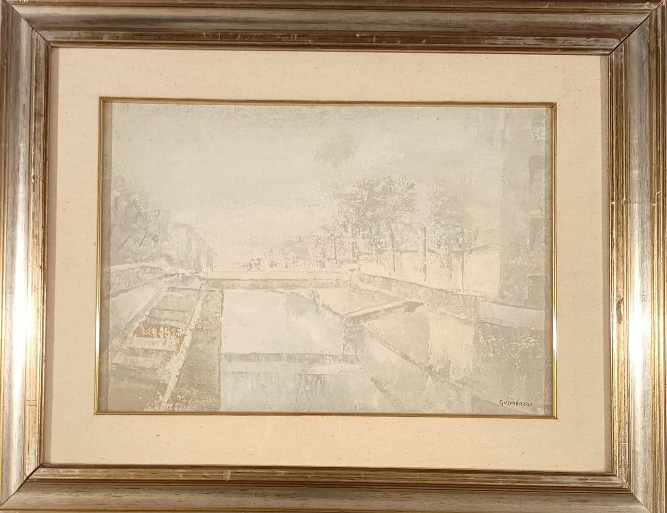 GUSMEROLI CARLO Valtellina (So) 1921 Milano sponde del naviglio Olio su tela...