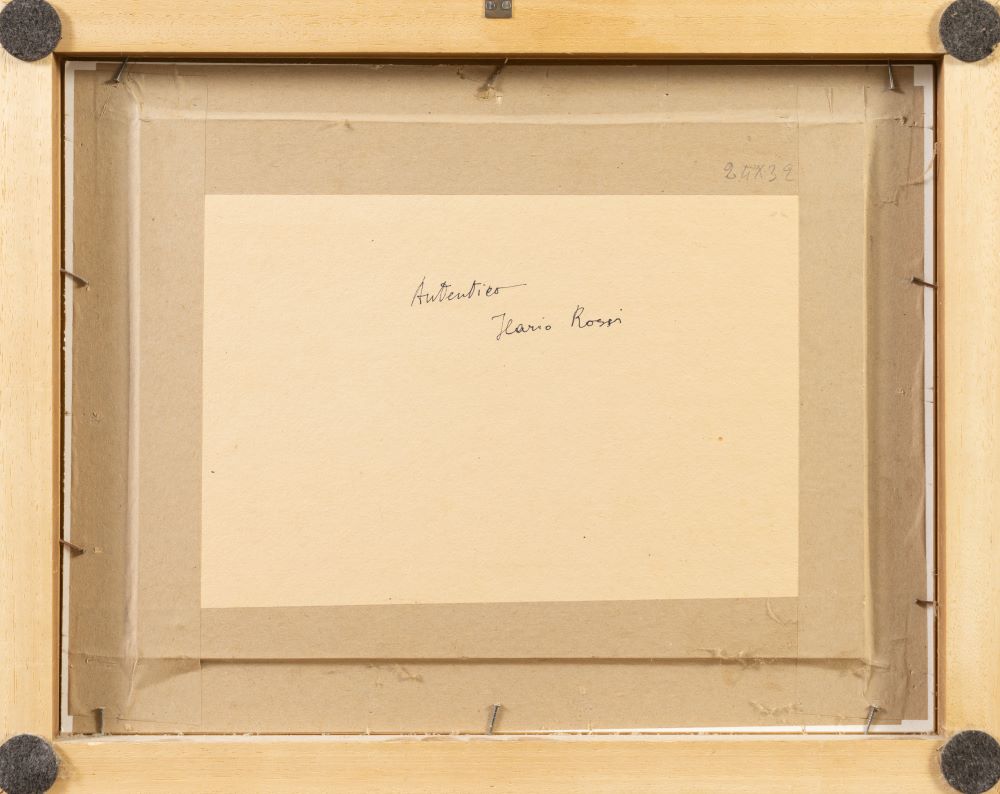Ilario Rossi (Bologna 1911 - 1994). “Paesaggio”. Cm. 24,5x32. Acquerello e tempera su cartoncino. Firmato in basso a sinistra. Al retro reca la scritta "autentico Ilario Rossi"