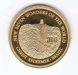 2007 10 Dollari D'Oro delle Isole Salomone Fondo Specchio Incapsulata GR 1,2, Al Fronte la Regina Elisabetta II e al Retro il Cristo Redentore del Brasile, Perfette Condizioni