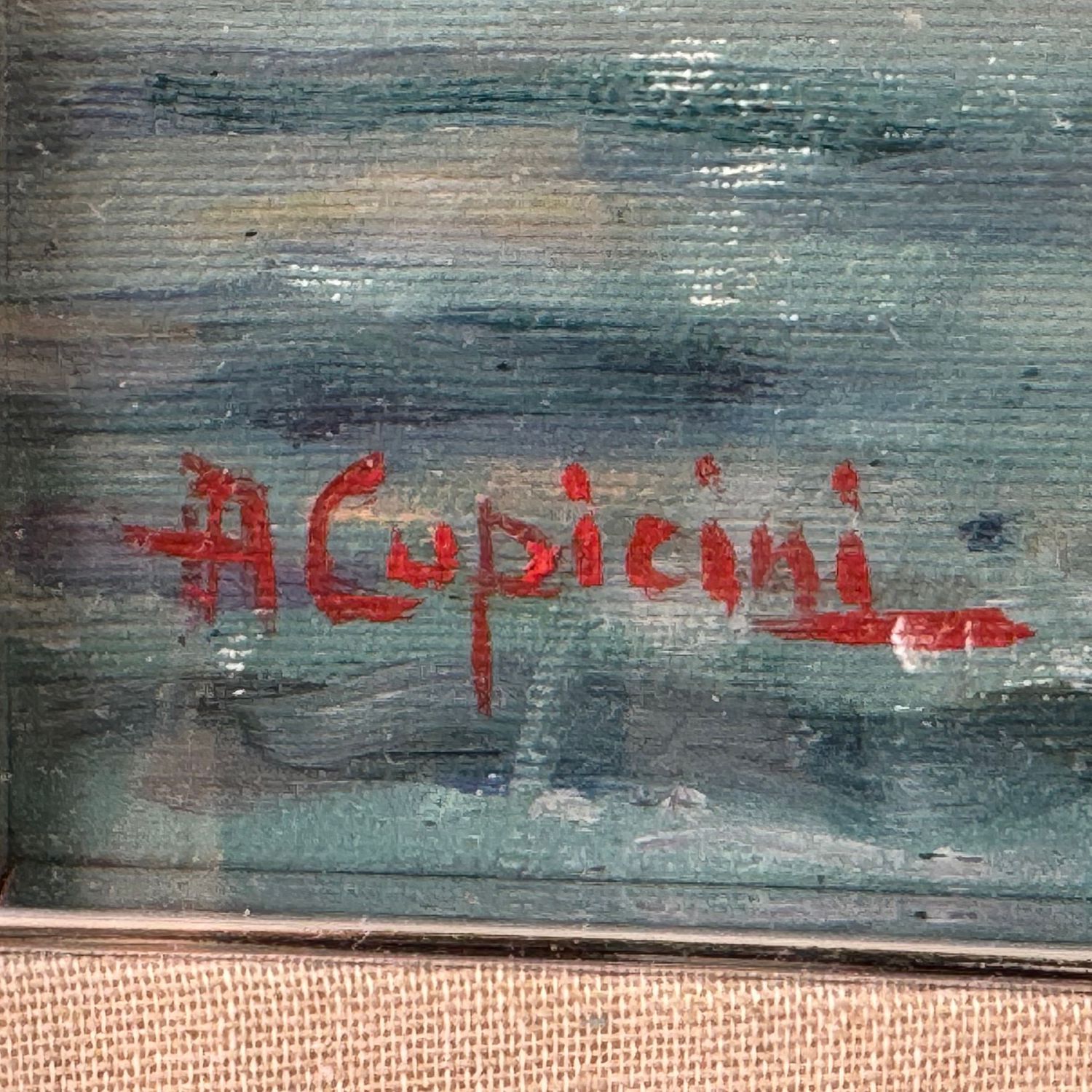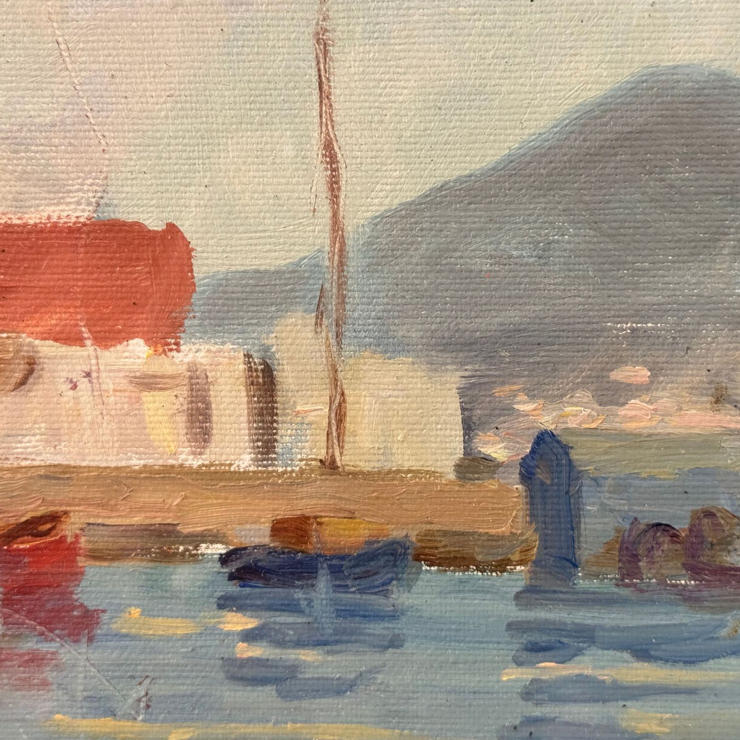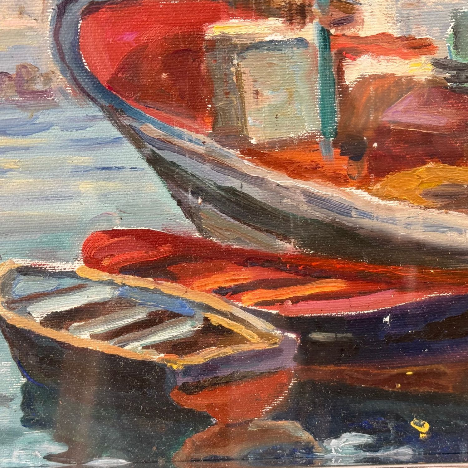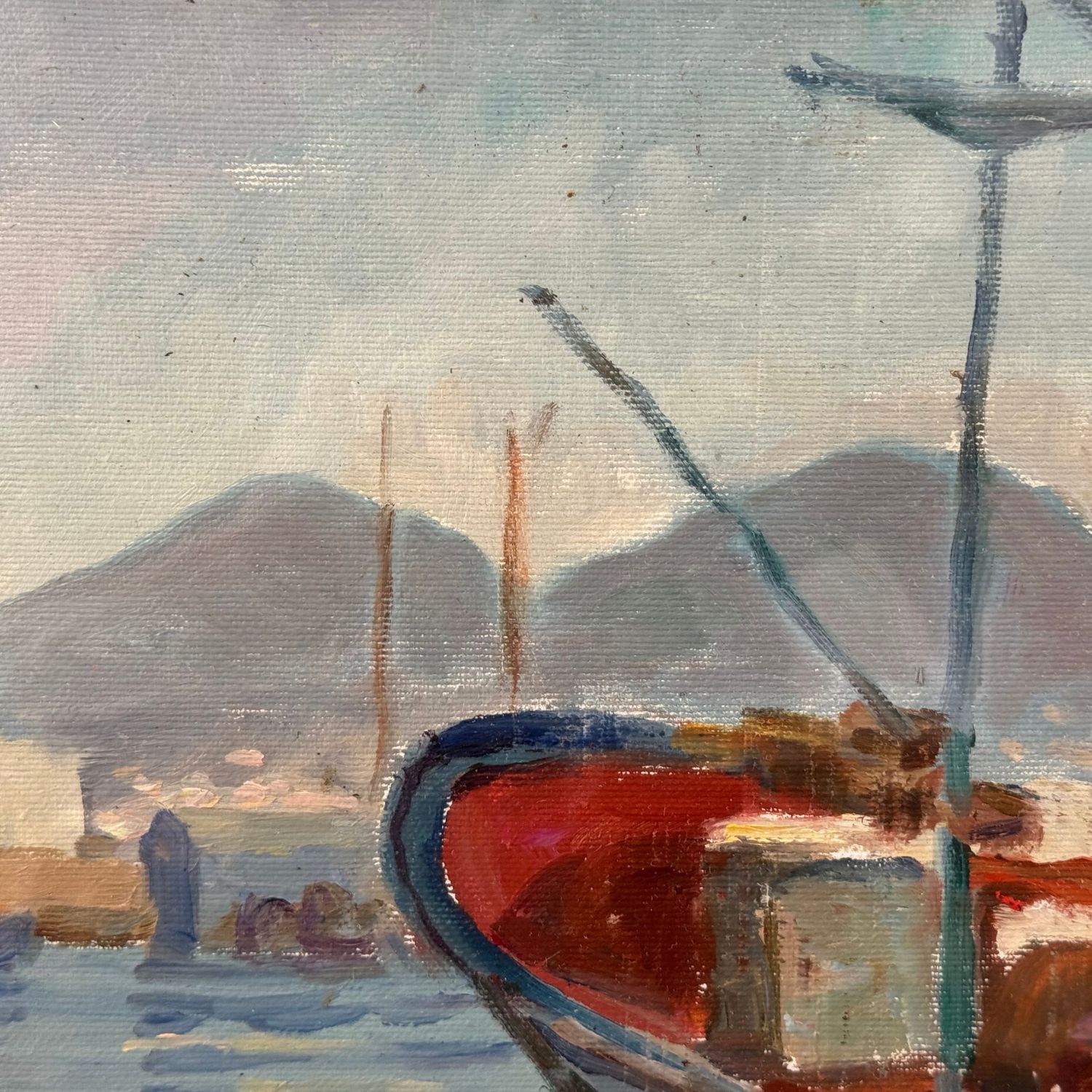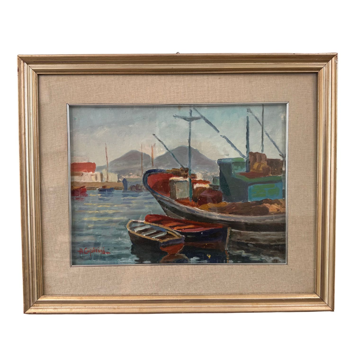 Dipinto olio su tela, periodo XX secolo scuola Italiana, raffigurante Barche a Mergellina.