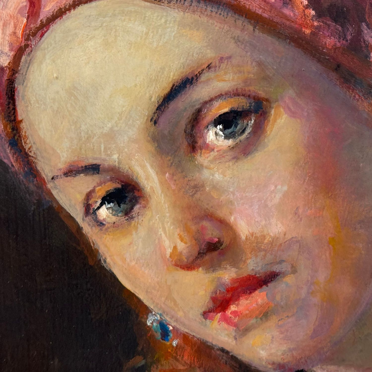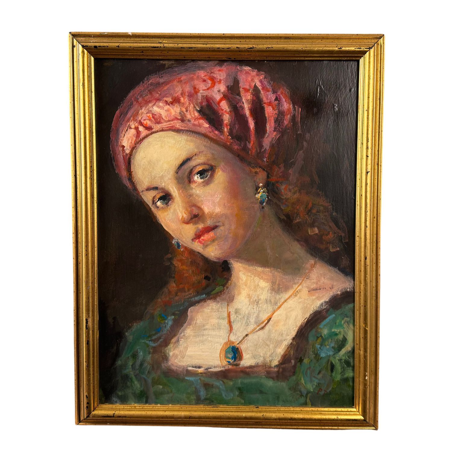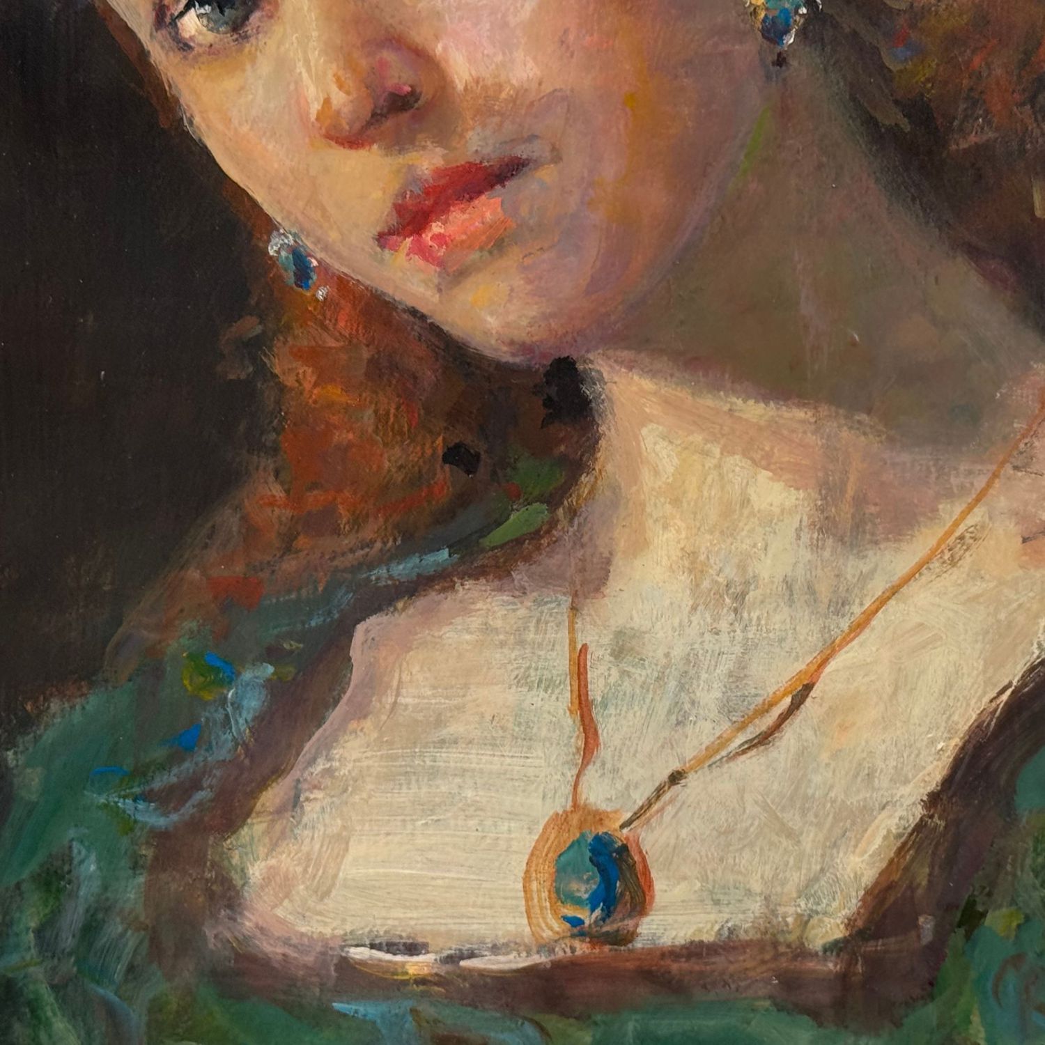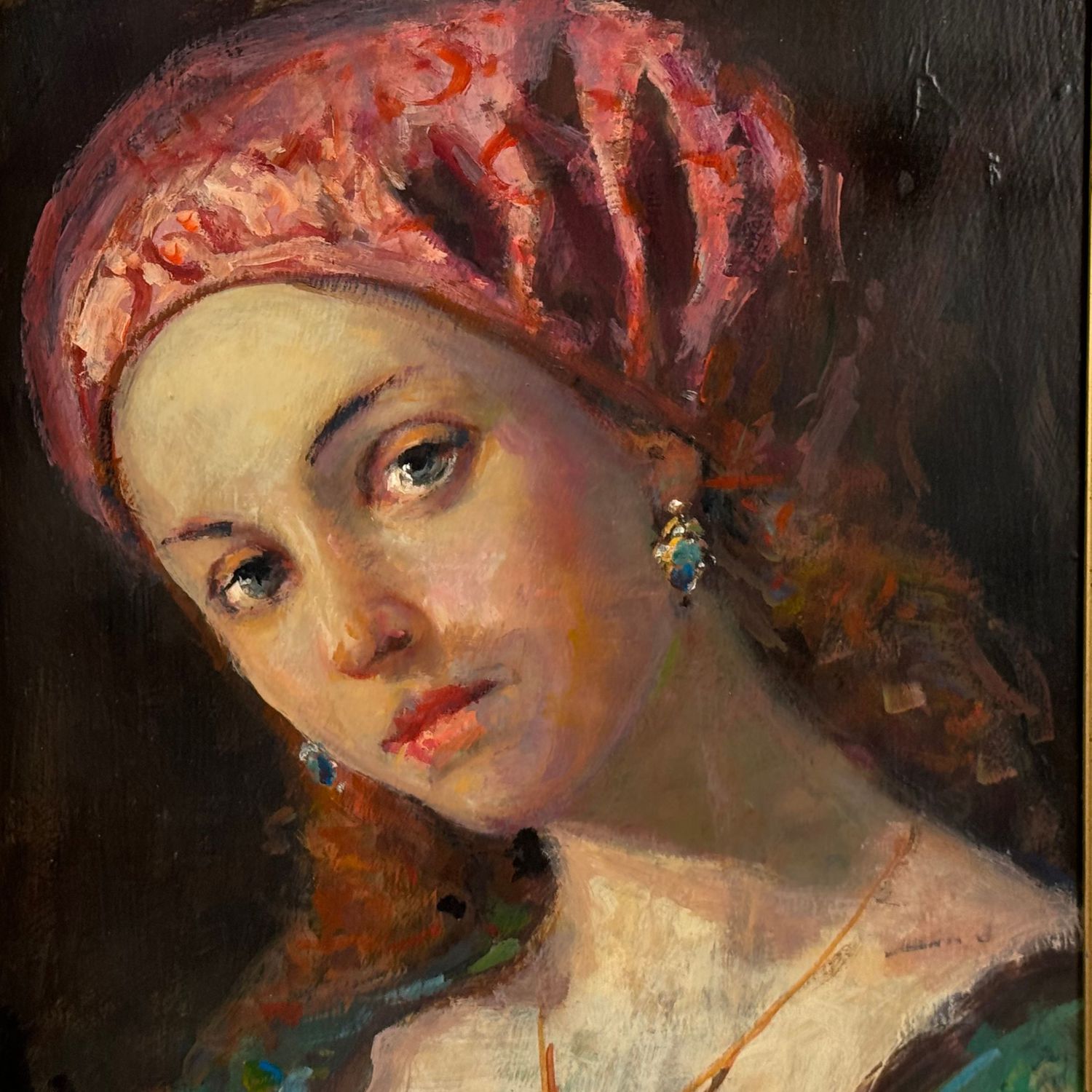 Dipinto olio su tavola, periodo XX secolo scuola Italiana raffigurante Ritratto di donna nella maniera impressionista.