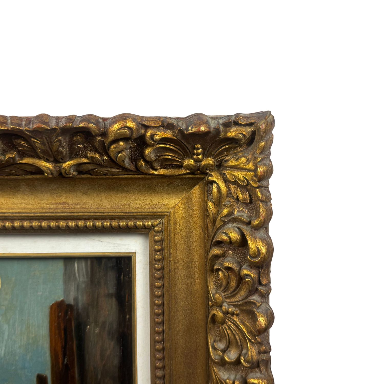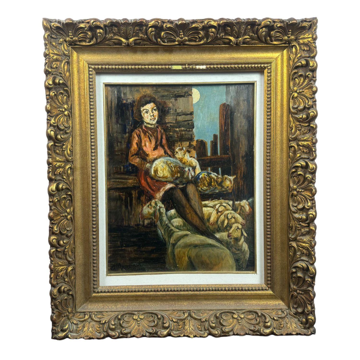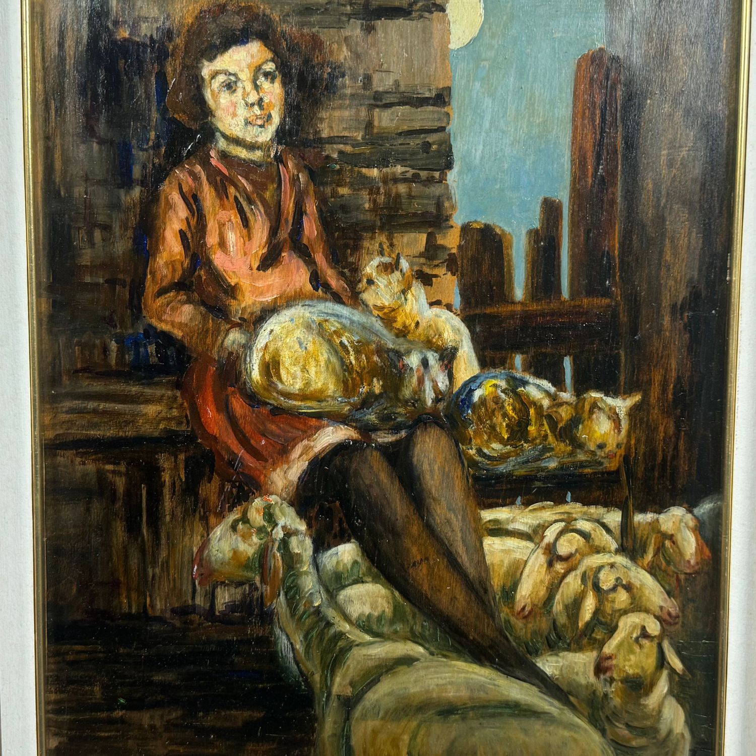 Dipinto olio su tavola, periodo XX secolo scuola Italiana, raffigurante Donna in un interno.