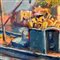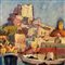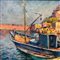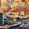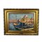 Dipinto olio su tavola, periodo XX secolo scuola Italiana, raffigurante Marina con barche.