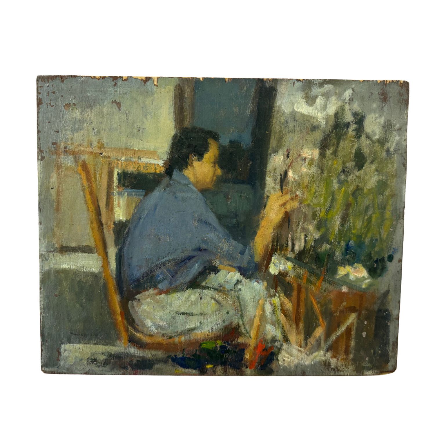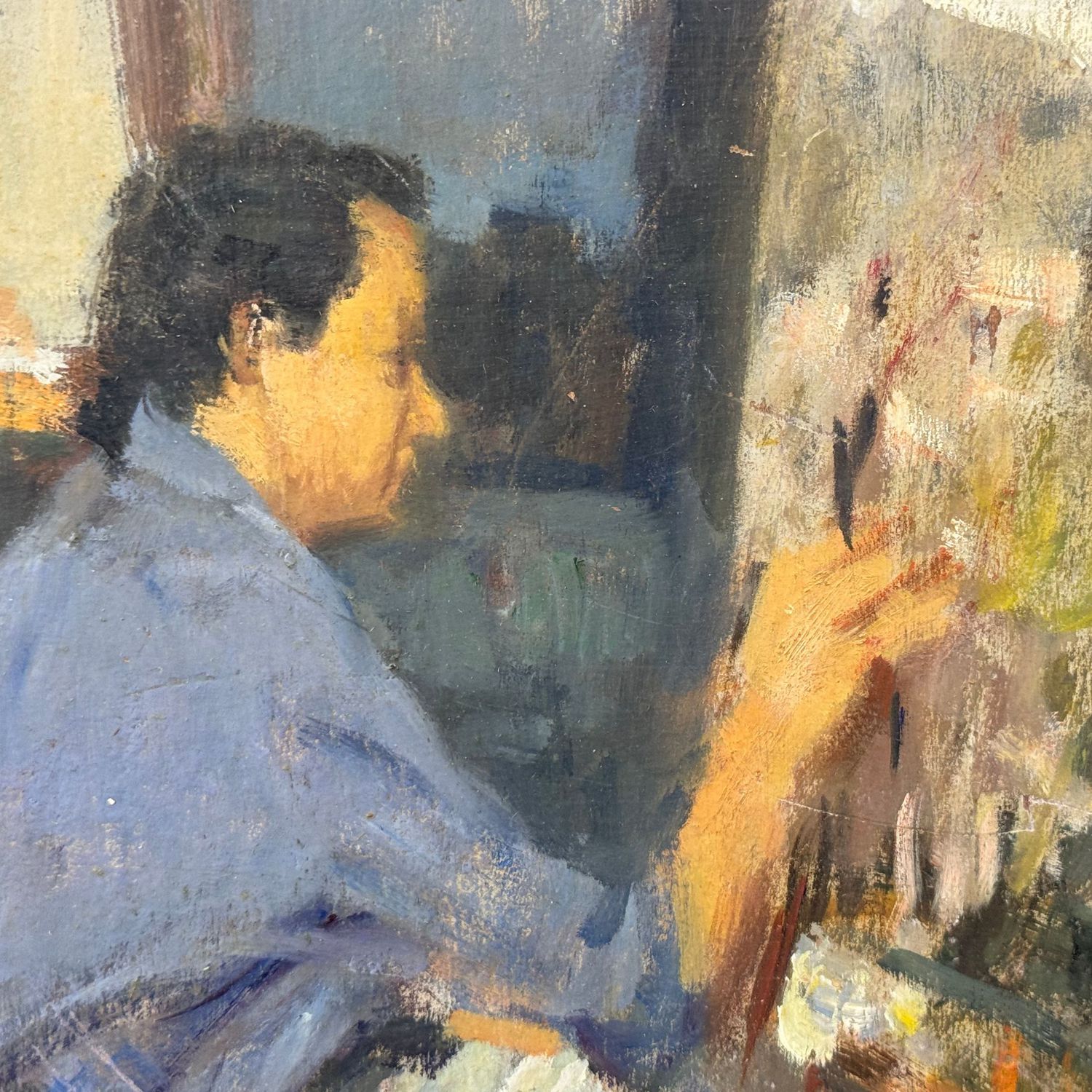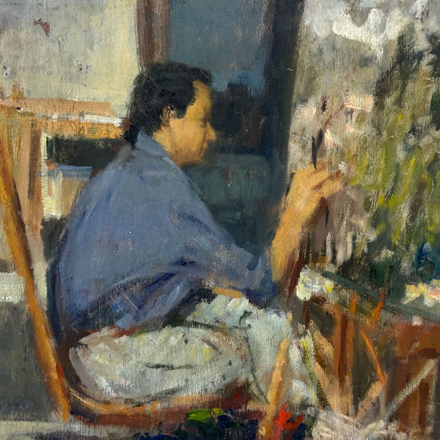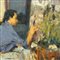 Dipinto olio su tavola, periodo XX secolo scuola Italiana, raffigurante Donna in un interno.