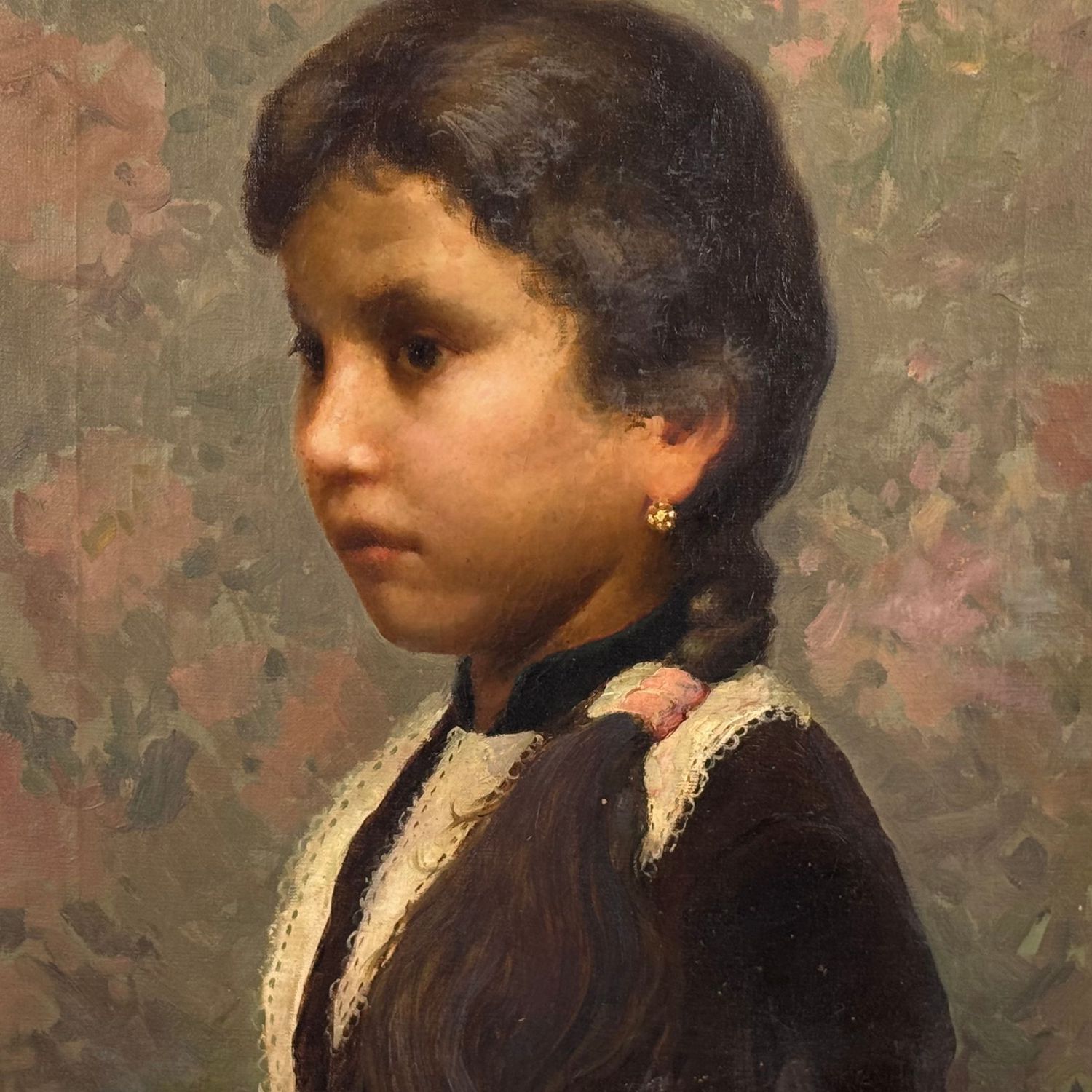 Dipinto olio su tela, periodo XIX secolo scuola Italiana, raffigurante Ritratto di bambina.