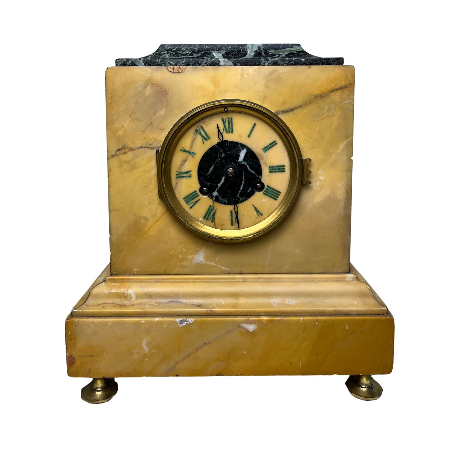 Orologio in marmo giallo, periodo Carlo X, XIX secolo. Sorretto da piedi in...