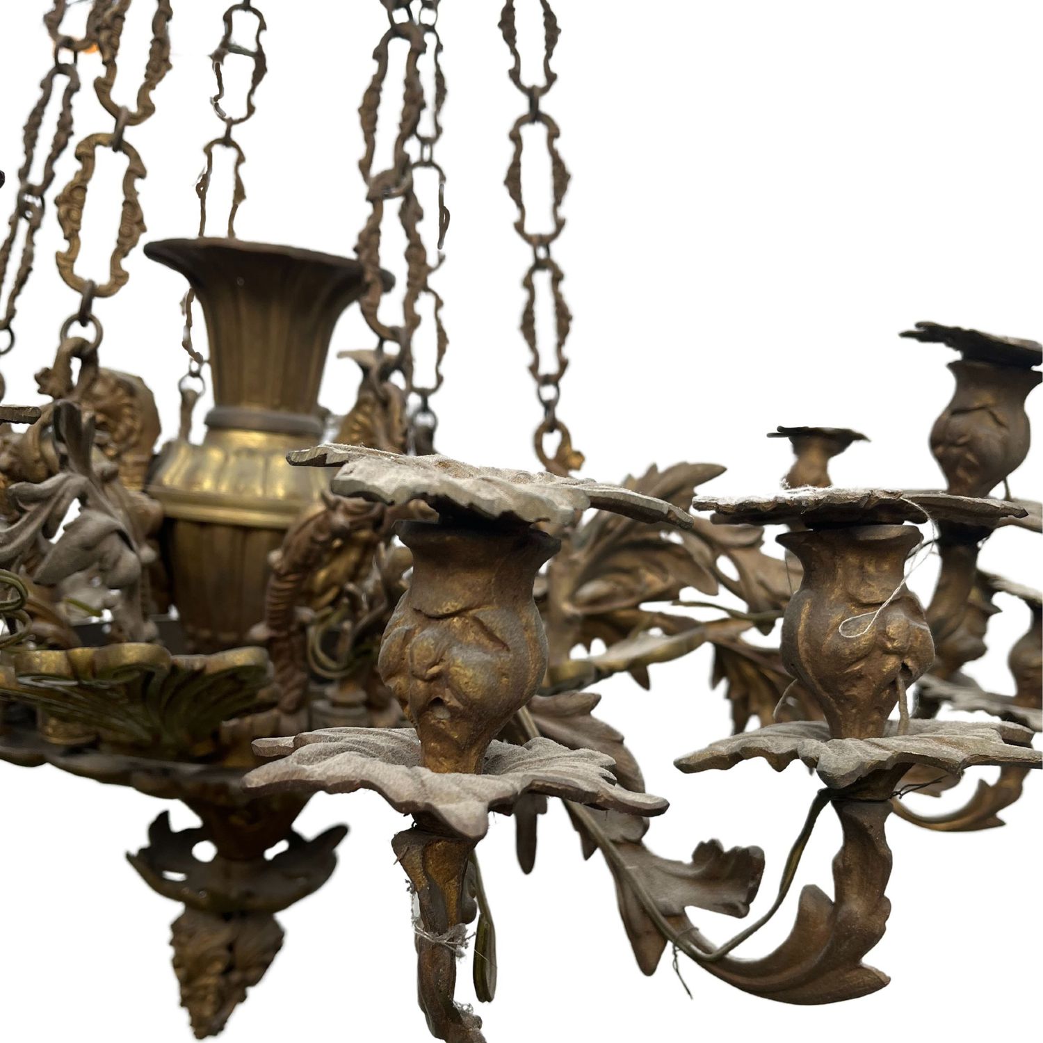 Importante lampadario in bronzo dorato finemente cisellato, composta da 18...
