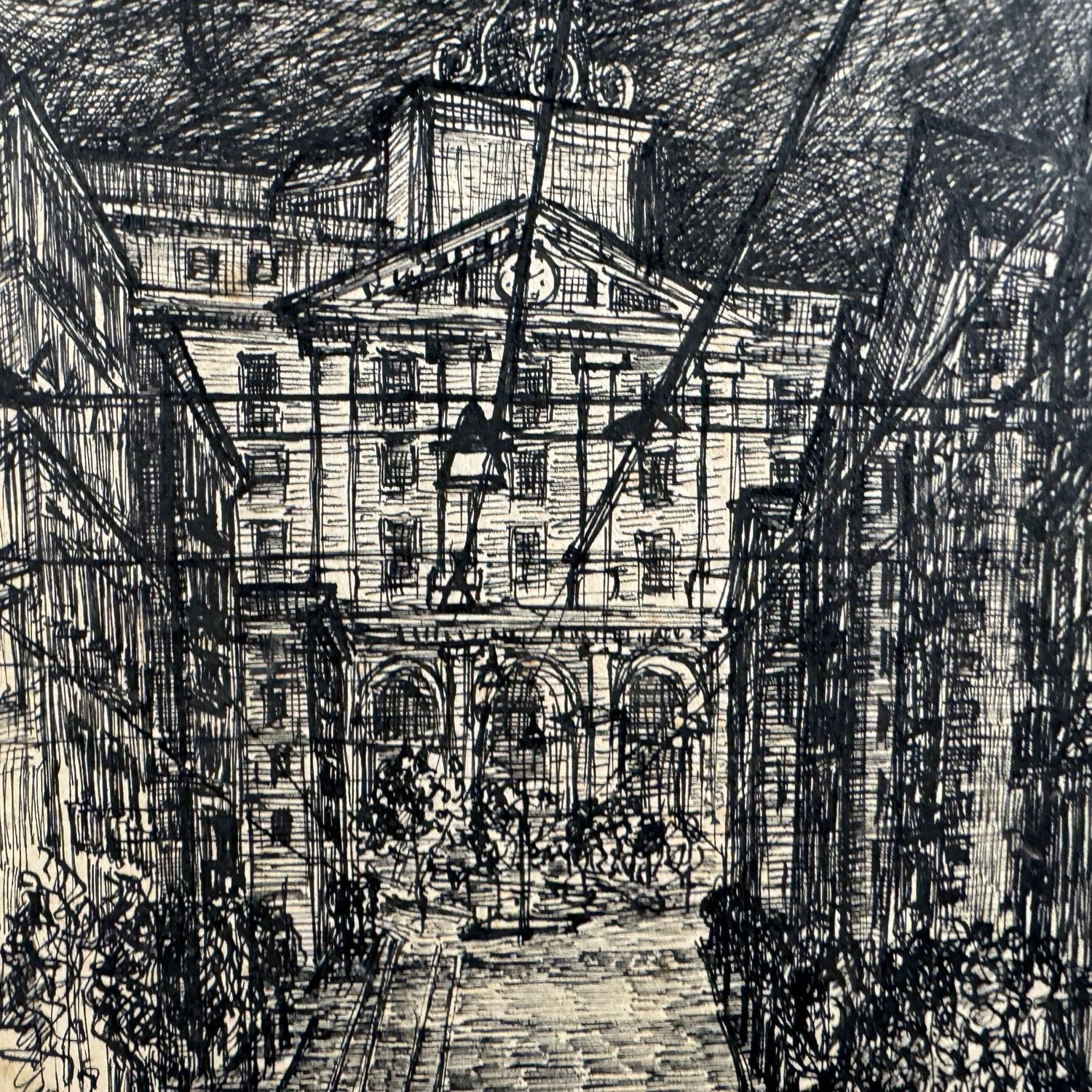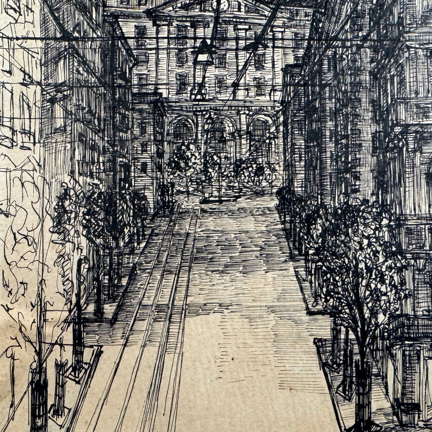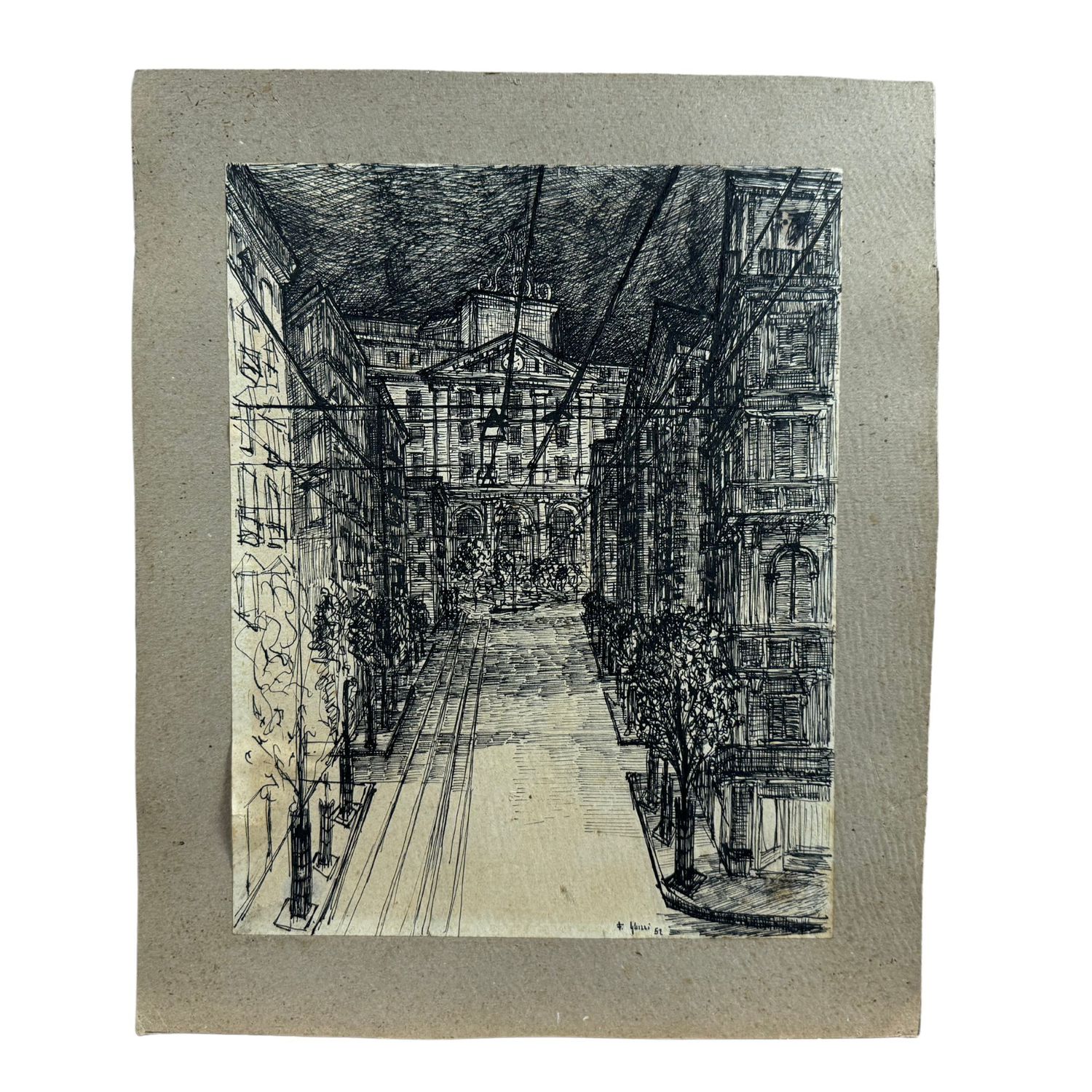 Tecnica mista su carta, periodo XX secolo scuola Italiana, raffigurante Cattedrale.