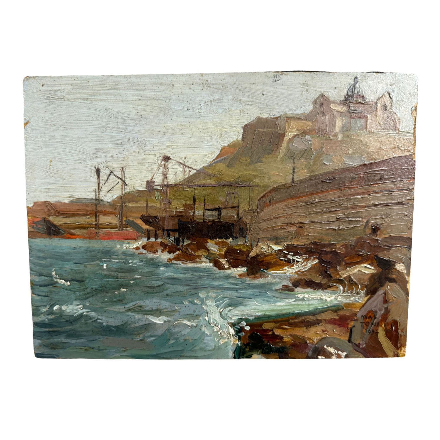 Dipinto olio su tavola, periodo XX (1936) secolo scuola Italiana, raffigurante Mareggiata.