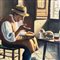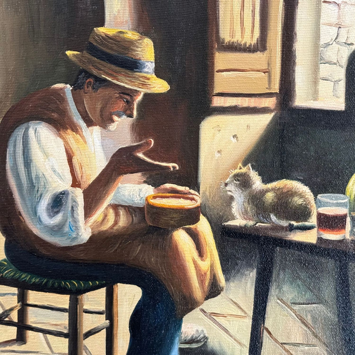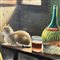 Dipinto olio su tela, periodo XX secolo scuola italiana, raffigurante Giochi col gatto.