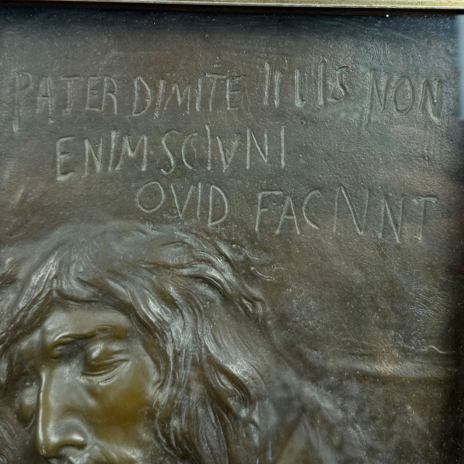 Lastra in bronzo periodo XX secolo, raffigurante Volto di Cristo.
