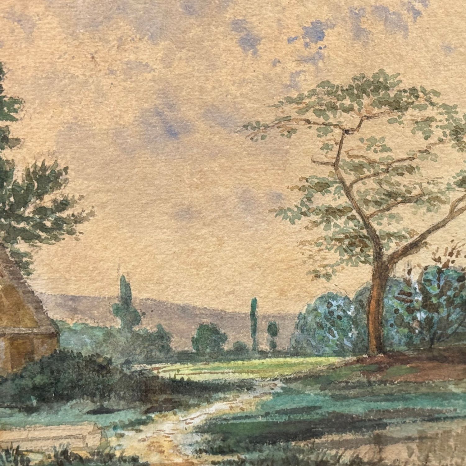 Dipinto acquerello su carta, periodo XIX/XX secolo scuola Italiana, raffigurante Paesaggio.