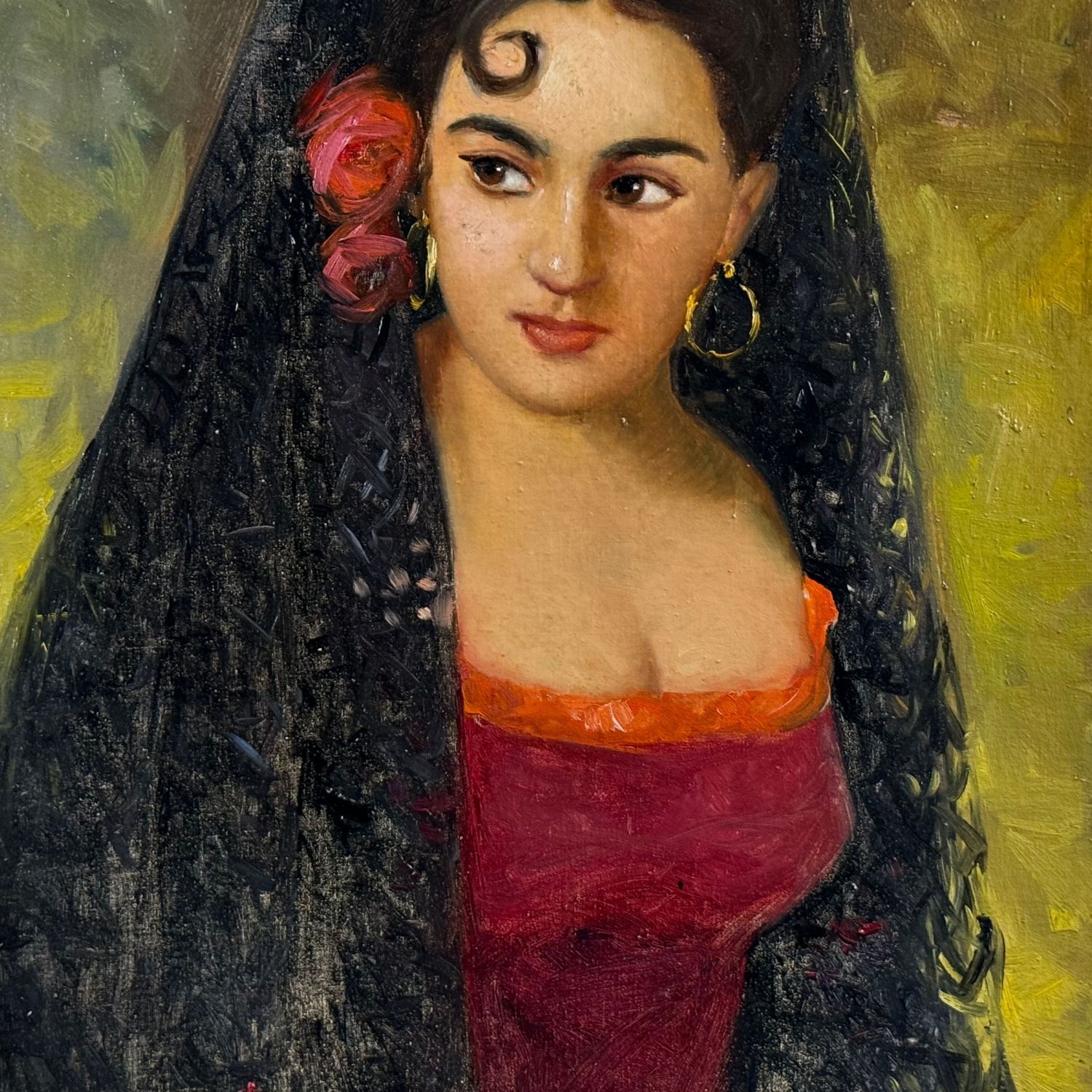 Dipinto olio su tela, periodo XX secolo scuola Italiana, raffigurante Ritratto di donna con velo.