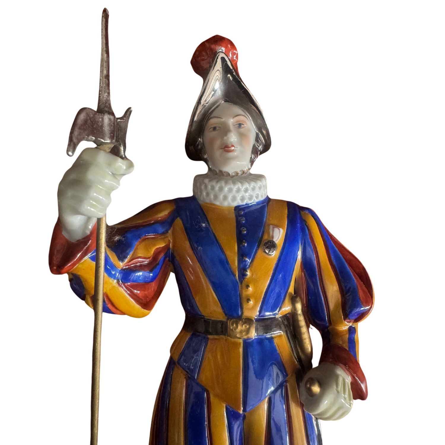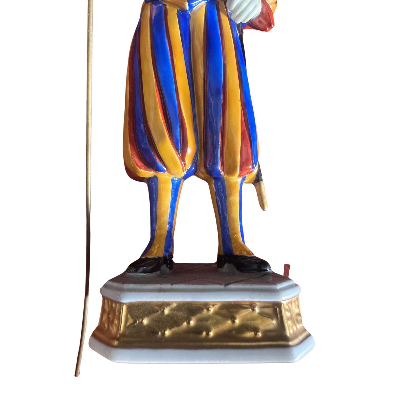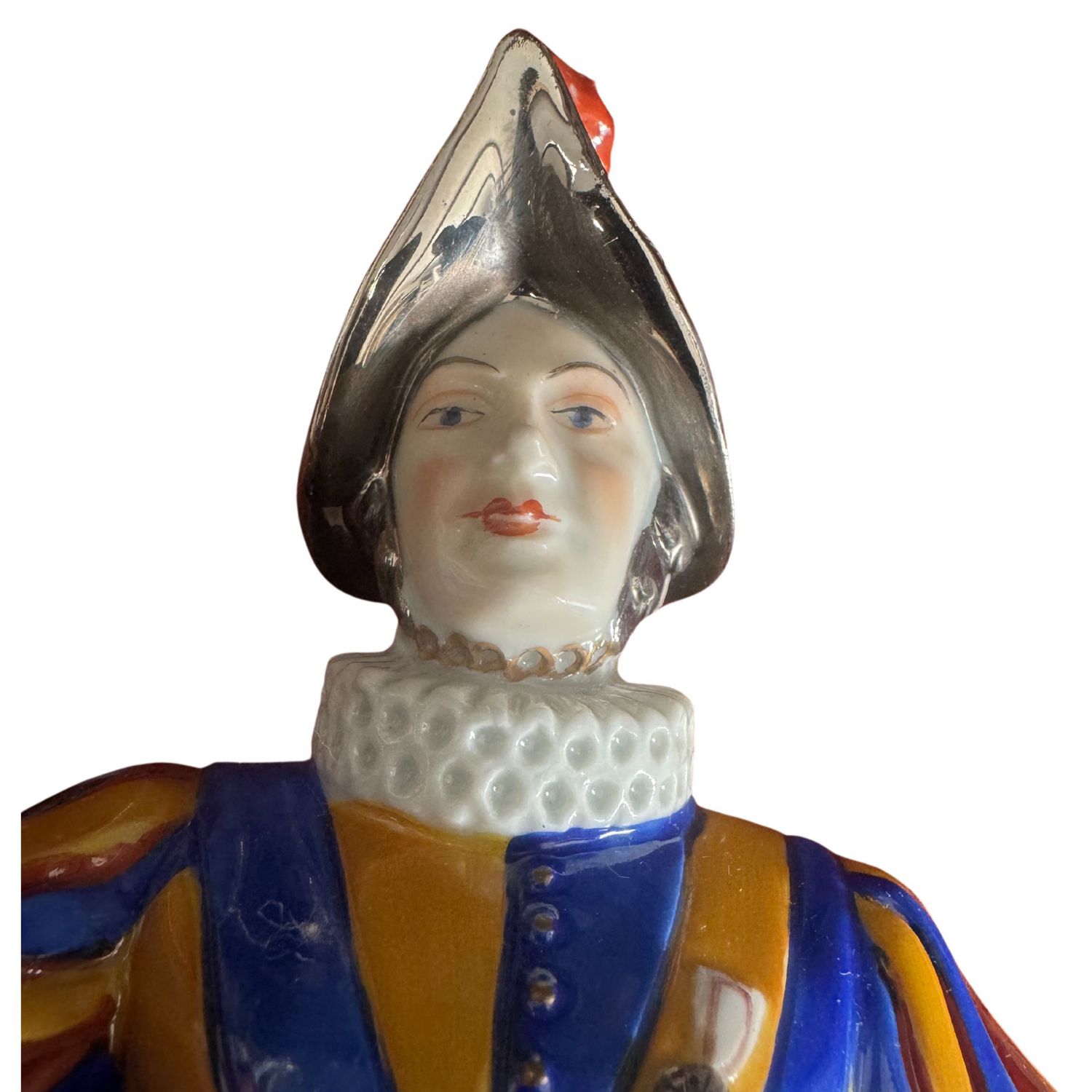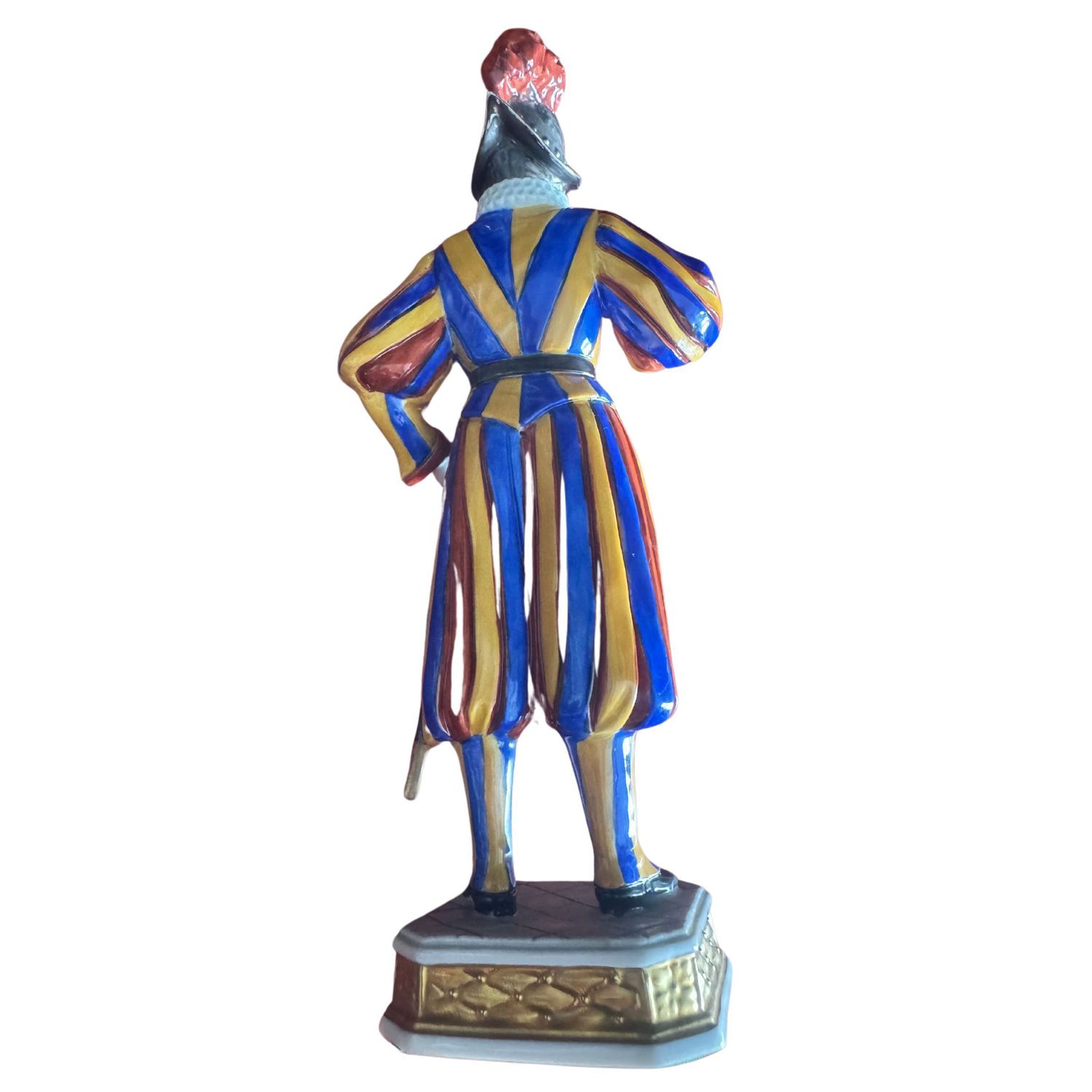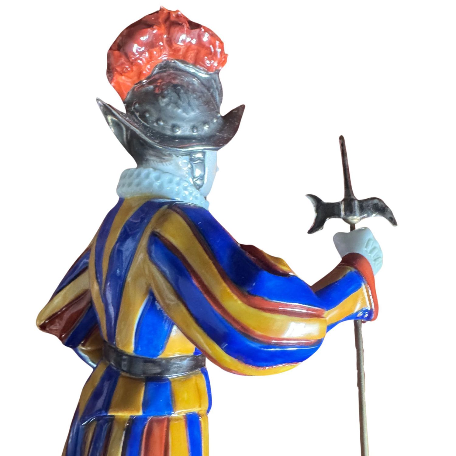 Statuetta in ceramica smaltata e decorata a mano, periodo XX secolo, raffigurante Guardia Svizzera.