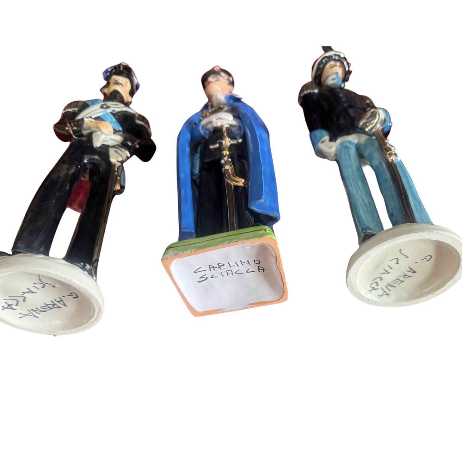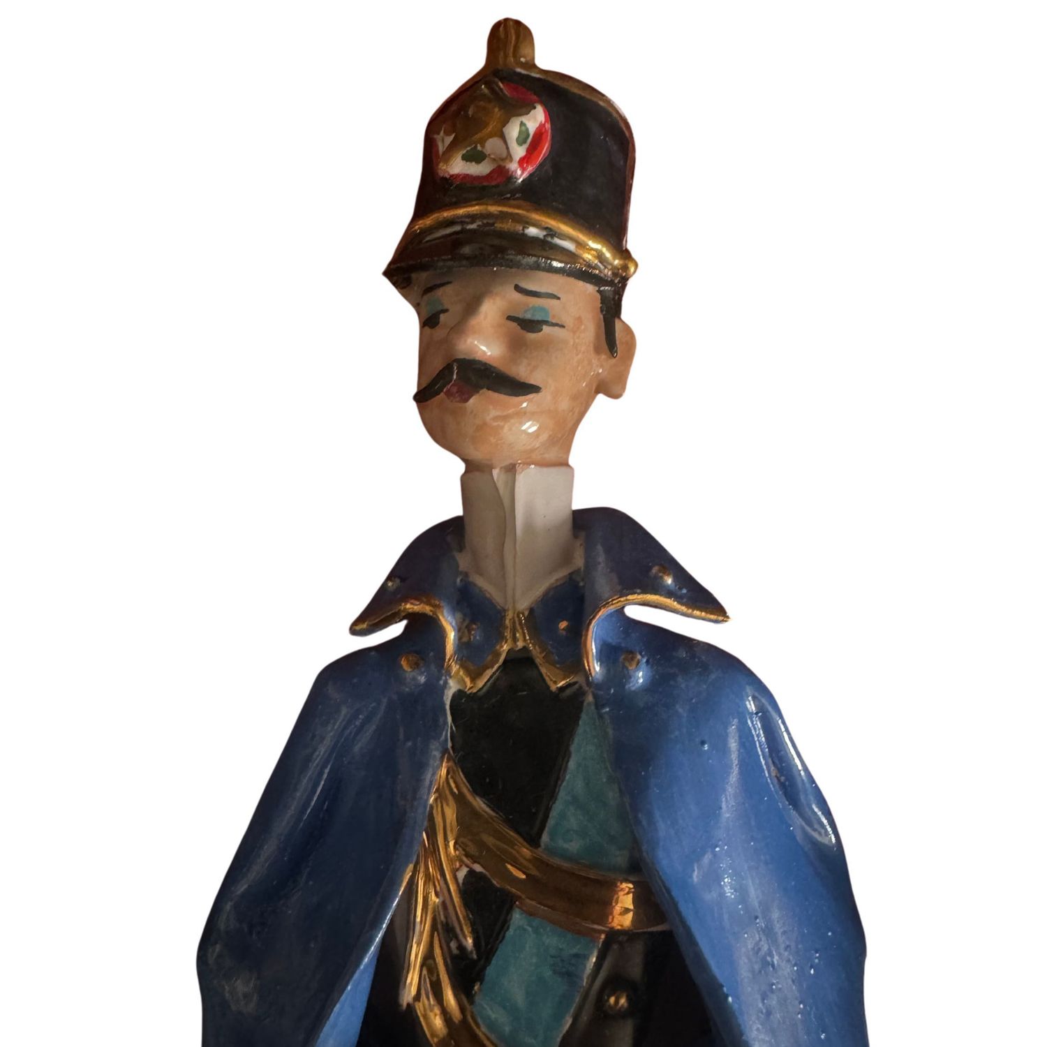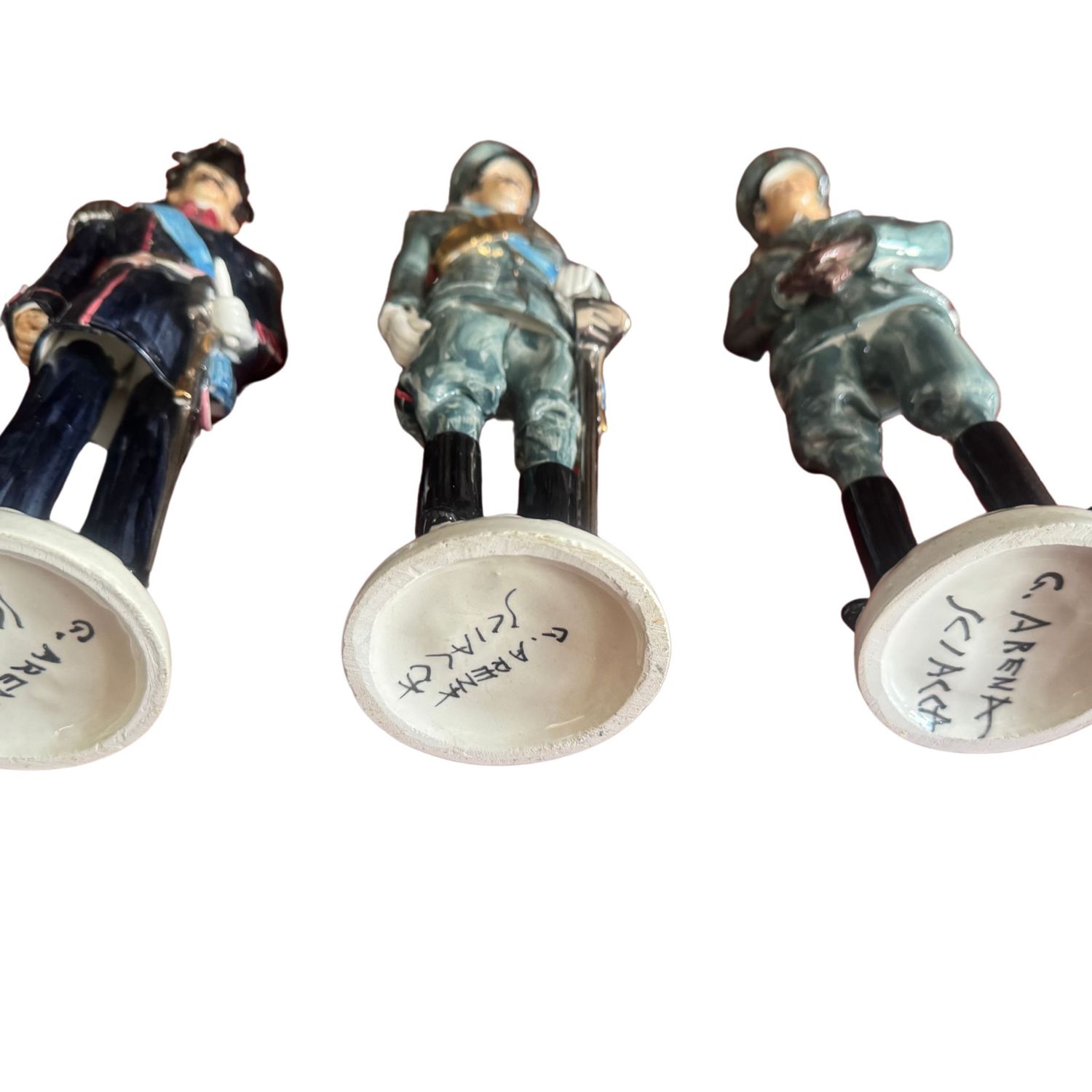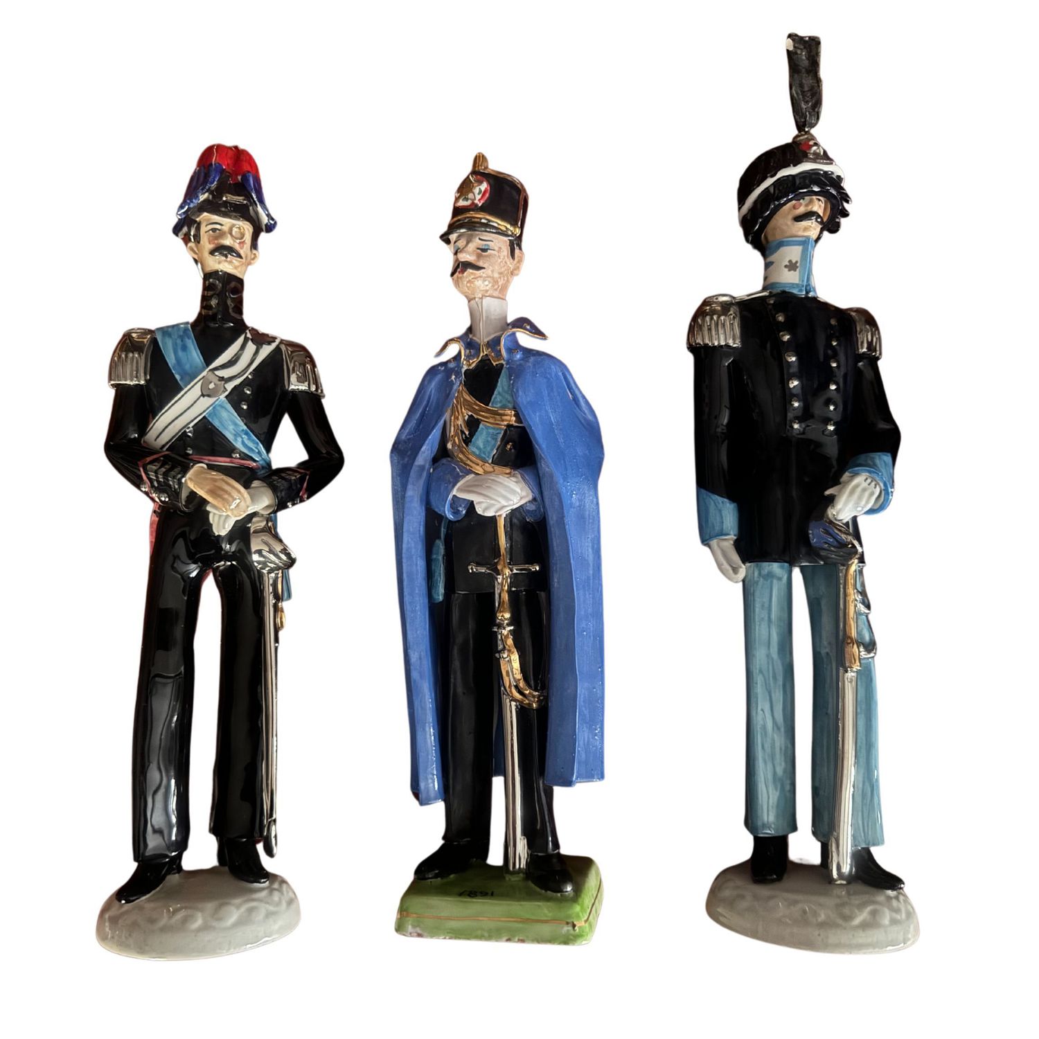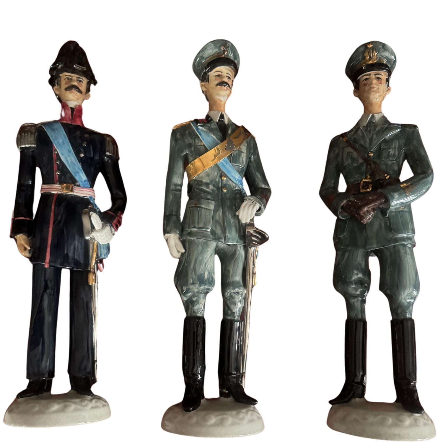 Lotto di 6 statuette in ceramica smaltate e decorate a mano, periodo XX secolo, raffiguranti Militari in uniforme.