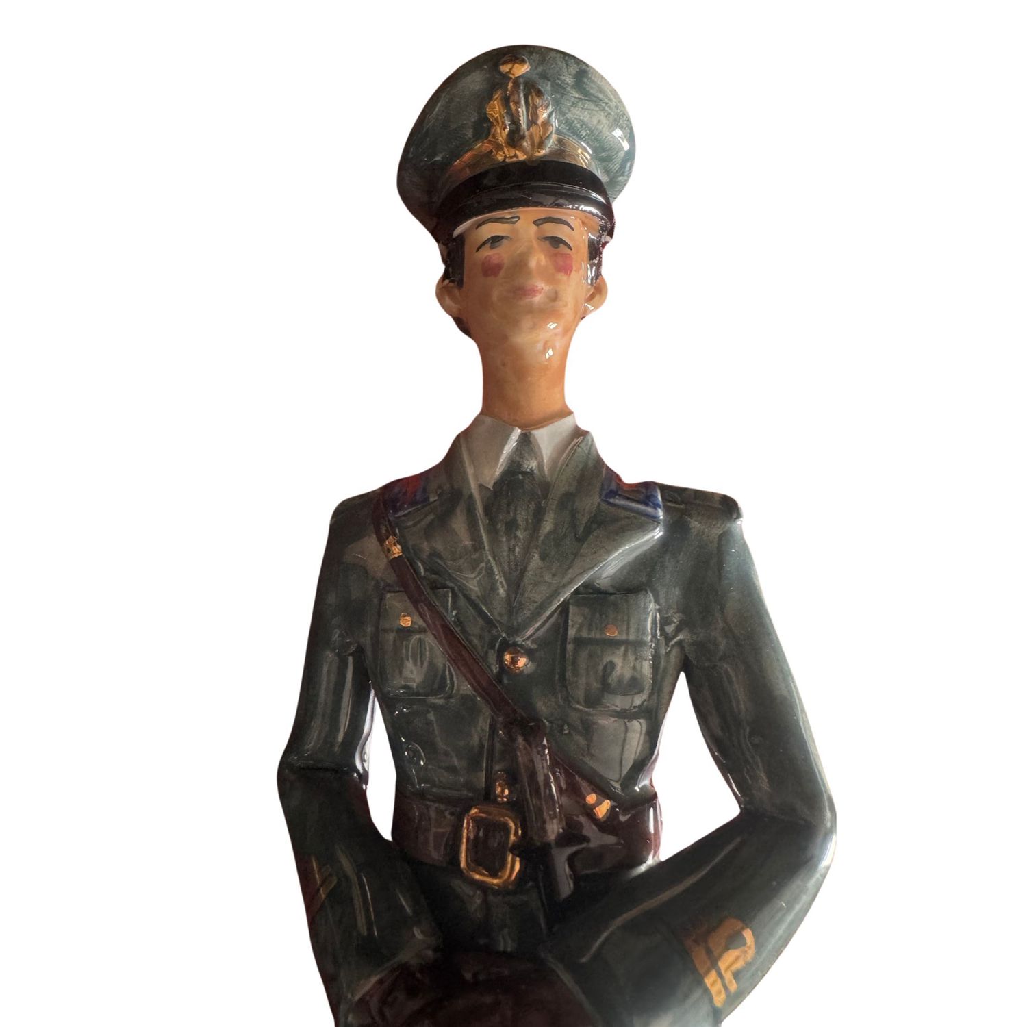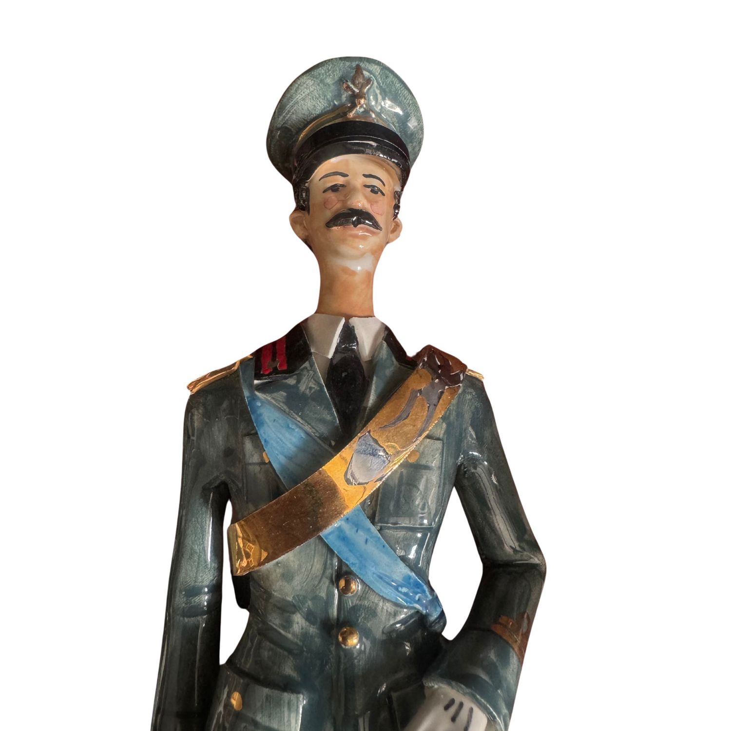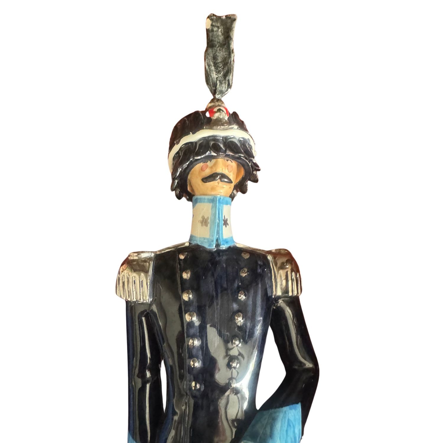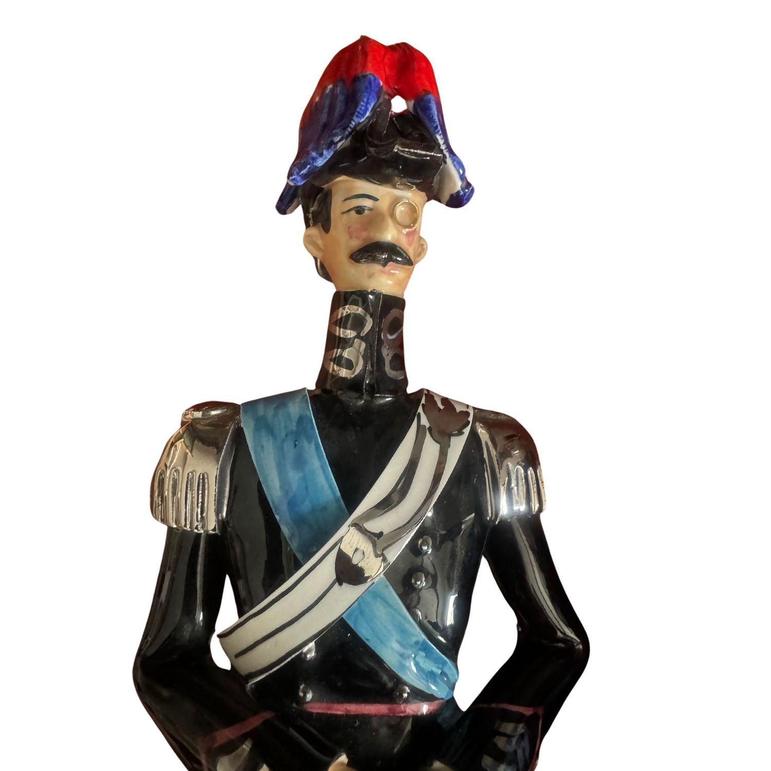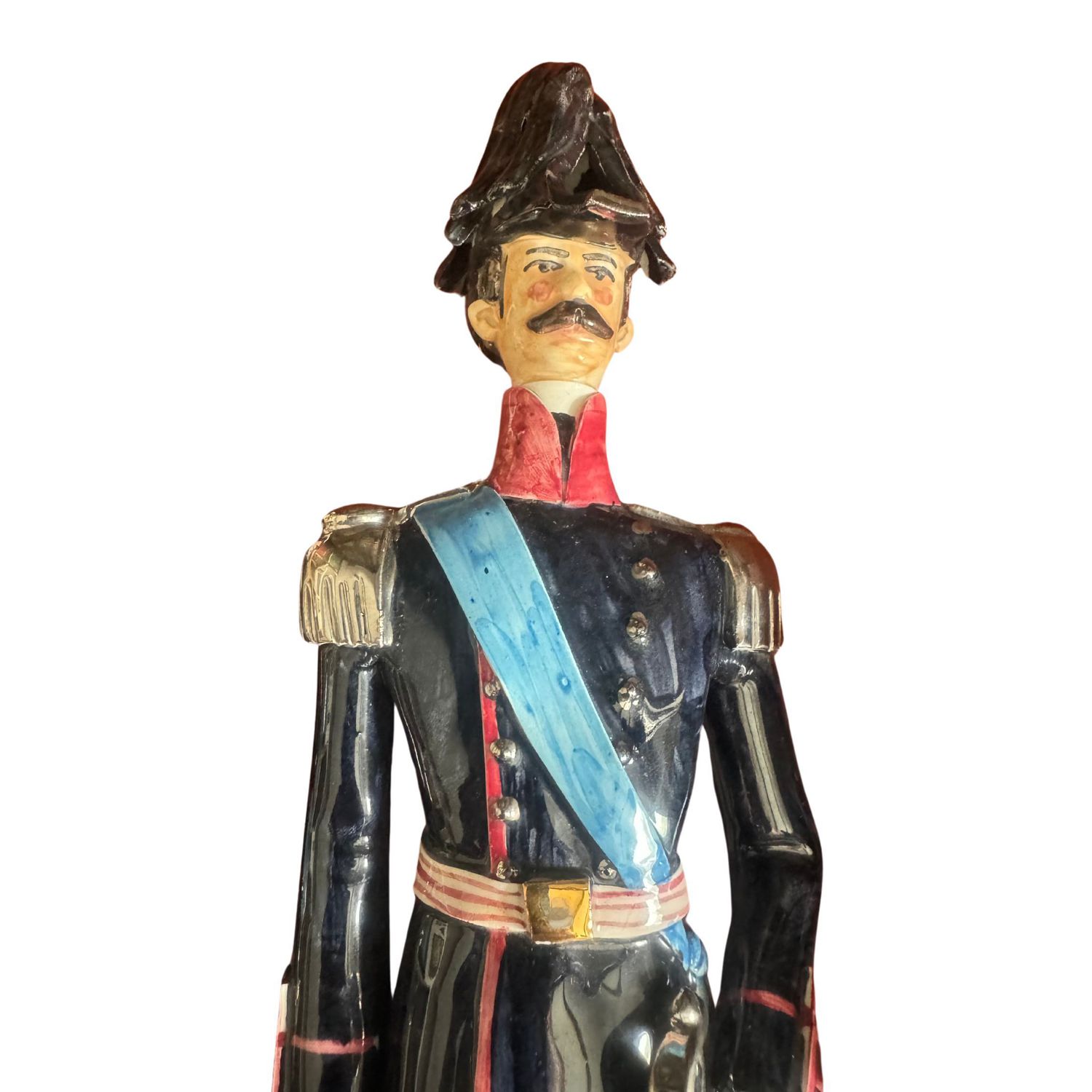 Lotto di 6 statuette in ceramica smaltate e decorate a mano, periodo XX secolo, raffiguranti Militari in uniforme.