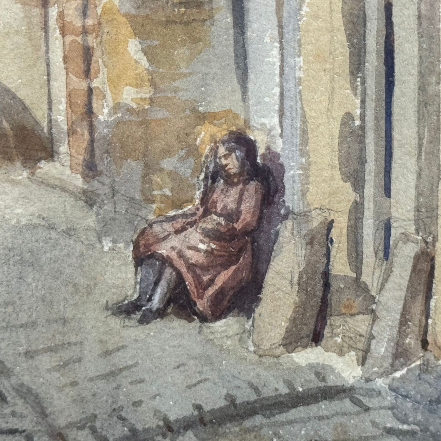Dipinto acquerello su carta, periodo primi anni del XX secolo scuola Italiana, raffigurante Scorcio di strada (luogo imprecisato).