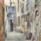 Dipinto acquerello su carta, periodo primi anni del XX secolo scuola Italiana, raffigurante Scorcio di strada (luogo imprecisato).