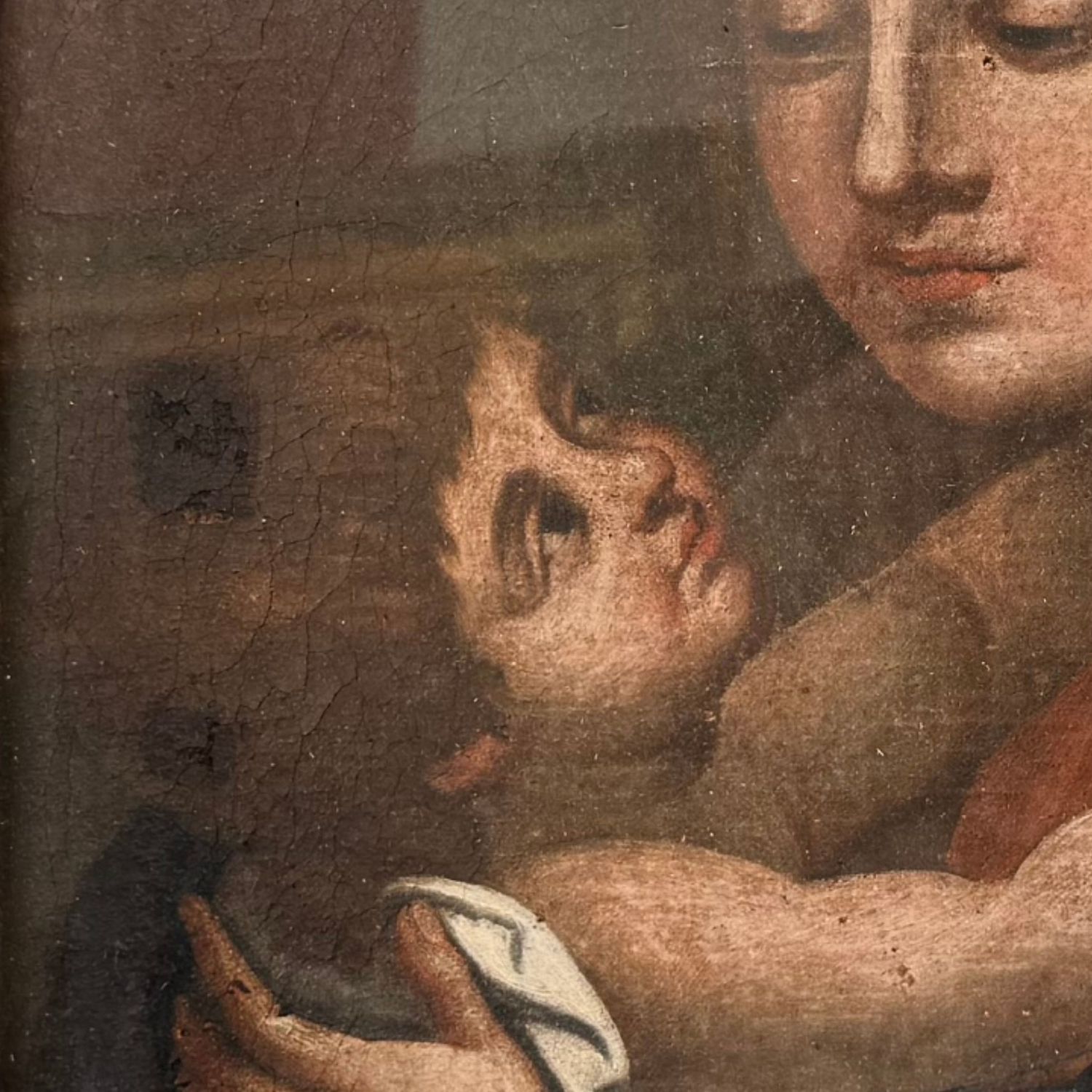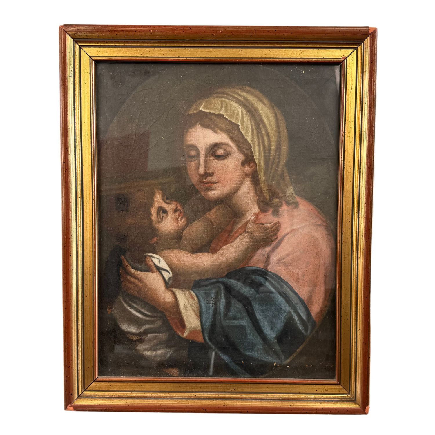 Dipinto olio su tela, periodo XVIII secolo scuola Italiana, raffigurante Madonna con Bambino.
