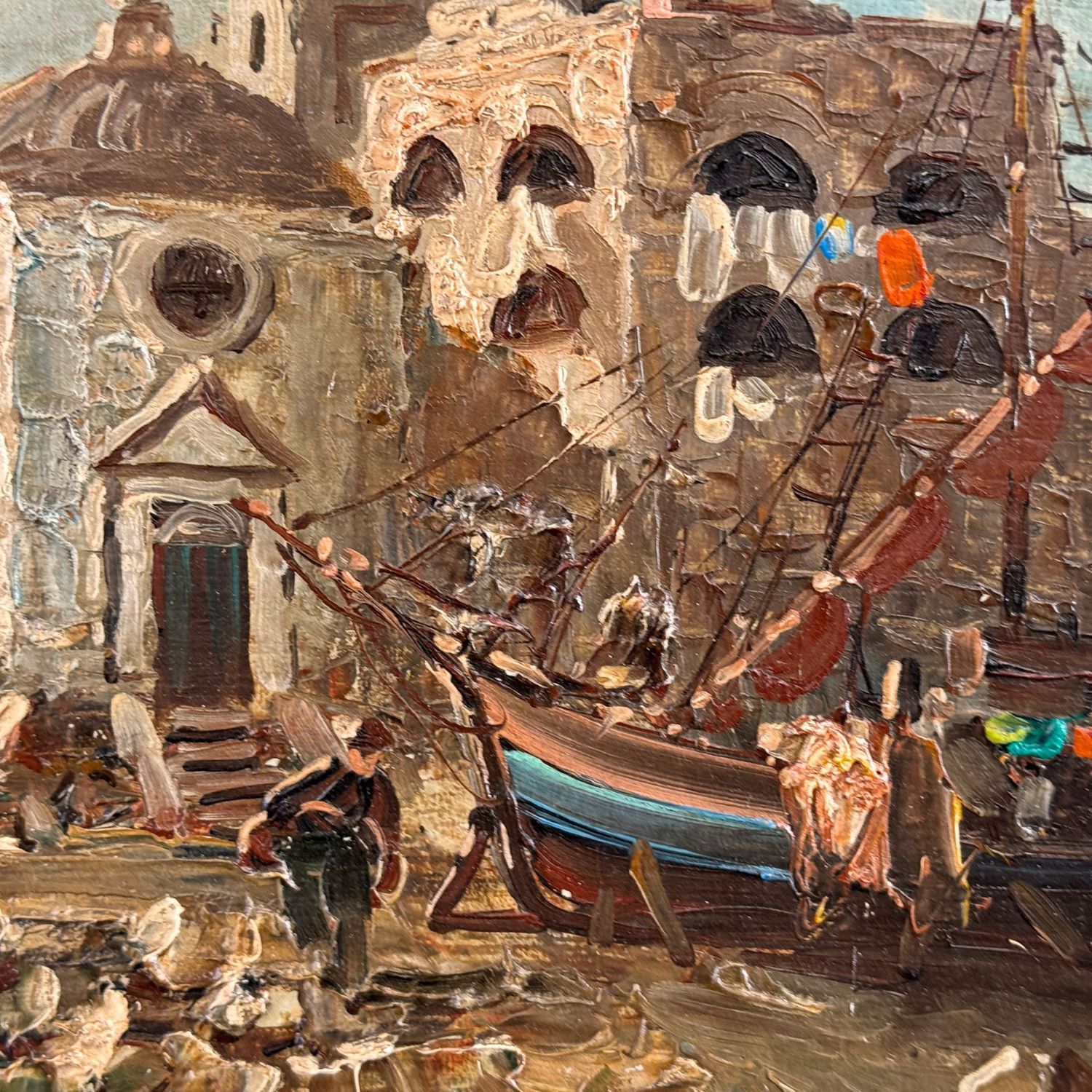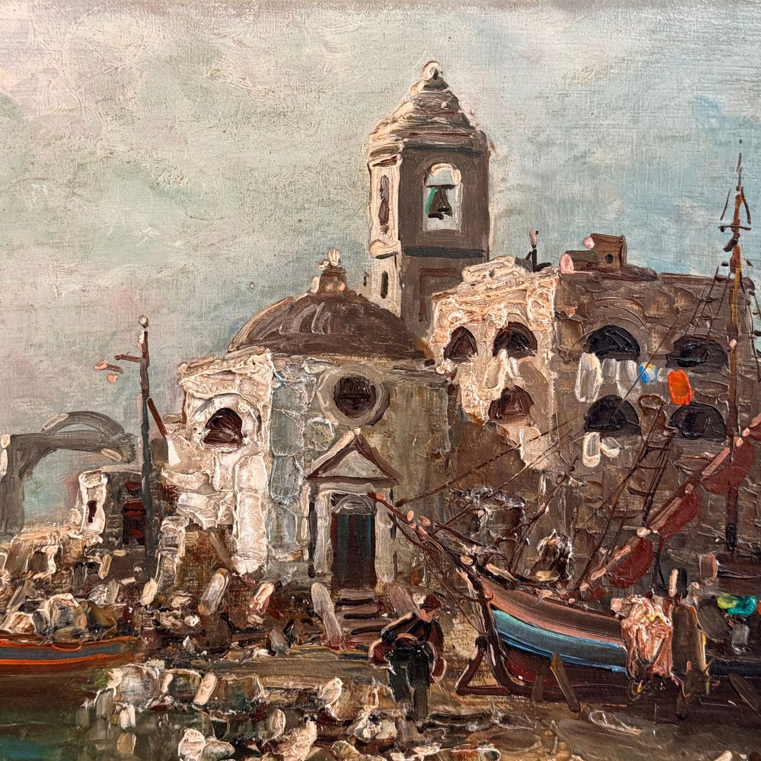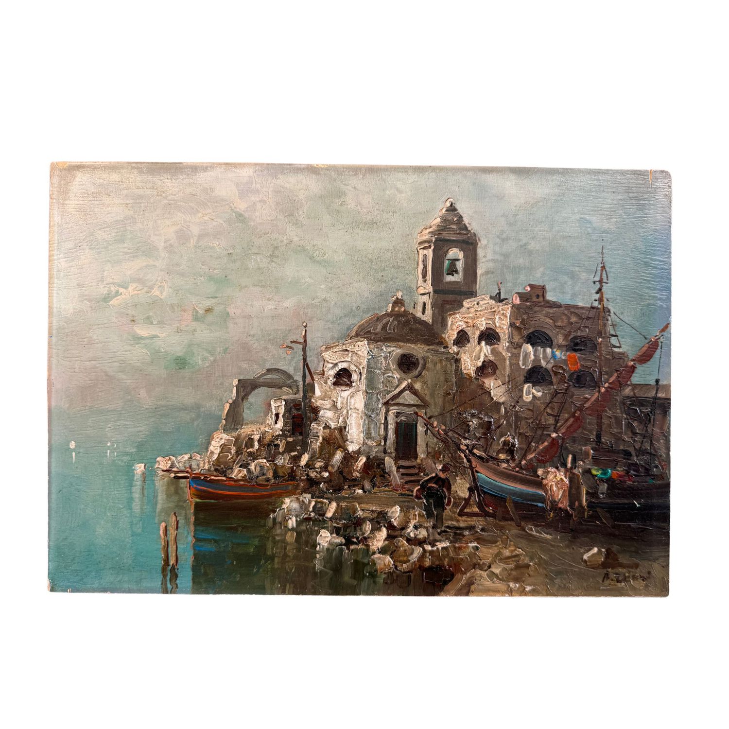 Dipinto olio su tavola, periodo XX secolo scuola Italiana, raffigurante Scorcio di marina.