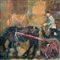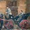 Dipinto olio su pannello, periodo XX secolo scuola Italiana, raffigurante Personaggi in carrozza.
