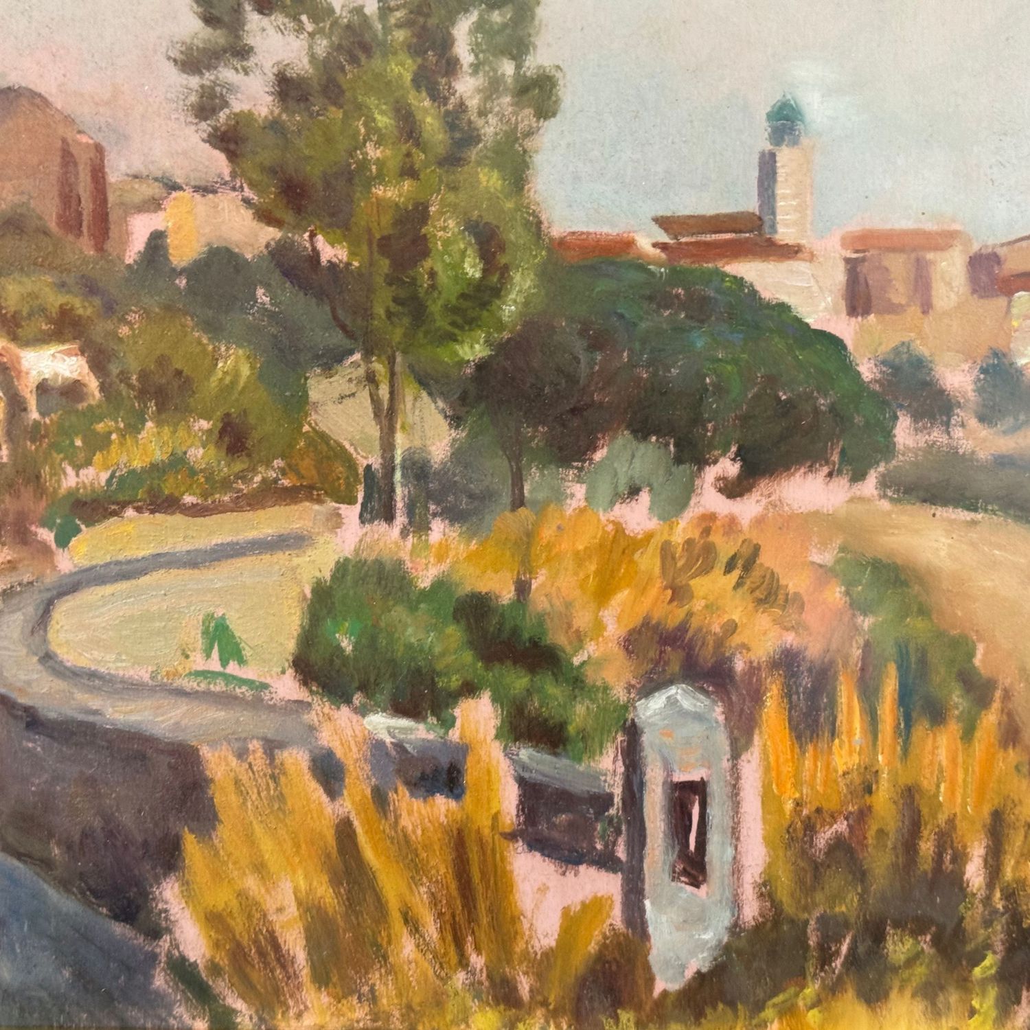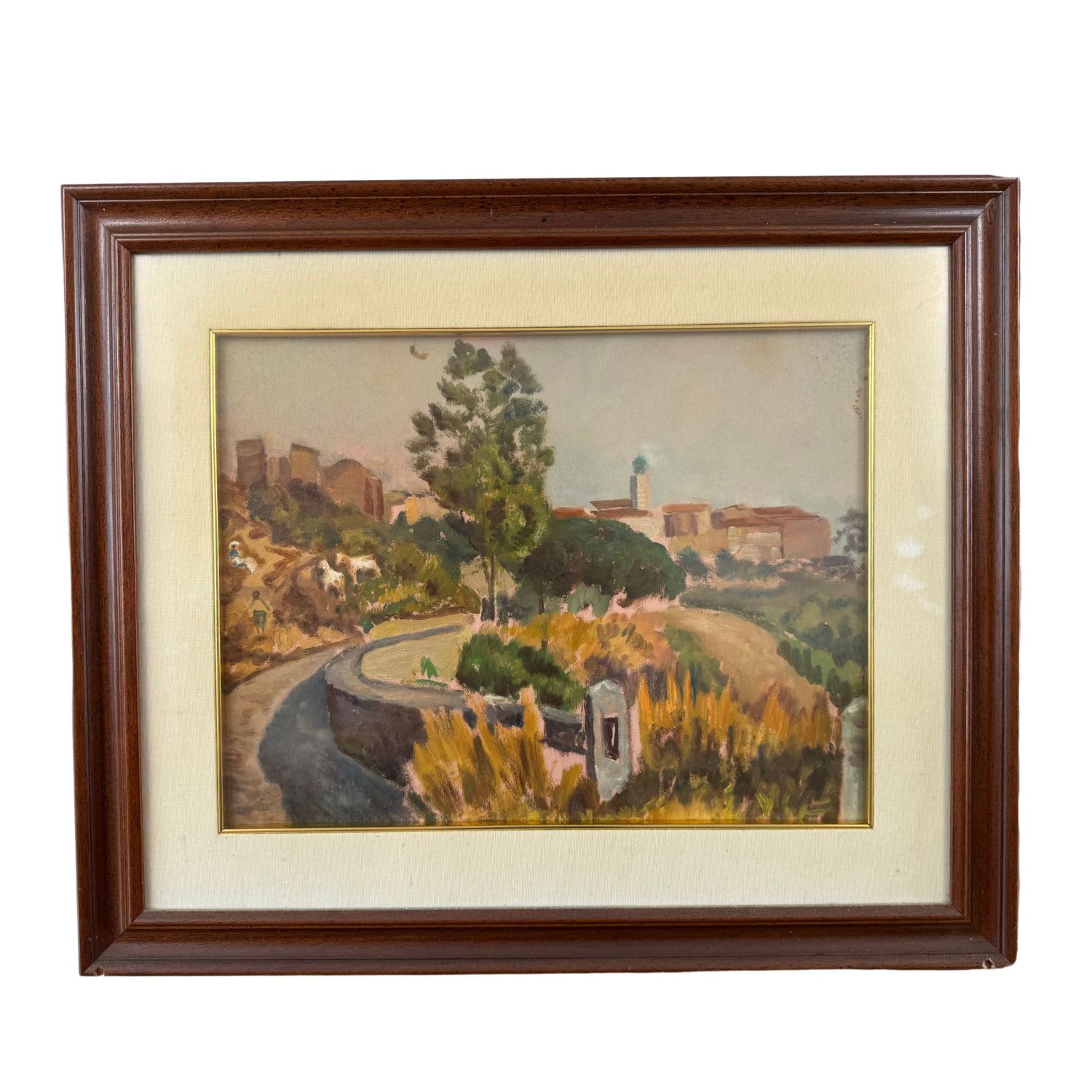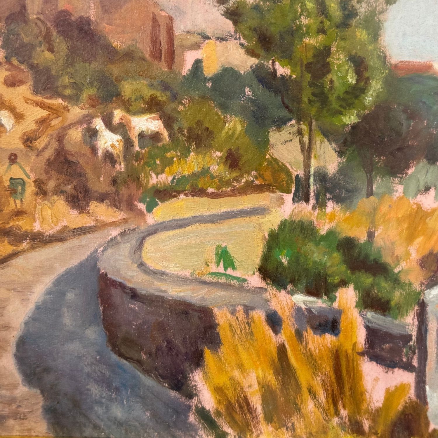 Dipinto olio su pannello, periodo XX secolo scuola italiana, raffigurante Strada di campagna.