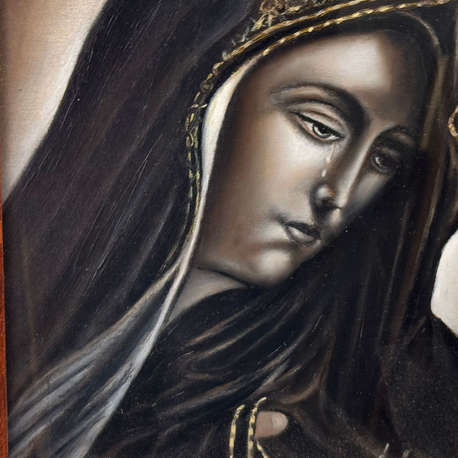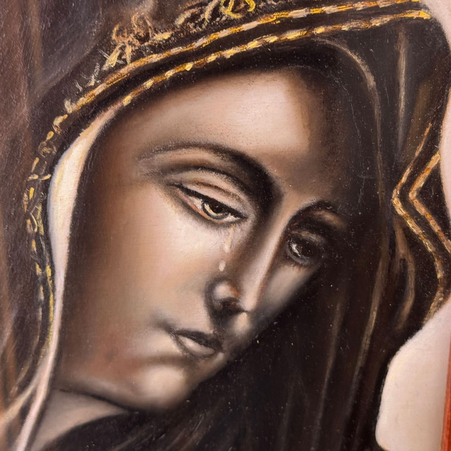 Dipinto olio su tela, periodo XX secolo scuola Italiana, raffigurante Vergine Maria.