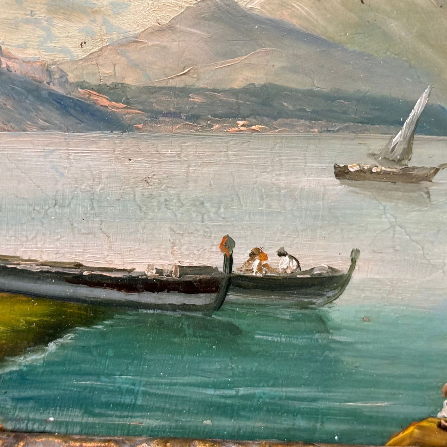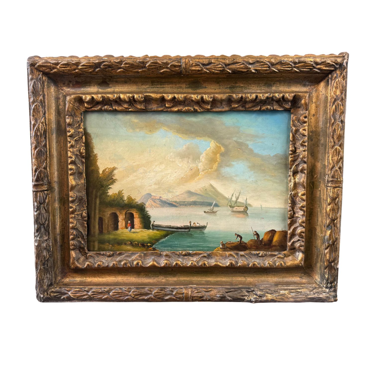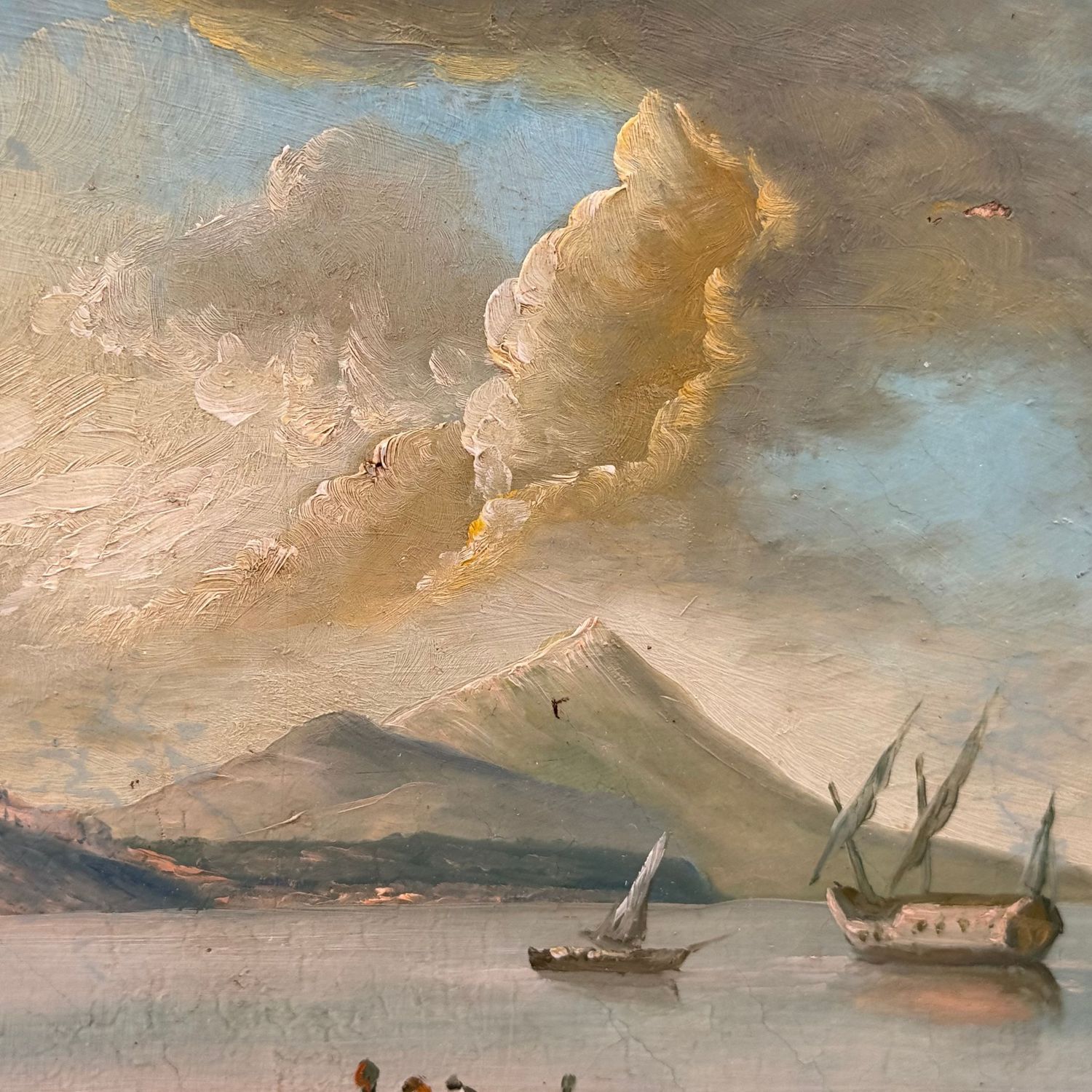 Dipinto olio su tavola, periodo XIX/XX secolo scuola Italiana, raffigurante Golfo di Napoli.