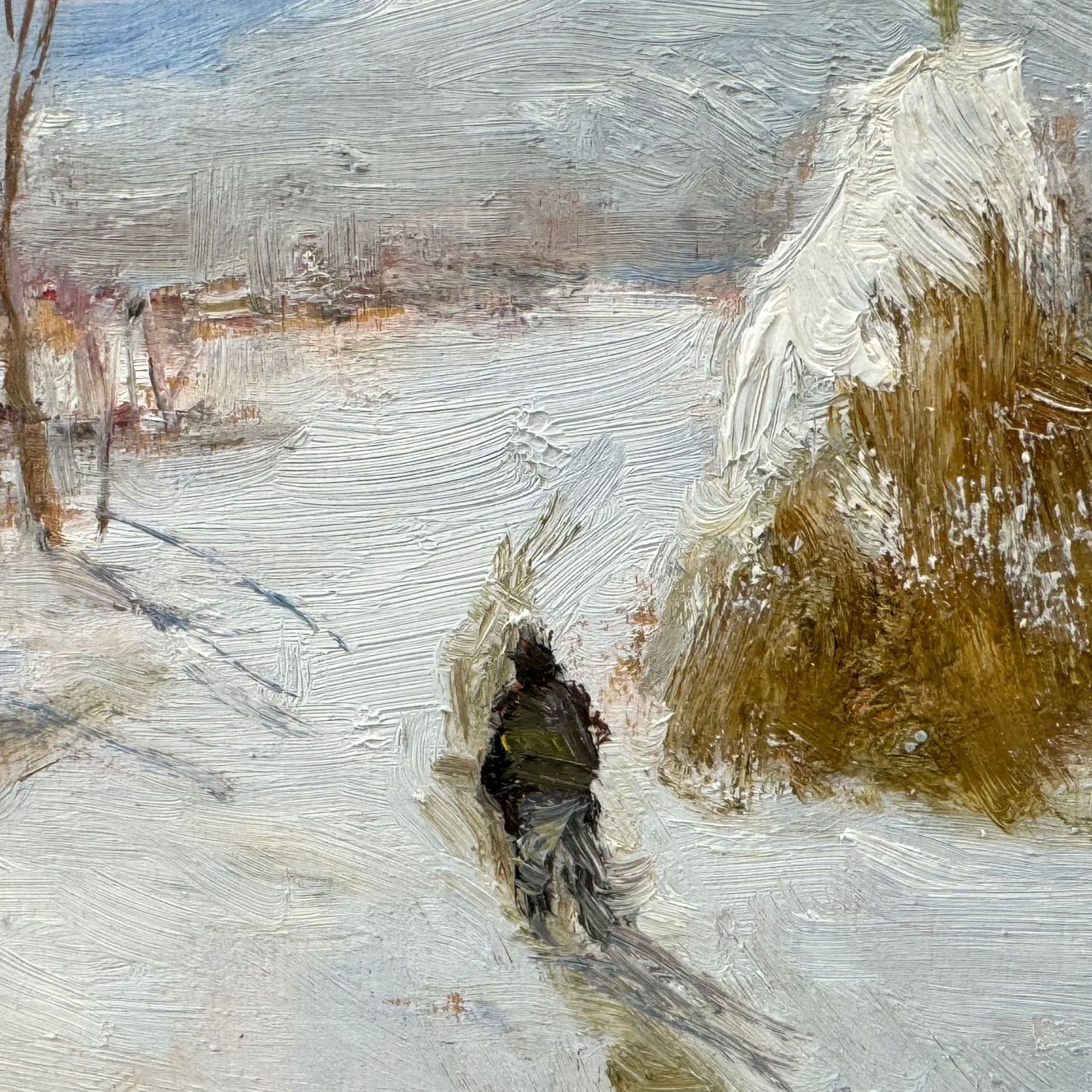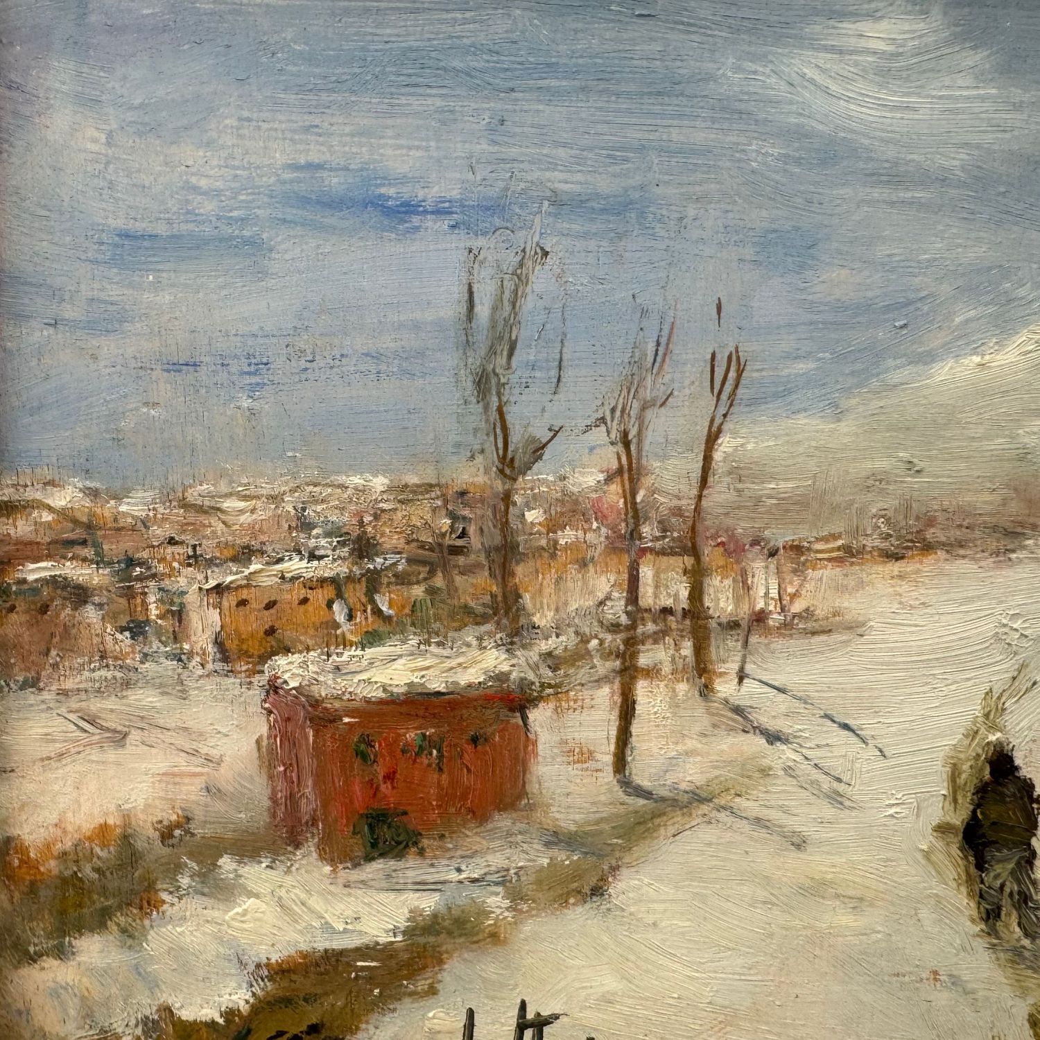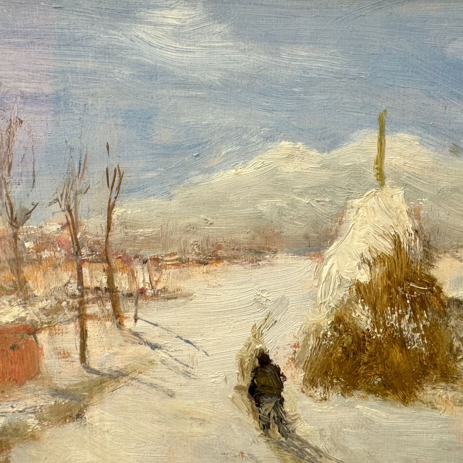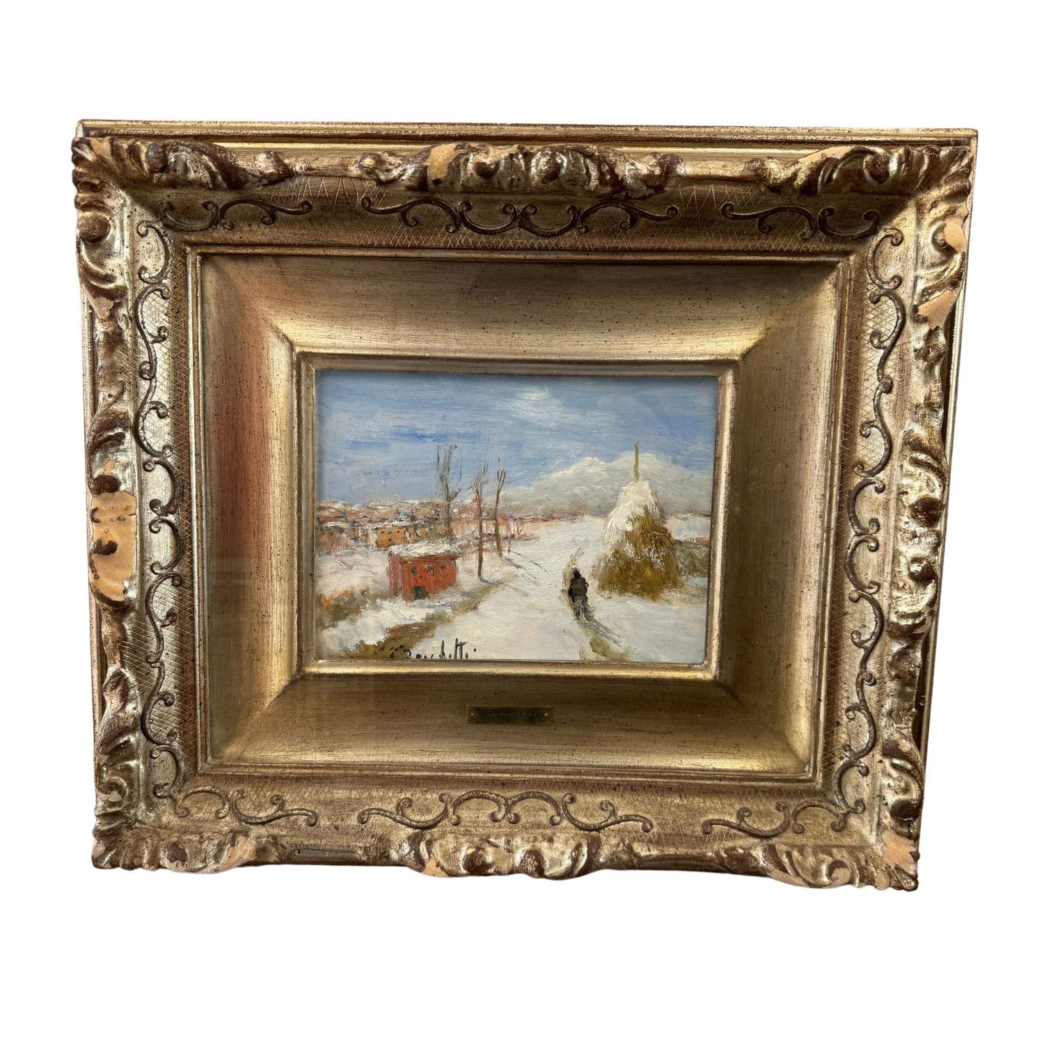 Dipinto olio su tavola, periodo XX secolo scuola italiana, raffigurante Paesaggio innevato.