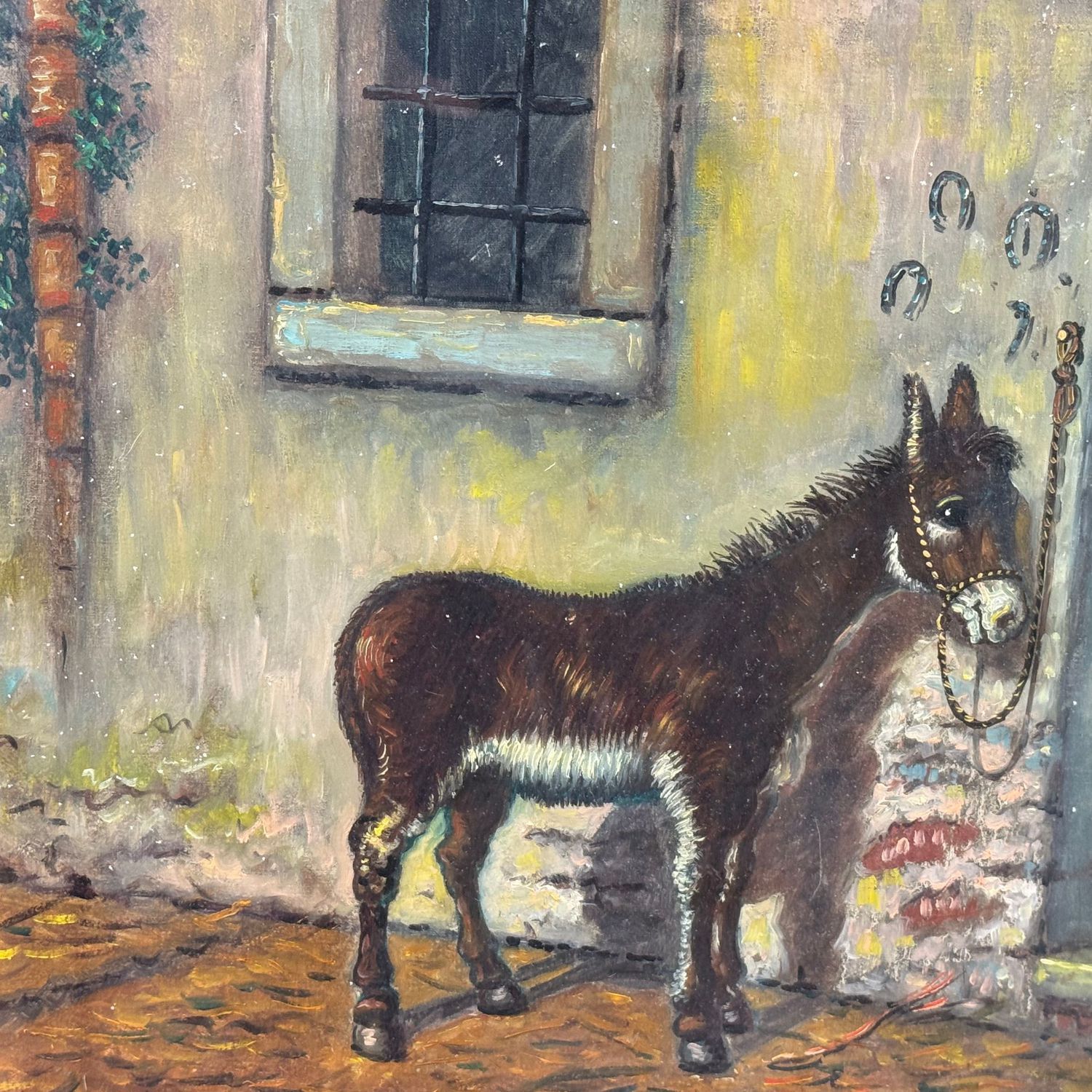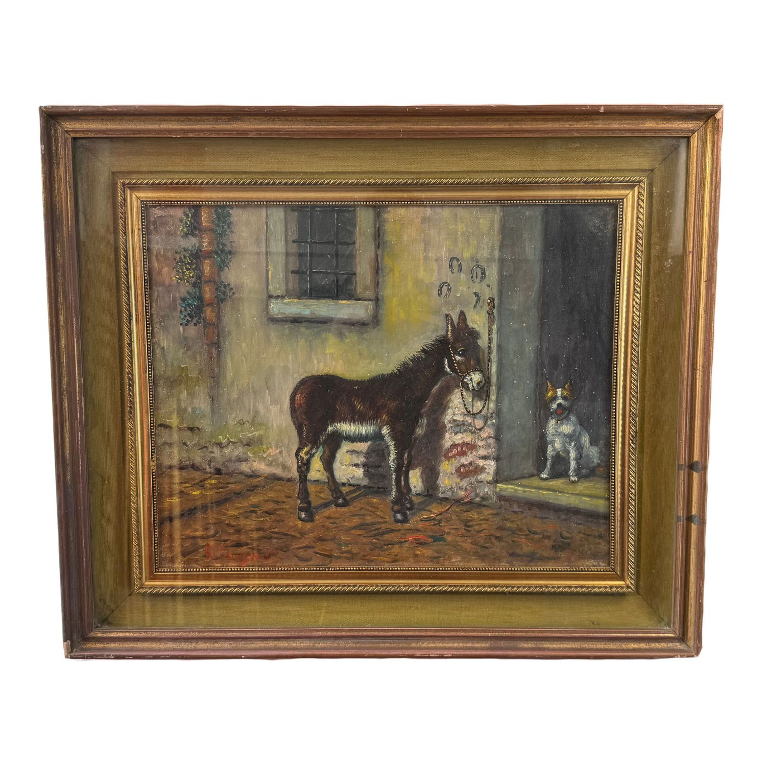 Dipinto olio su tela, periodo XX secolo scuola Italiana, raffigurante Un asino.