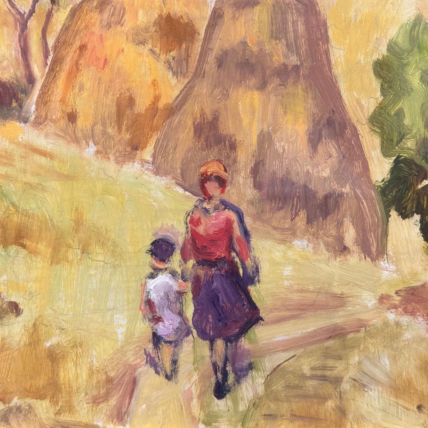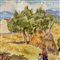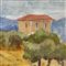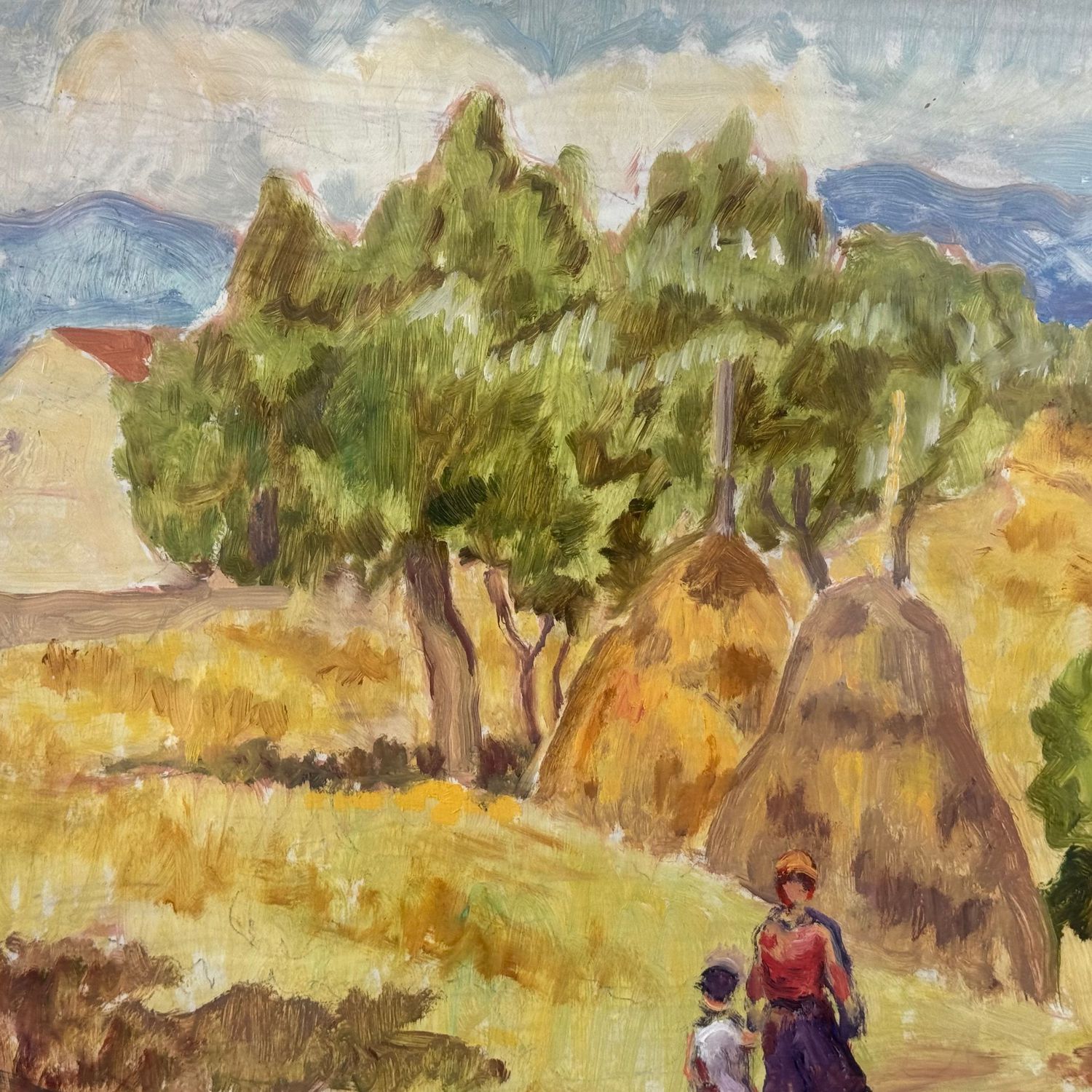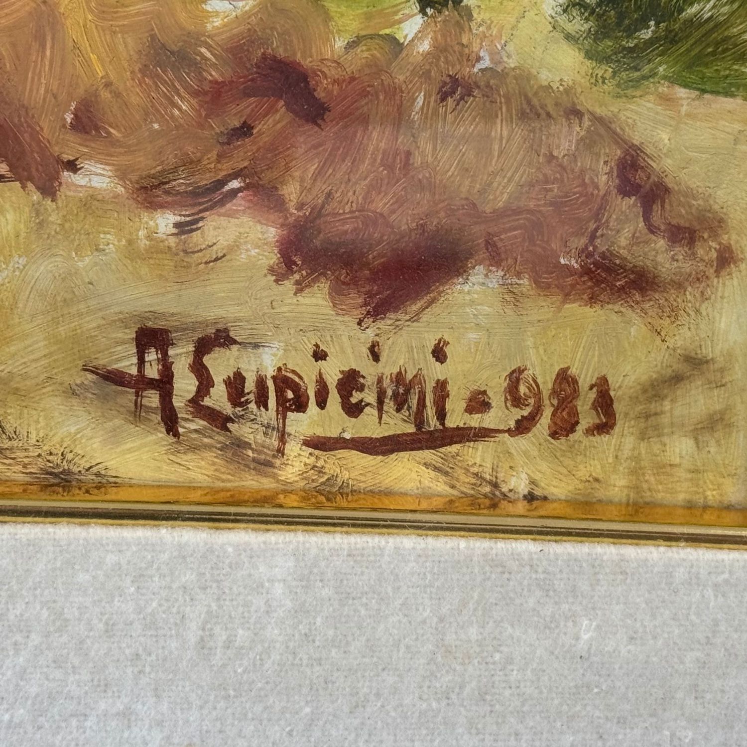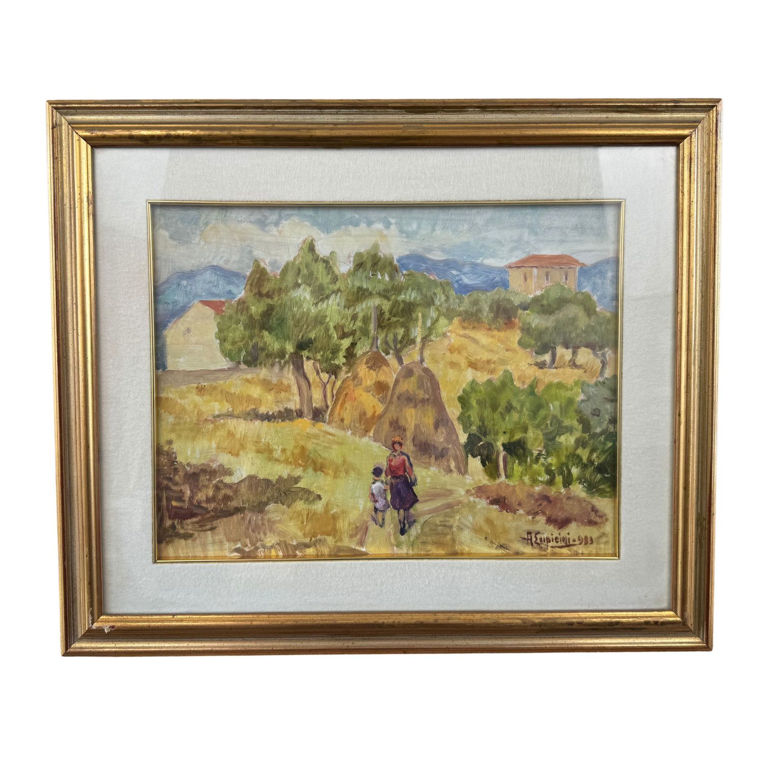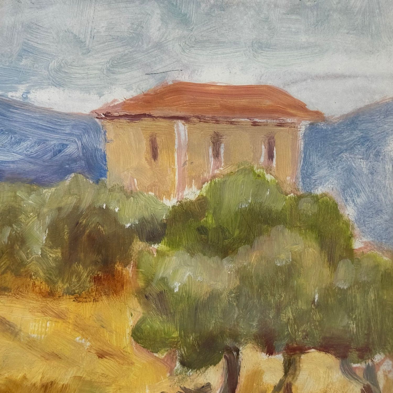 Dipinto olio su pannello, periodo XX secolo scuola Italiana, raffigurante Paesaggio di campagna.