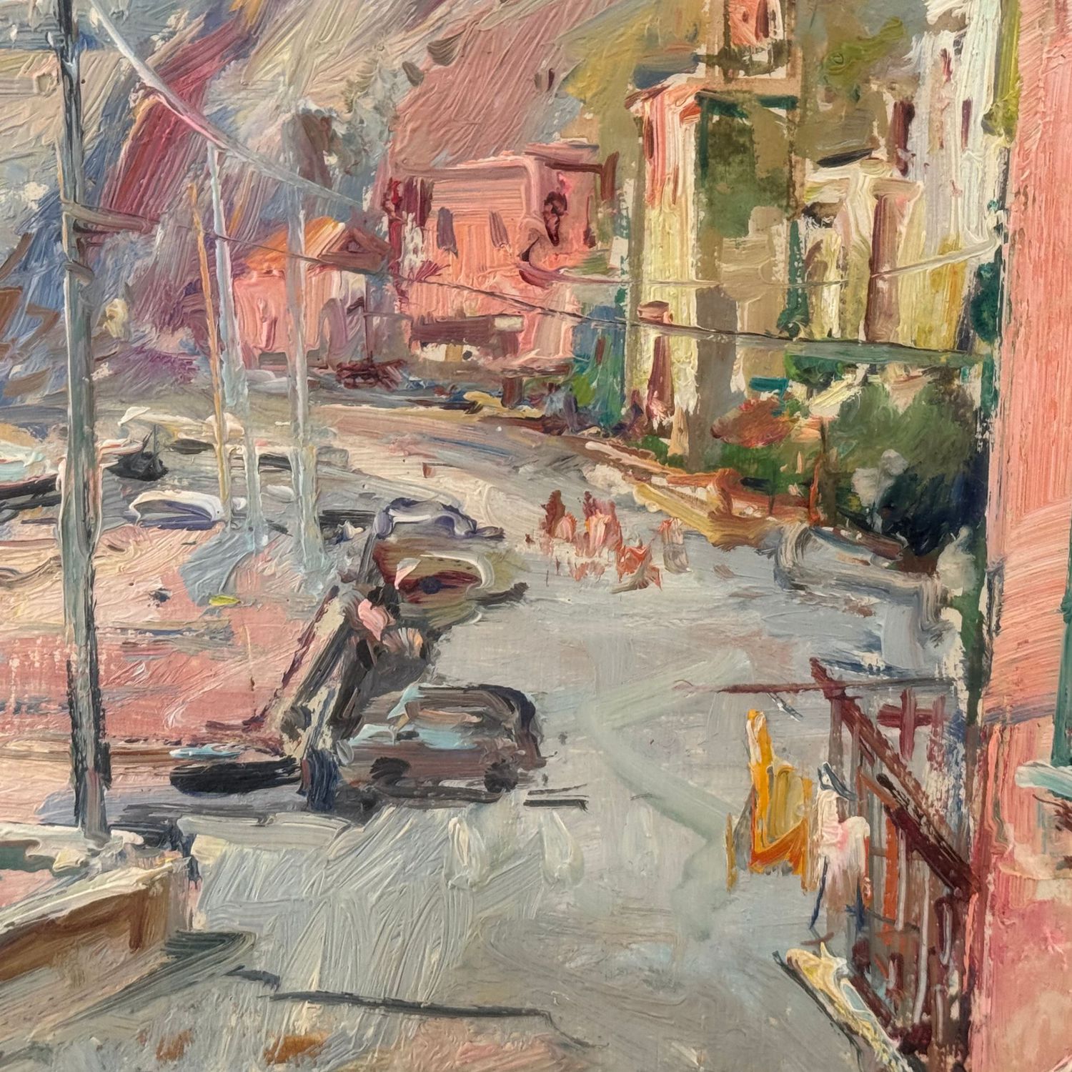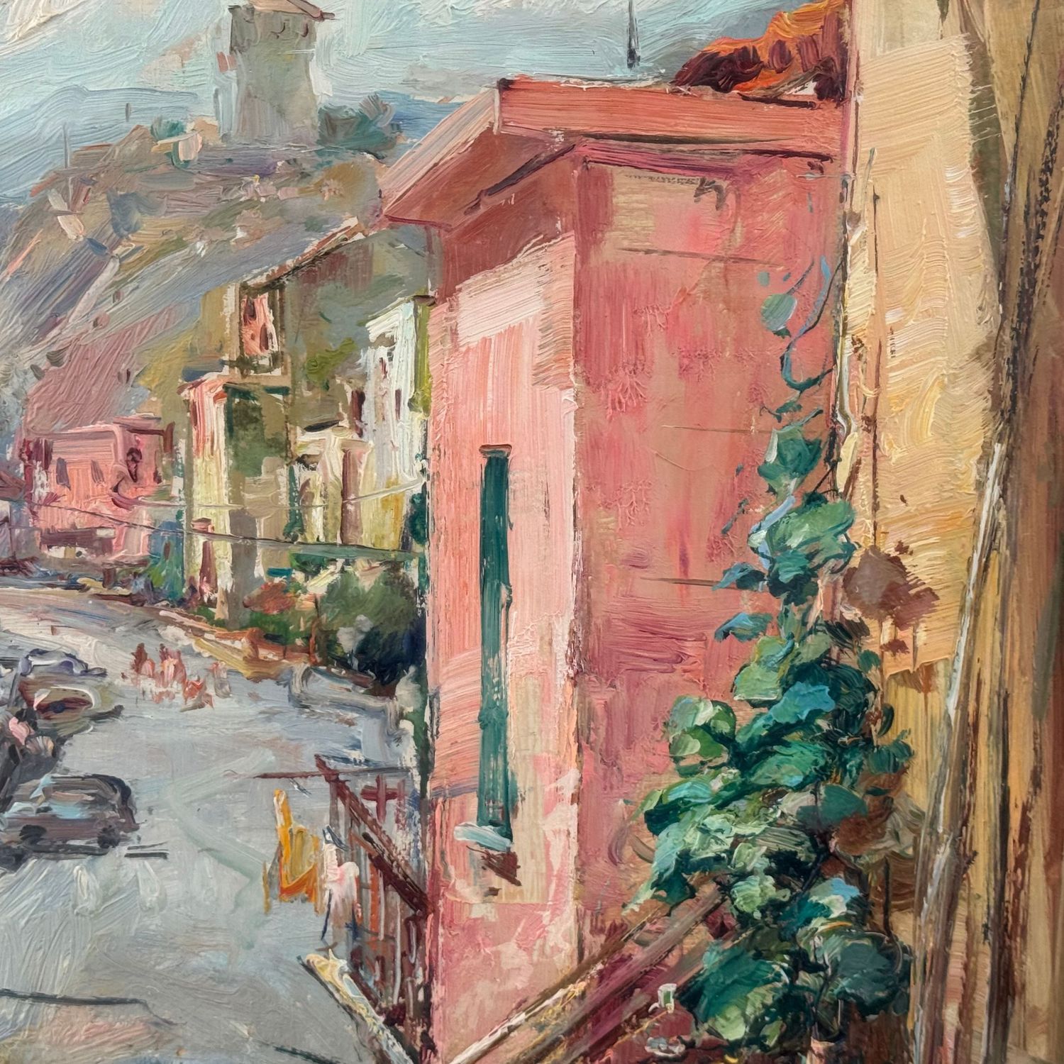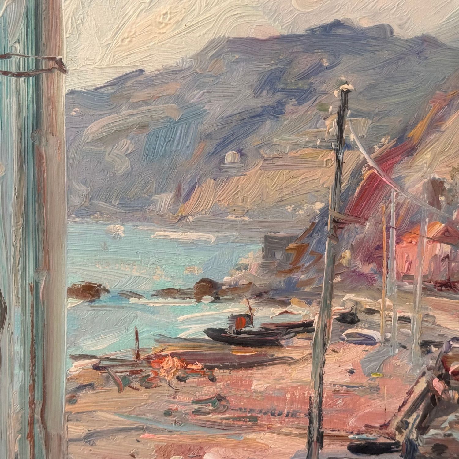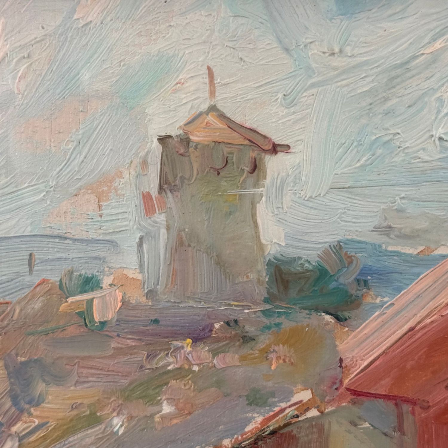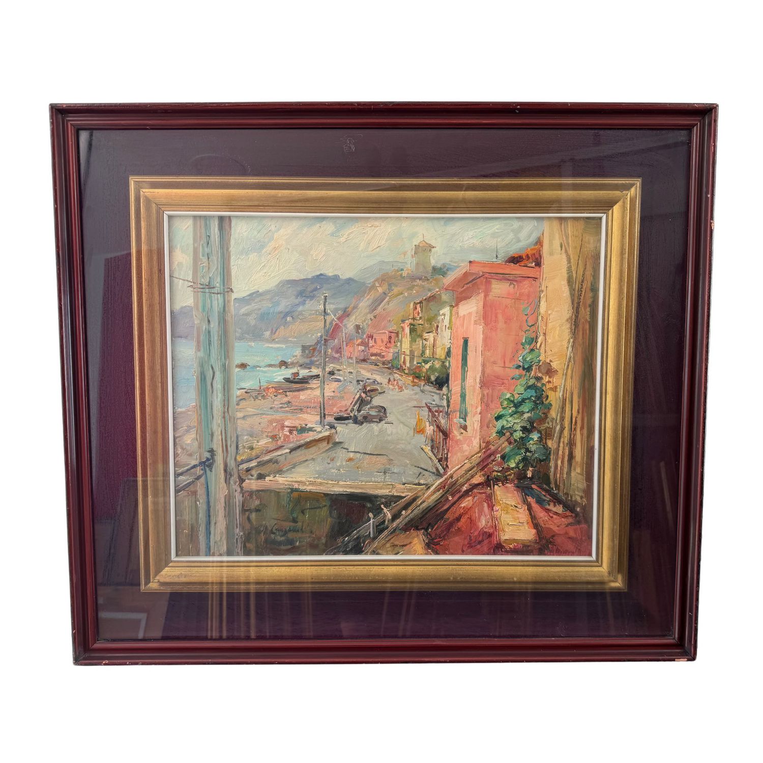 Dipinto olio su tavola, periodo XX secolo scuola Italiana, raffigurante Veduta di Costiera.