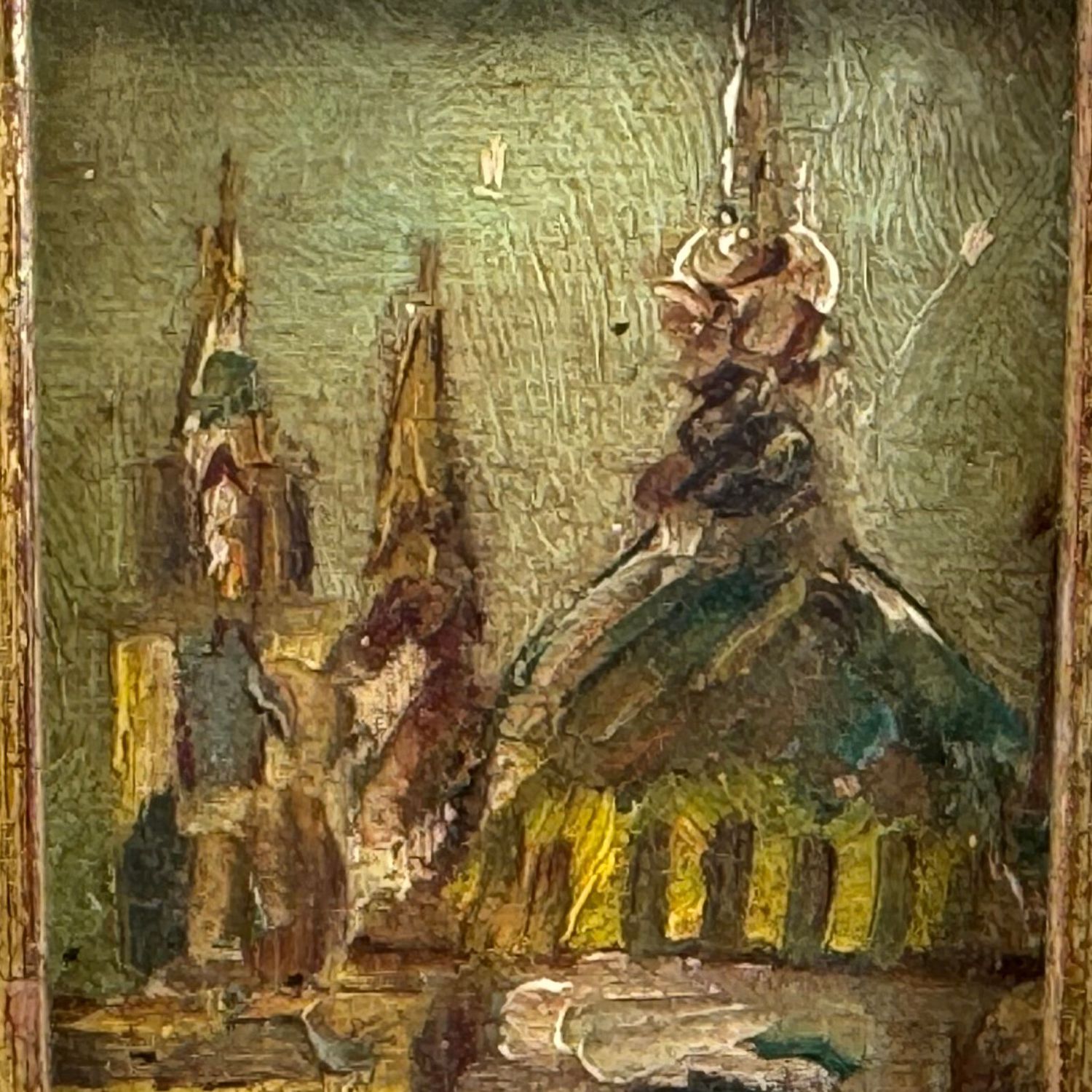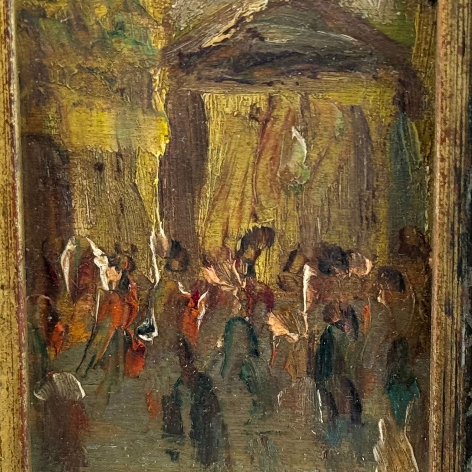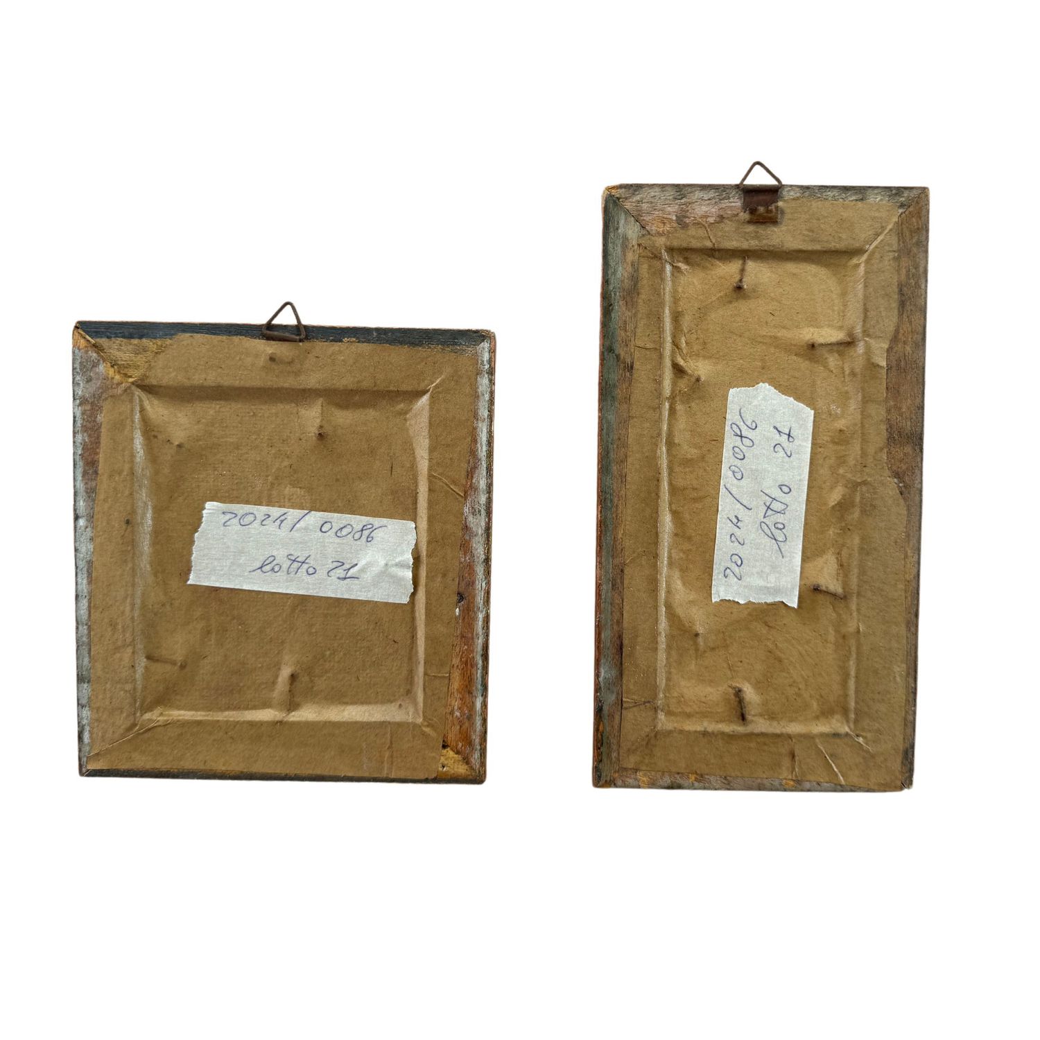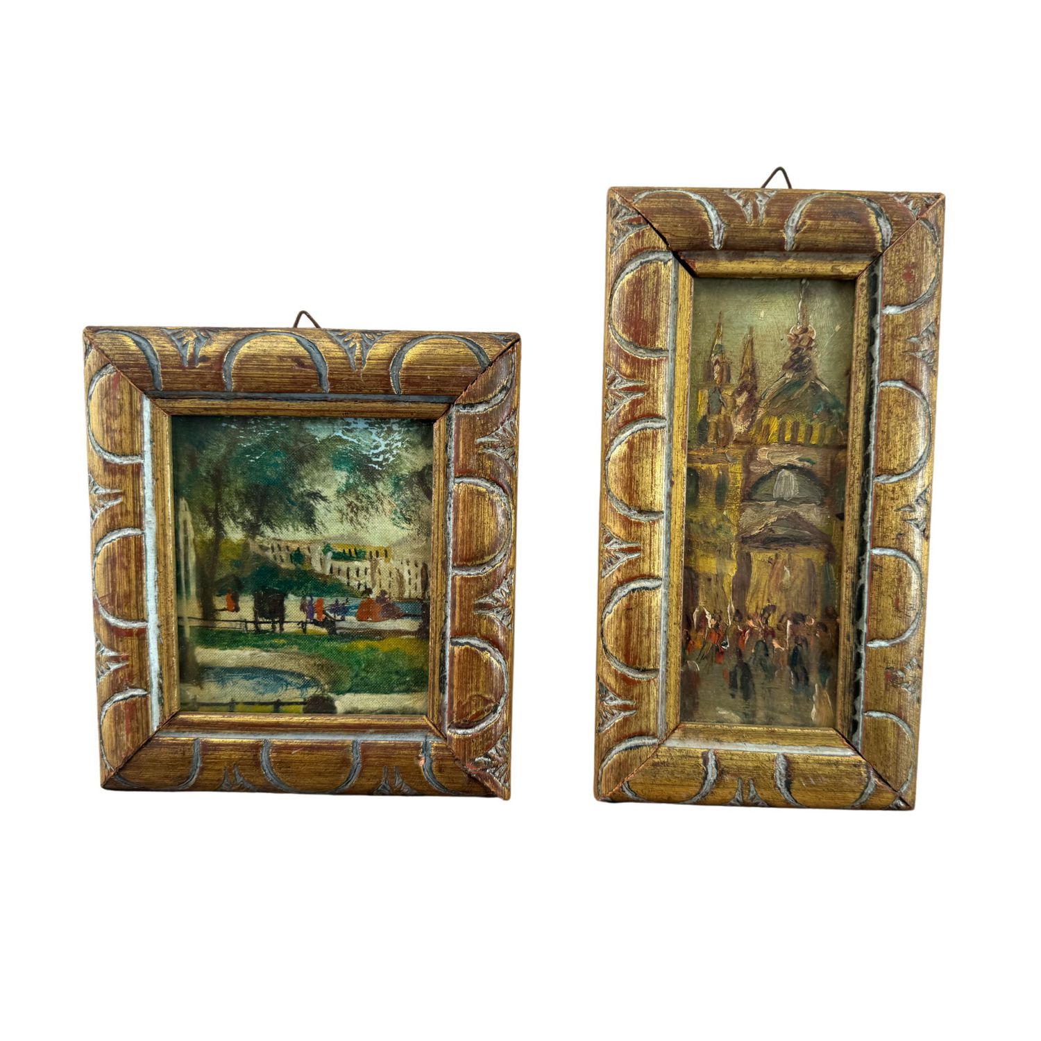 Coppia di piccoli dipinti olio su pannello, periodo XX secolo scuola Italiana, raffiguranti Luoghi imprecisati.