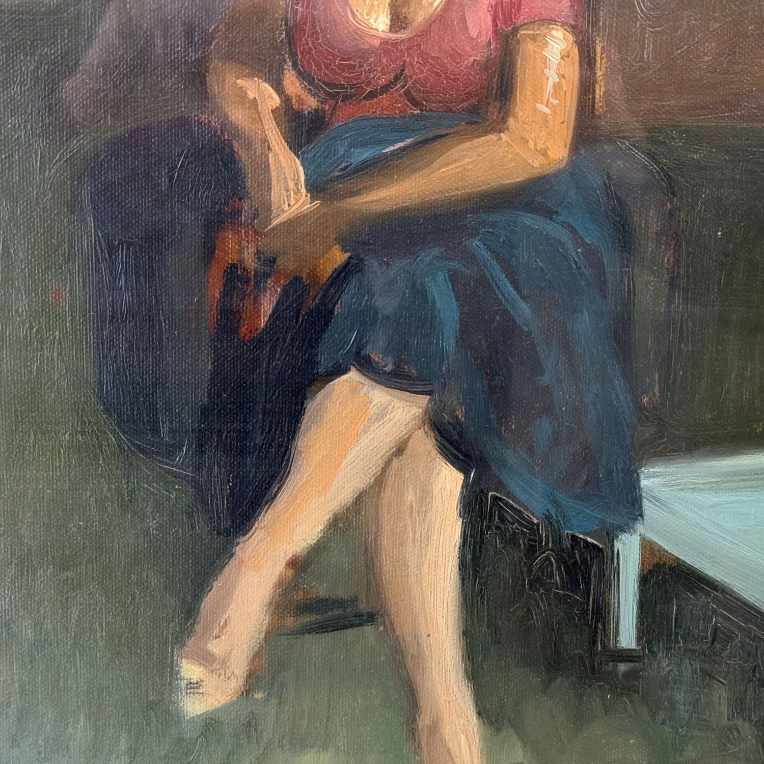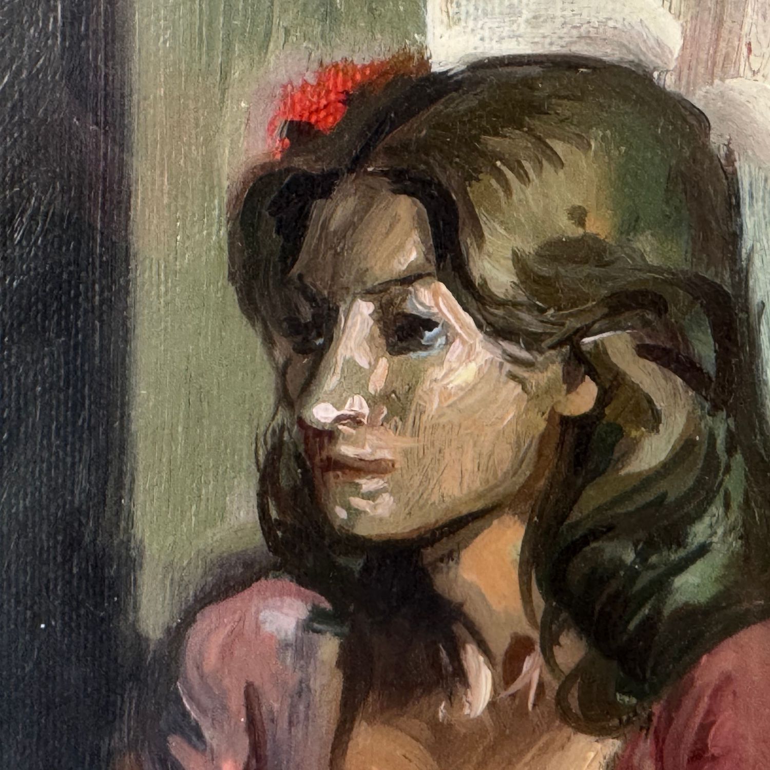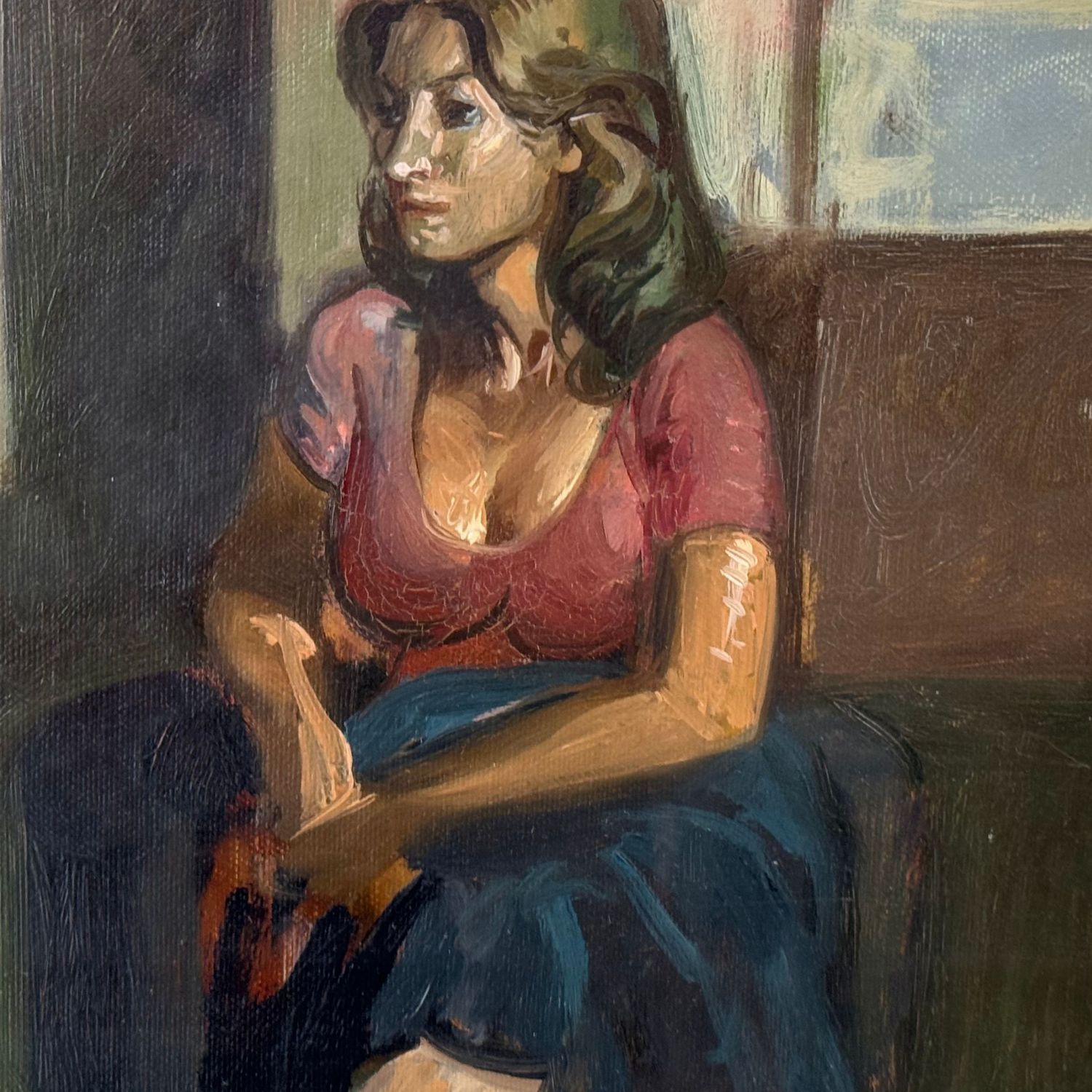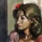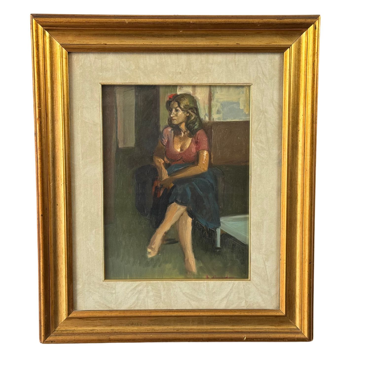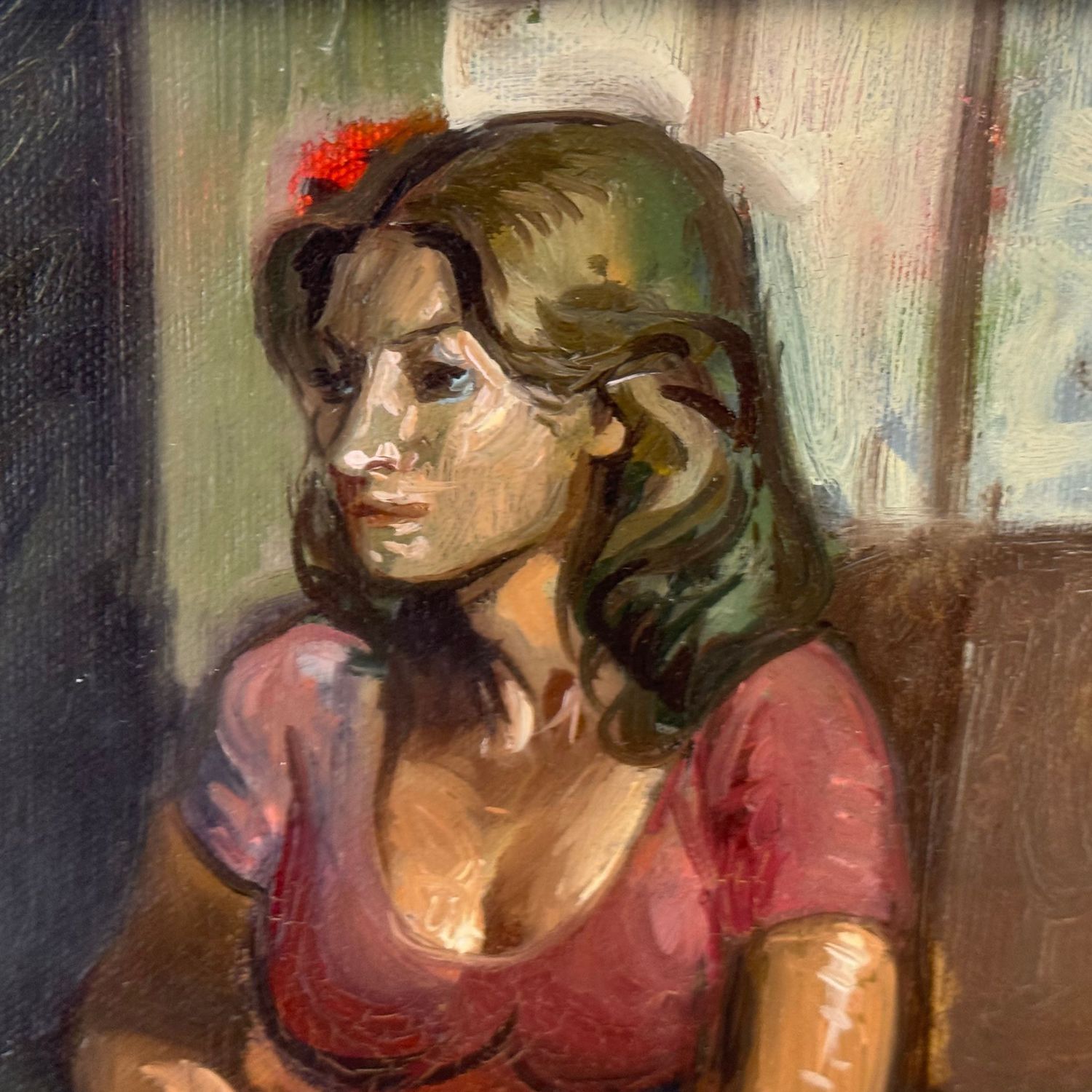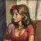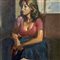 Dipinto olio su tela, periodo XX secolo scuola Italiana, raffigurante Ritratto di donna in un interno.