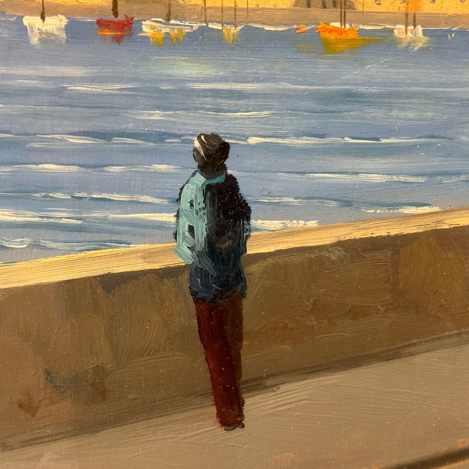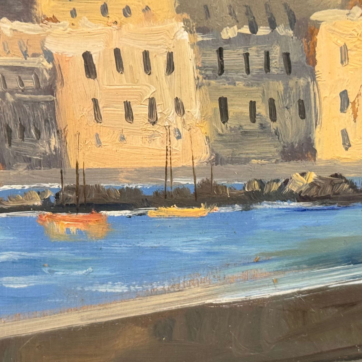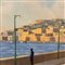 Dipinto olio su tavola, periodo XX secolo scuola Italiana, raffigurante Lungomare di Mergellina.
