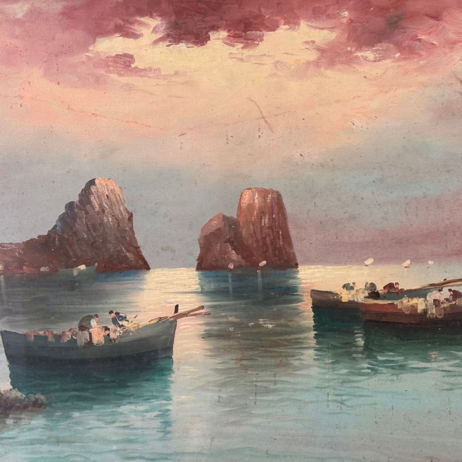 Dipinto olio su tela, periodo XX secolo scuola Italiana, raffigurante Marina a Capri.