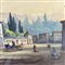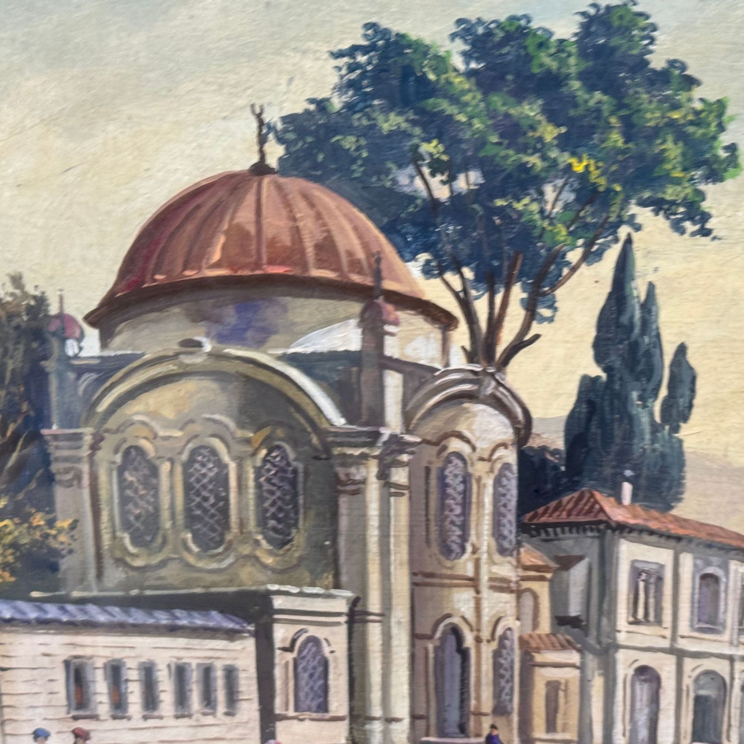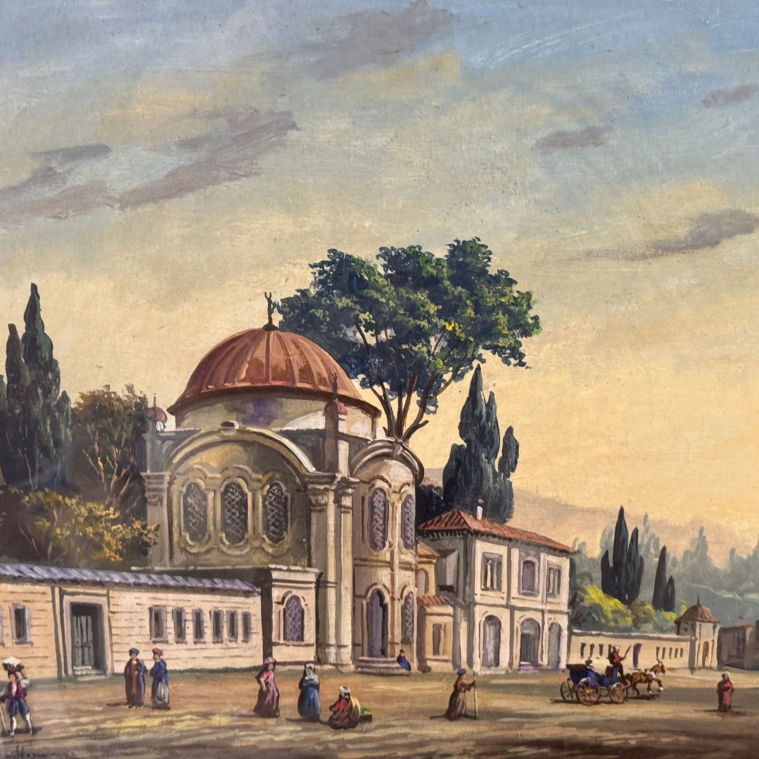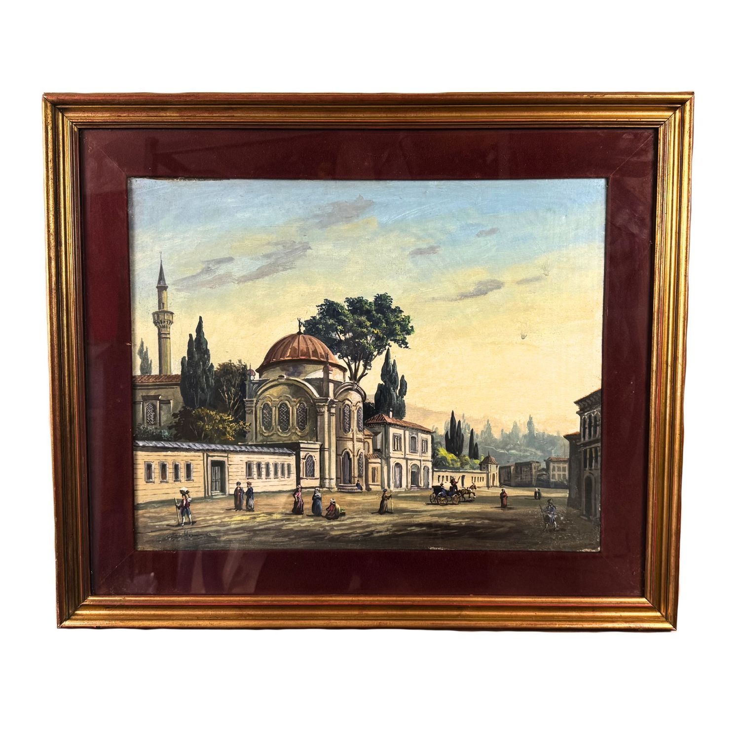 Dipinto acrilico e olio su tela (tecnica mista), periodo XX secolo scuola Italiana, raffigurante Moschea a Istanbul.