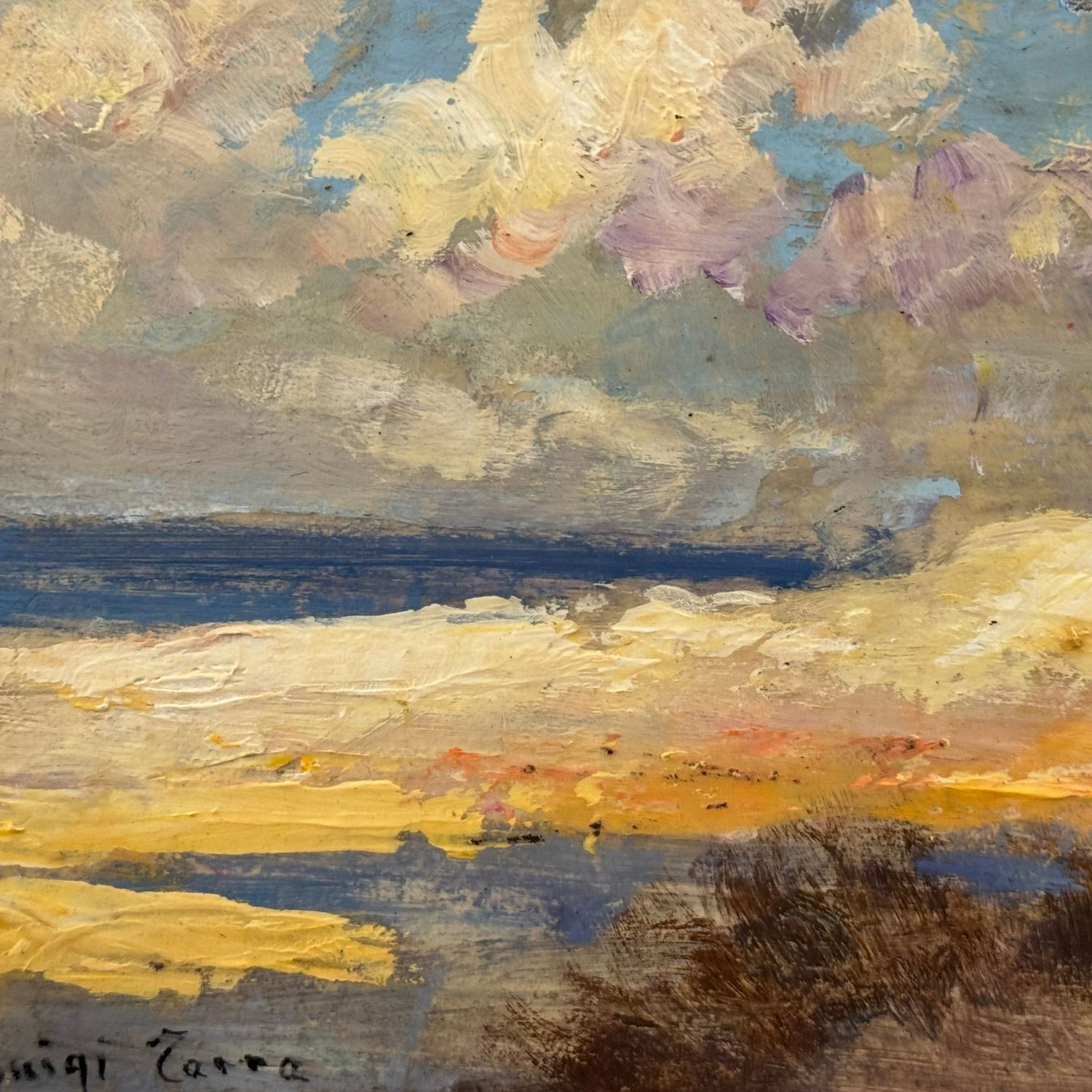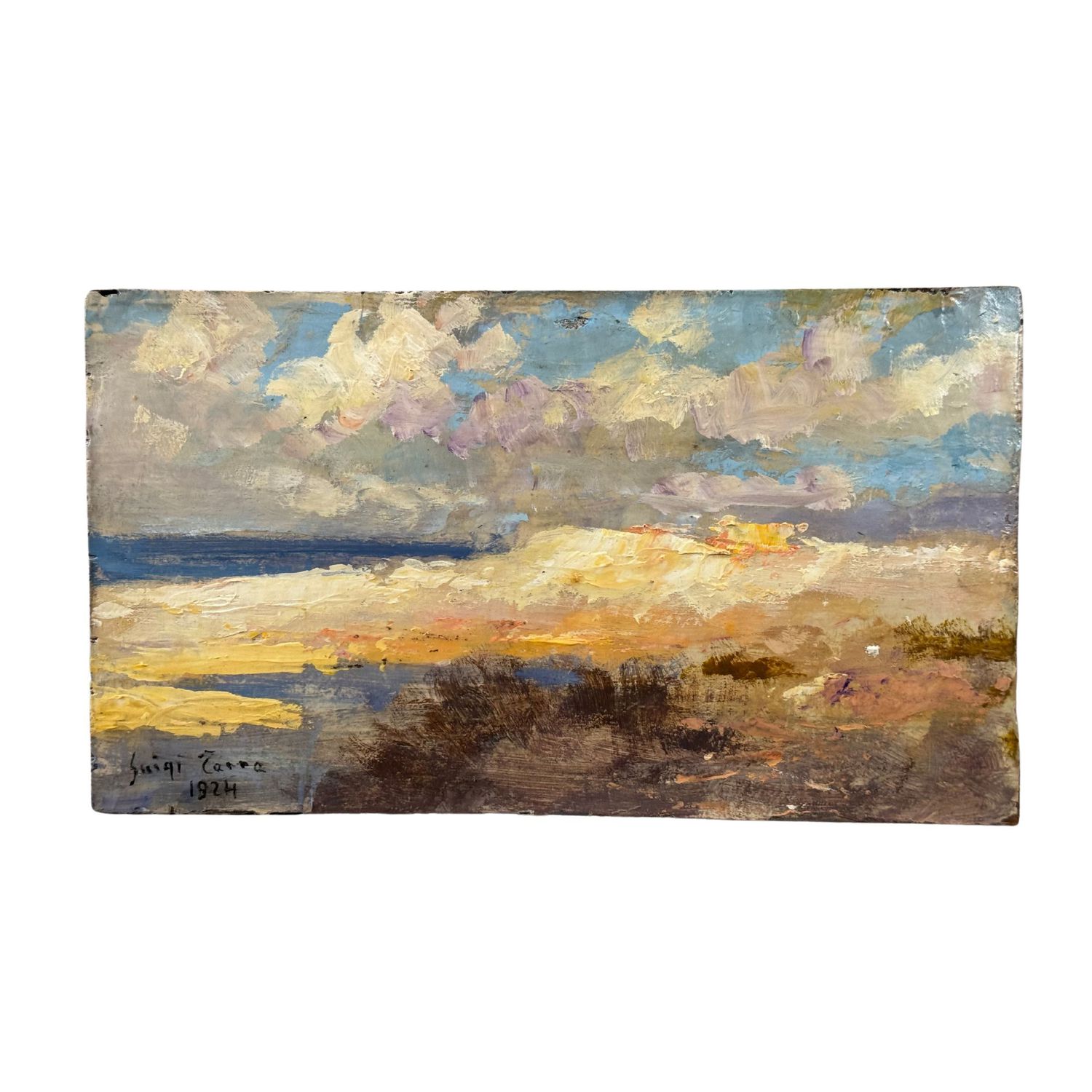 Dipinto olio su tavola, periodo XX secolo scuola Italiana, raffigurante Paesaggio marino.