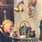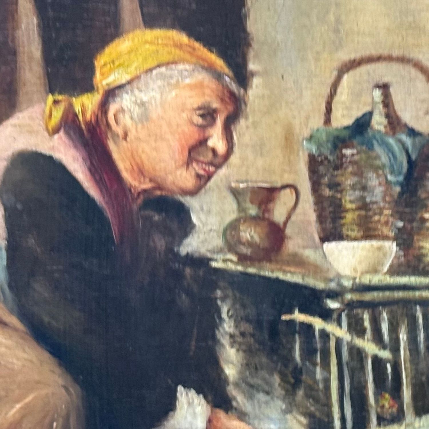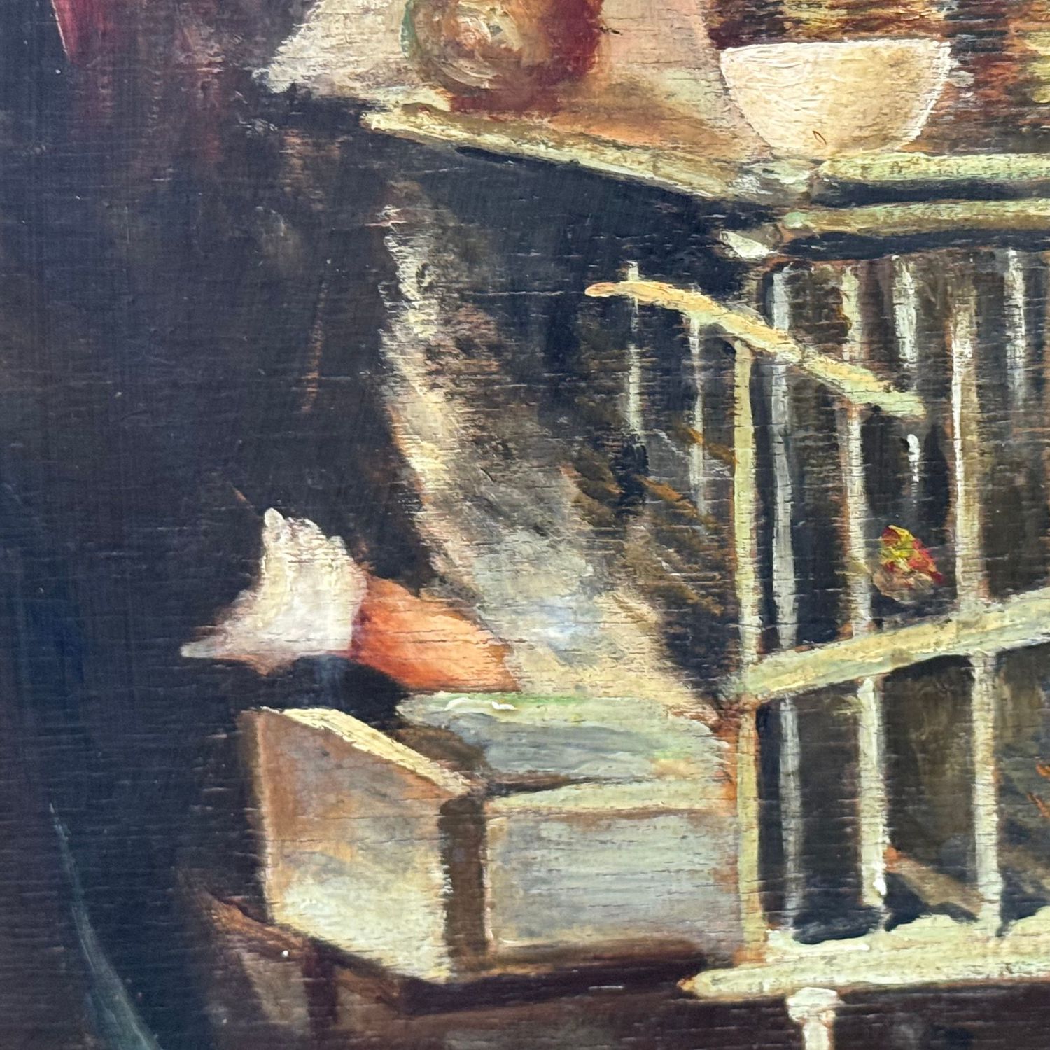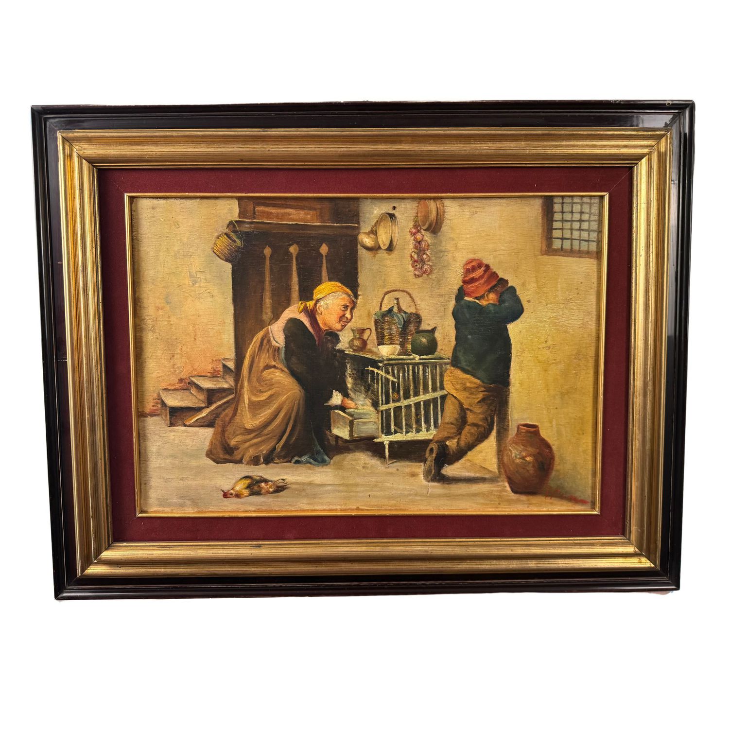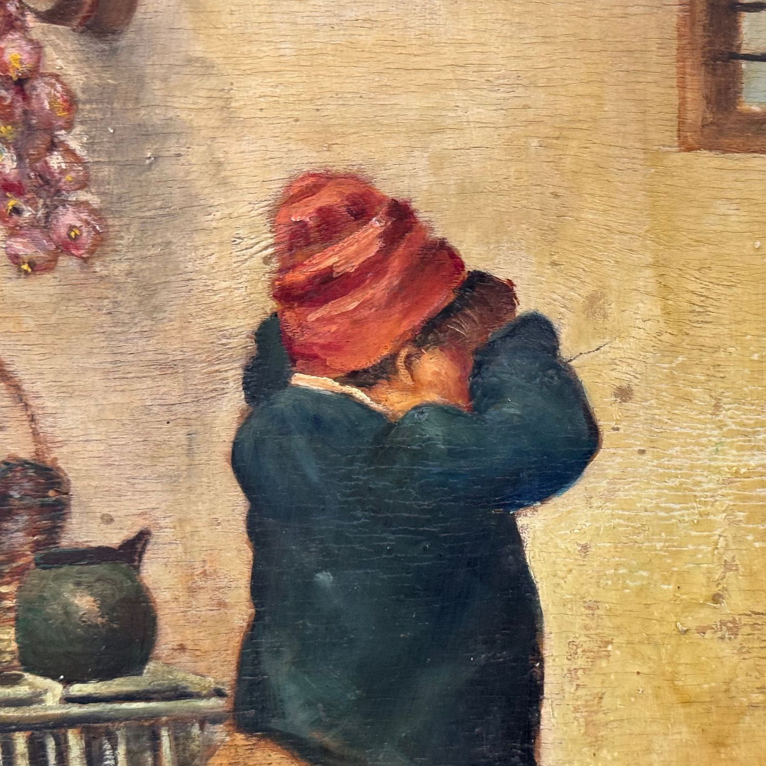 Dipinto olio su tavola, periodo XX secolo scuola Italiana, raffigurante Scena interna con personaggi.
