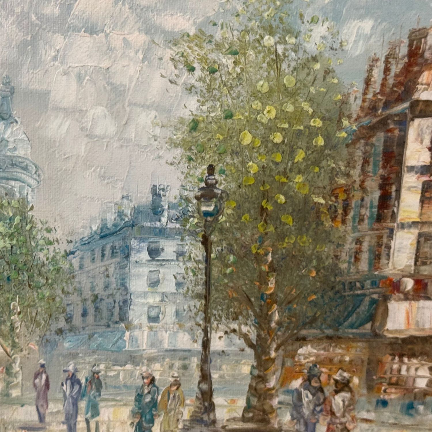 Dipinto olio su tela, periodo XX secolo scuola Italiana, raffigurante Scena parigina.