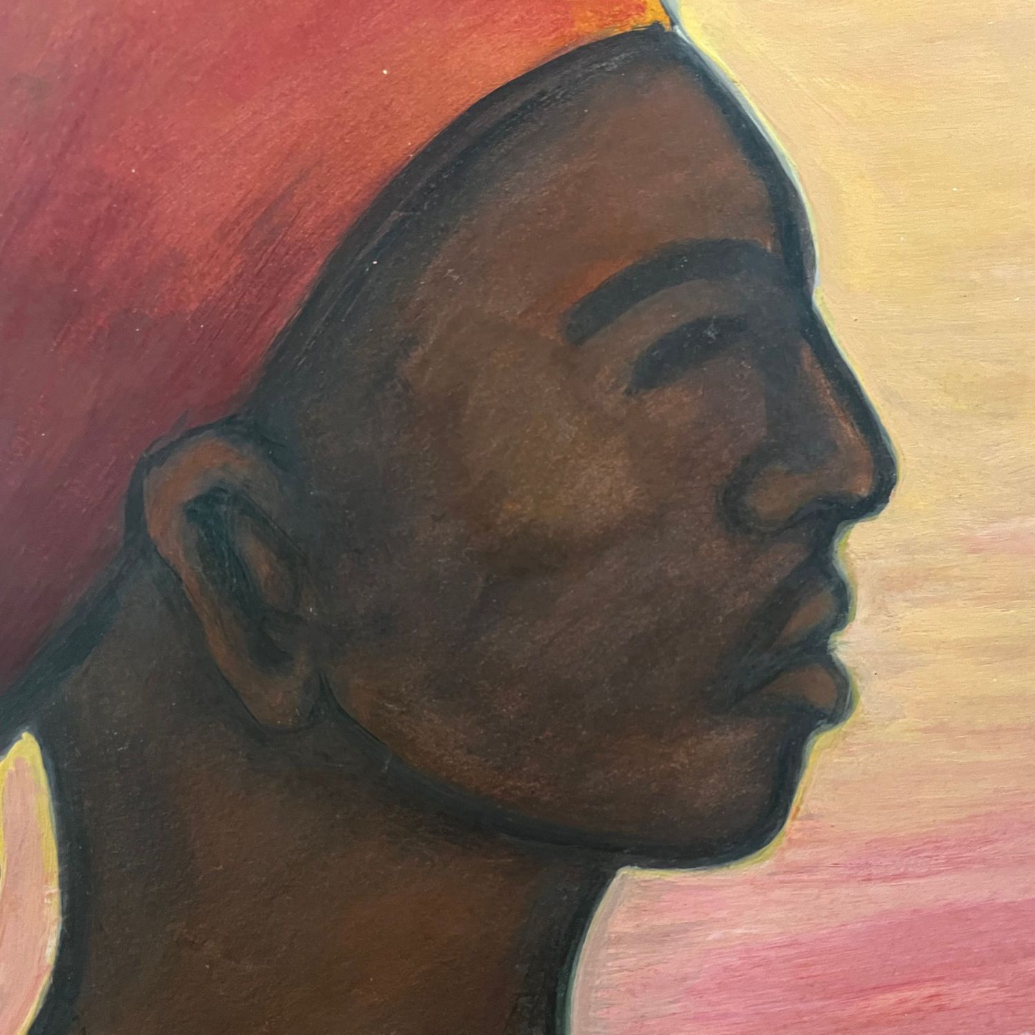 Dipinto olio su Cartoncino raffigurante Ritratto di donna africana.