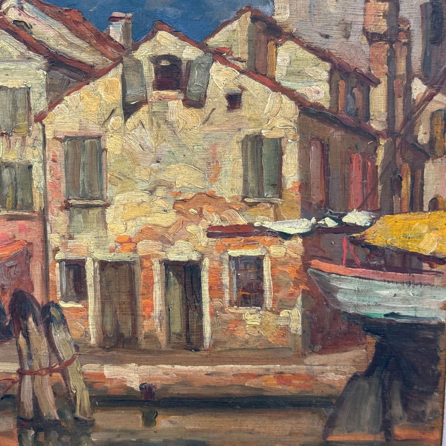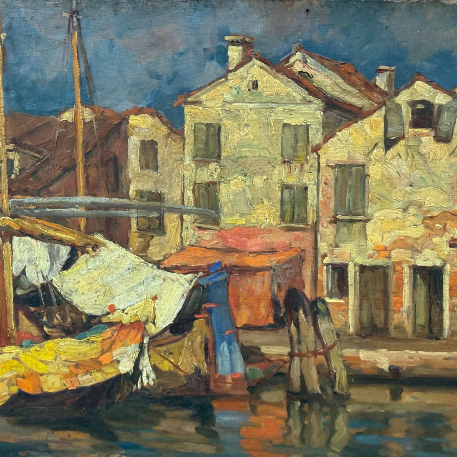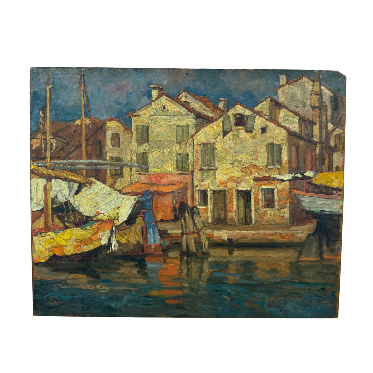 Dipinto olio su tavola, periodo XX secolo scuola Italiana, raffigurante Scorcio di marina.