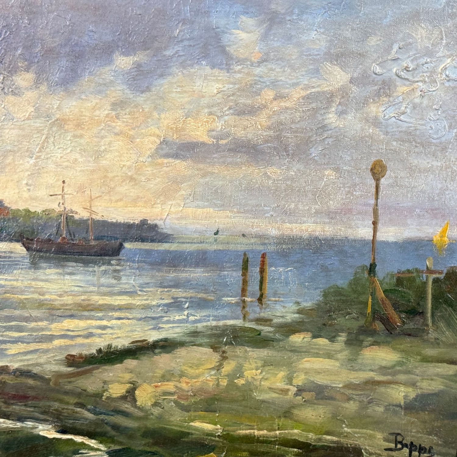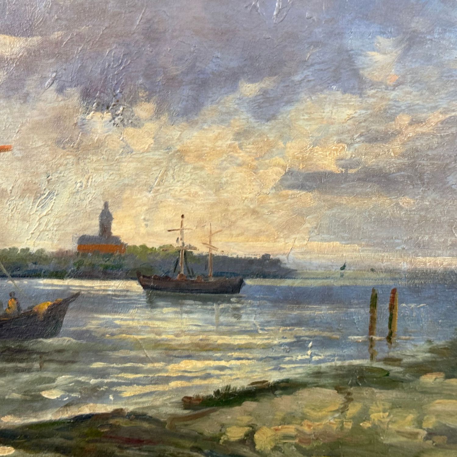 Dipinto olio su tela, periodo XX secolo scuola Italiana, raffigurante Paesaggio marino.