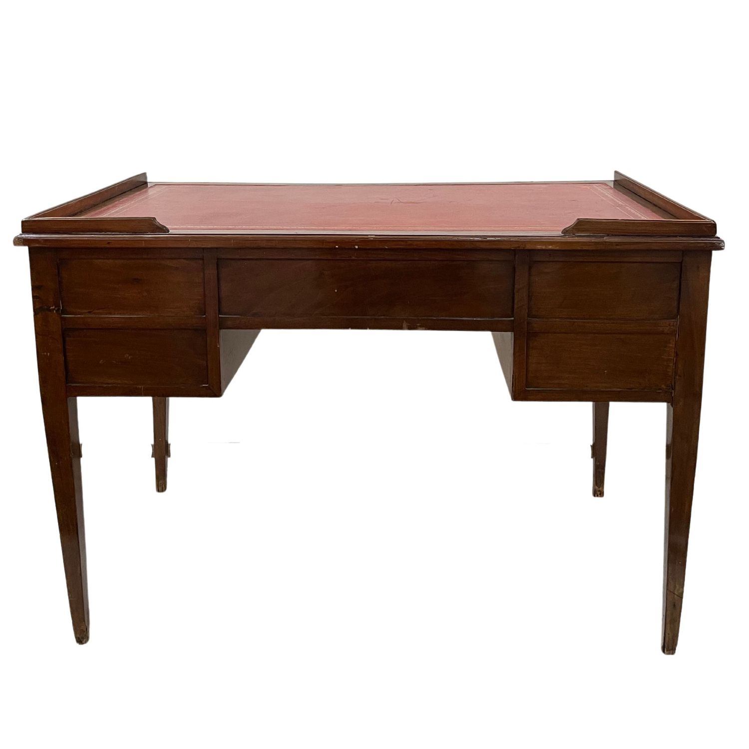 Scrivania legno 2+1+2 cassetti, piano rivestito in pelle di colore rosso, periodo Napoli Luigi XVI lastronata in legno di ciliegio.