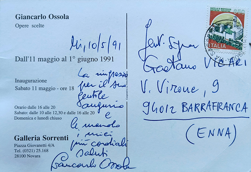 Certificazione: Provenienza collezione privata Enna - Diretta dall'artista con cartolina originale