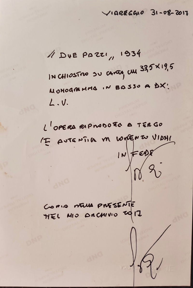 Certificazione: Autentica su foto a cura del Prof. Enrico Dei - Monogramma L.V. in basso a destra su fronte opera
